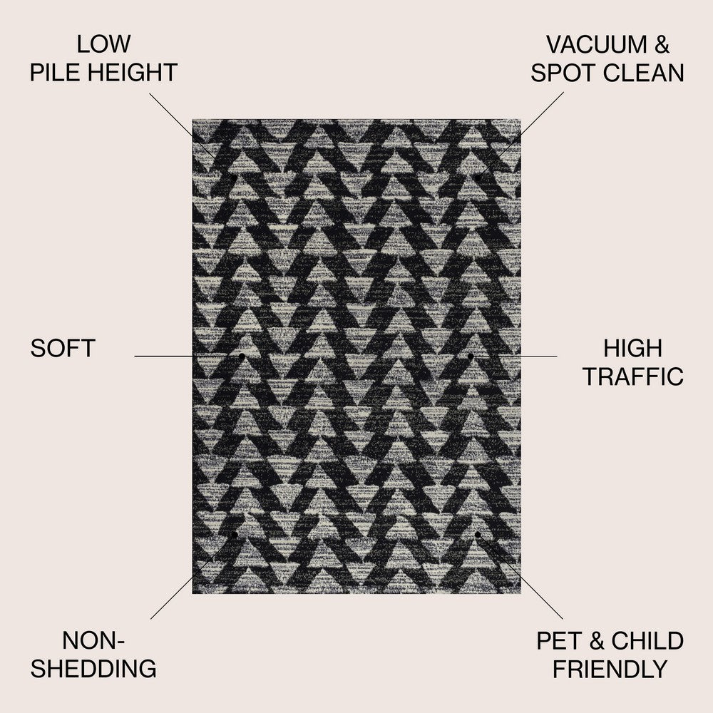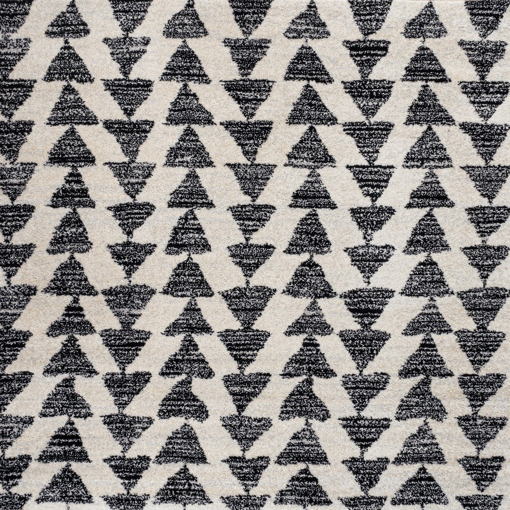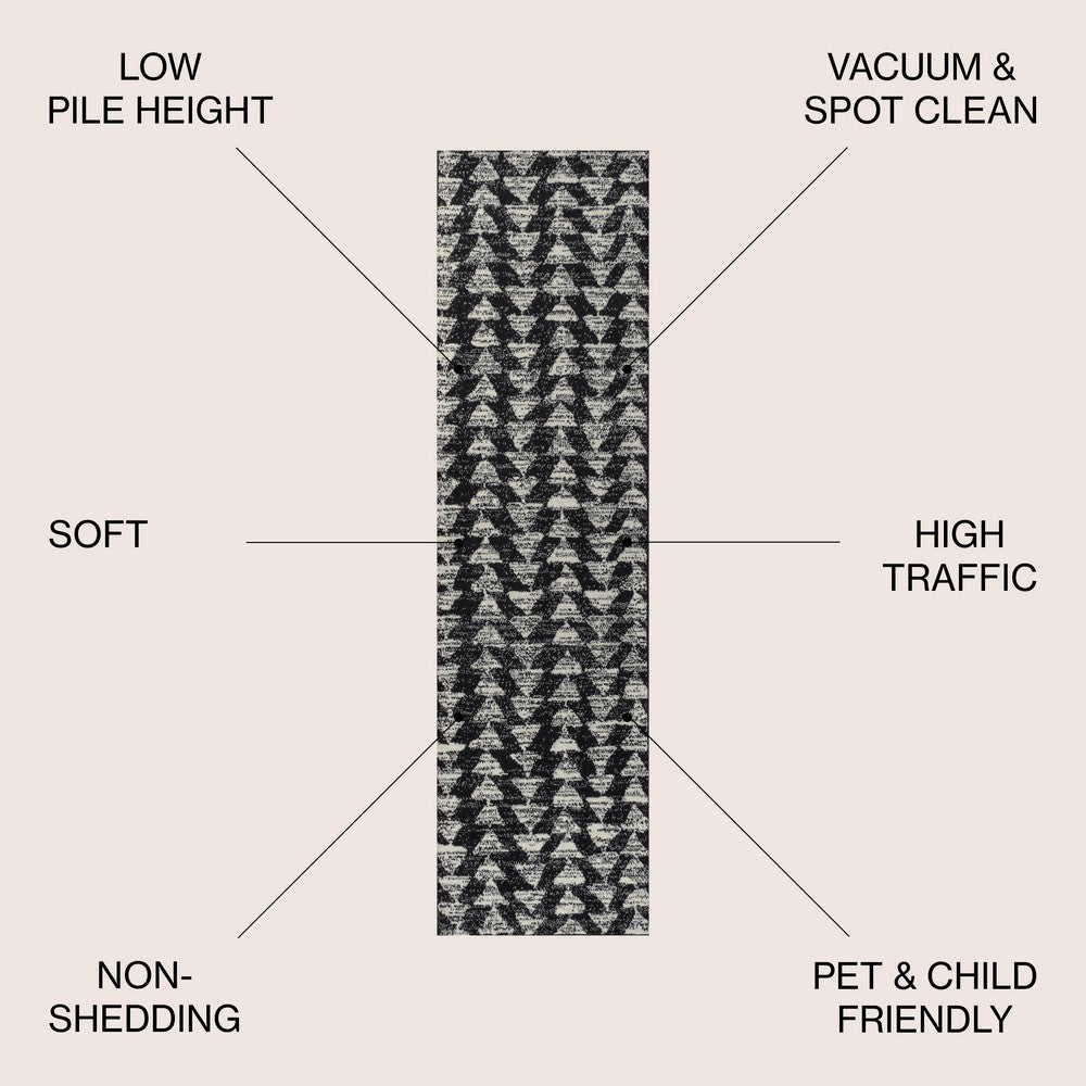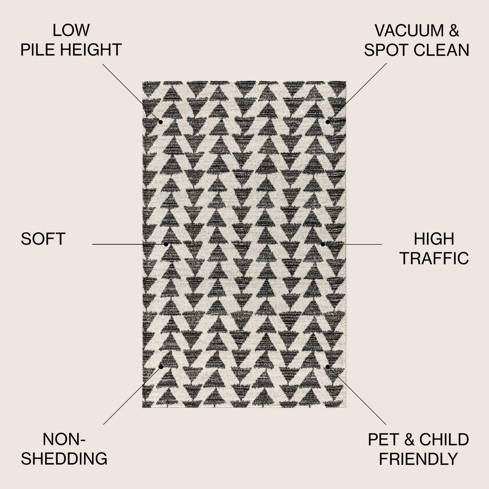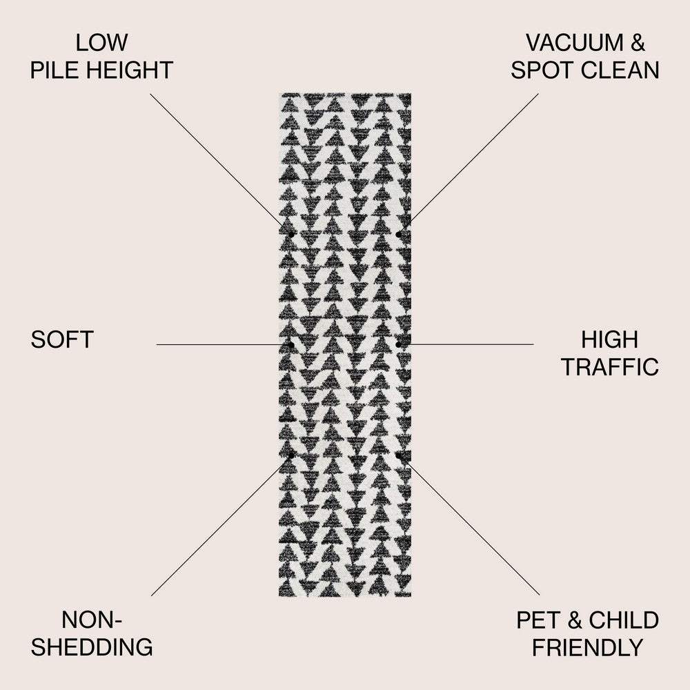 Inspired by vintage Moroccan tribal rugs, our modern version is power-loomed with a short pile. Rows of triangle symbols are woven in black on a field of ivory; the mingled threads recall traditional handwoven rugs. Add some Bohemian style to your home with this easy-care rug.