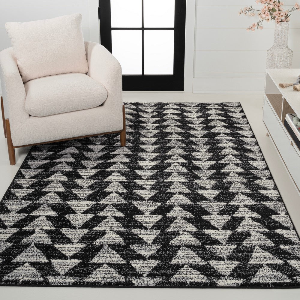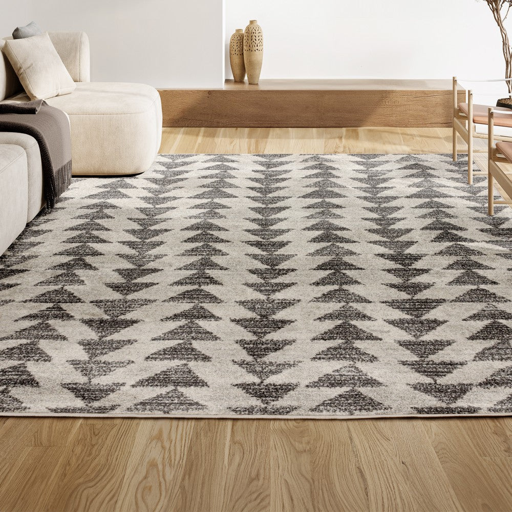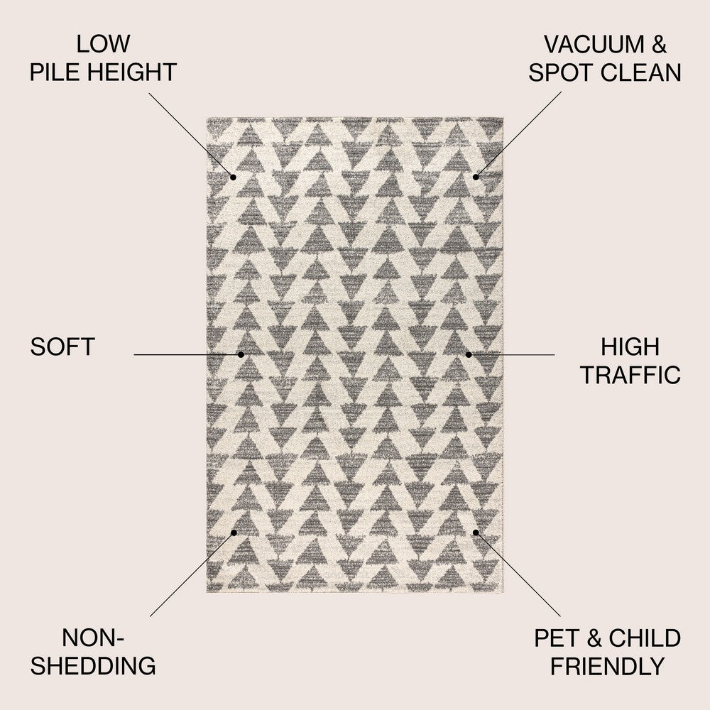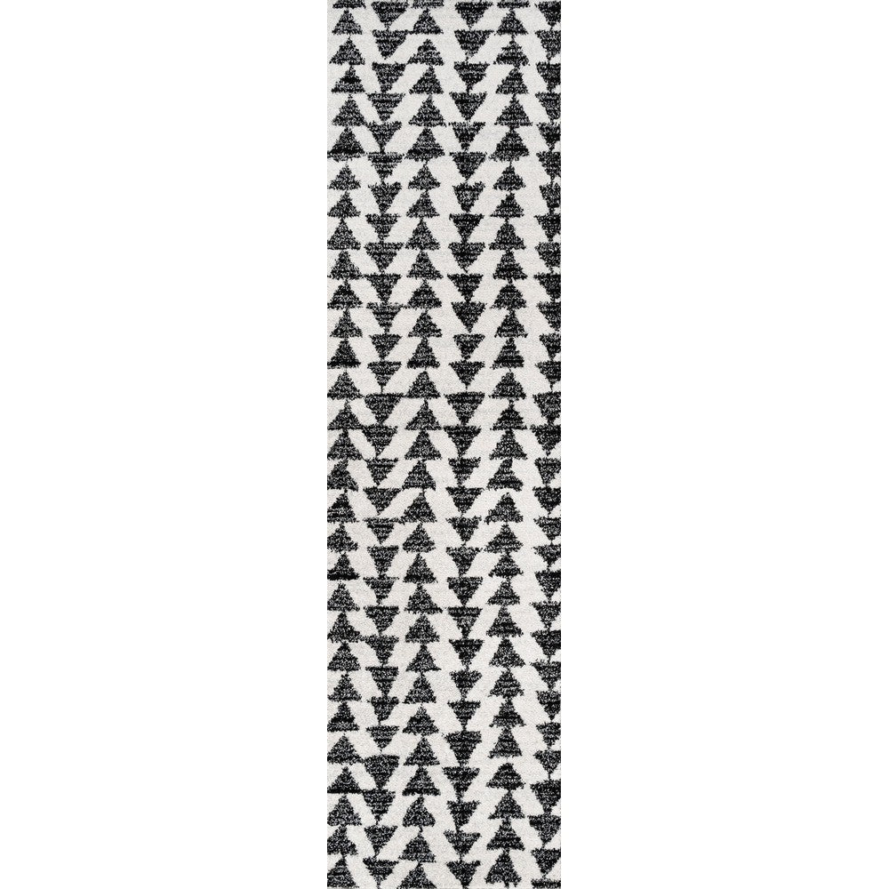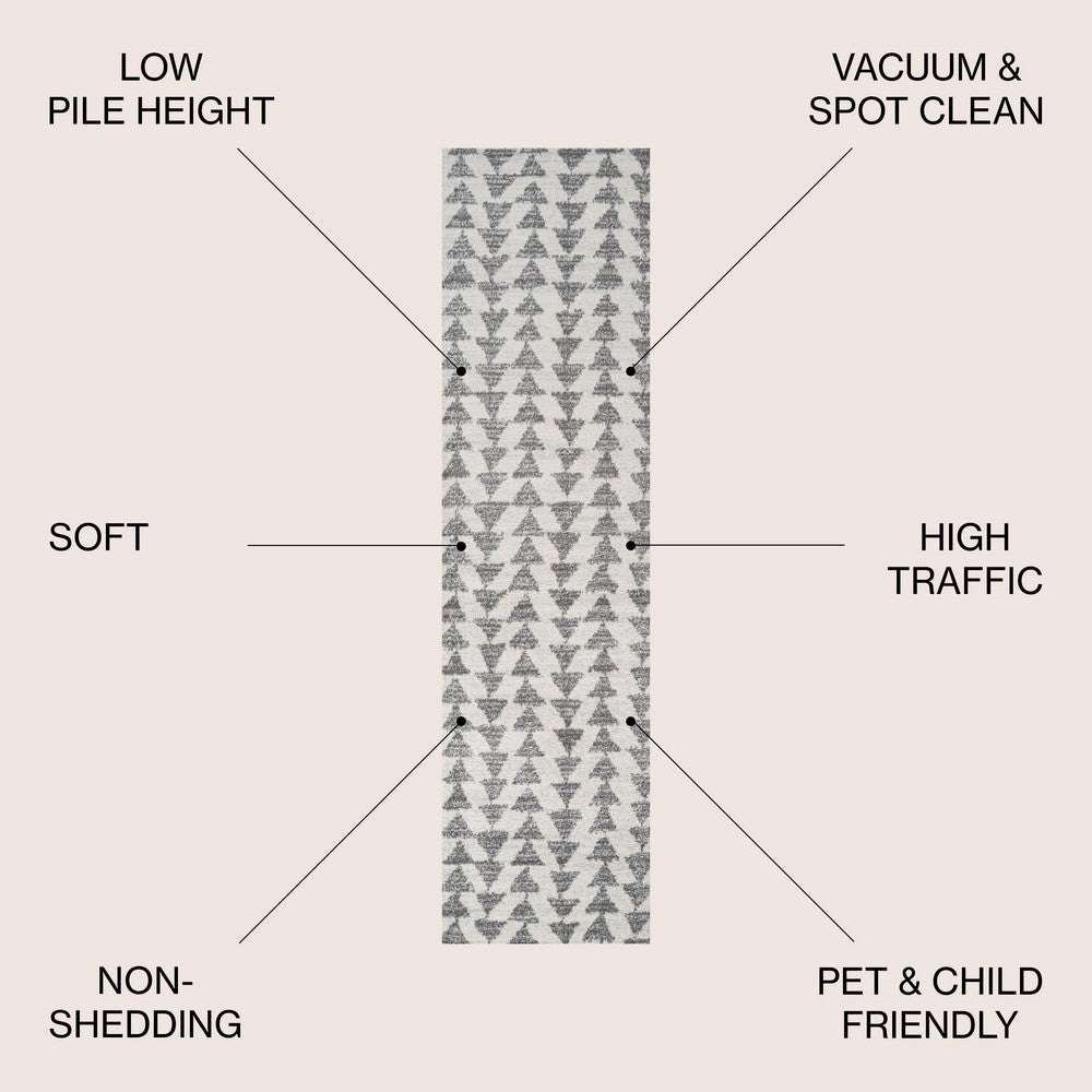 Inspired by vintage Moroccan tribal rugs, our modern version is power-loomed with a short pile. Rows of triangle symbols are woven in black on a field of ivory; the mingled threads recall traditional handwoven rugs. Add some Bohemian style to your home with this easy-care rug.