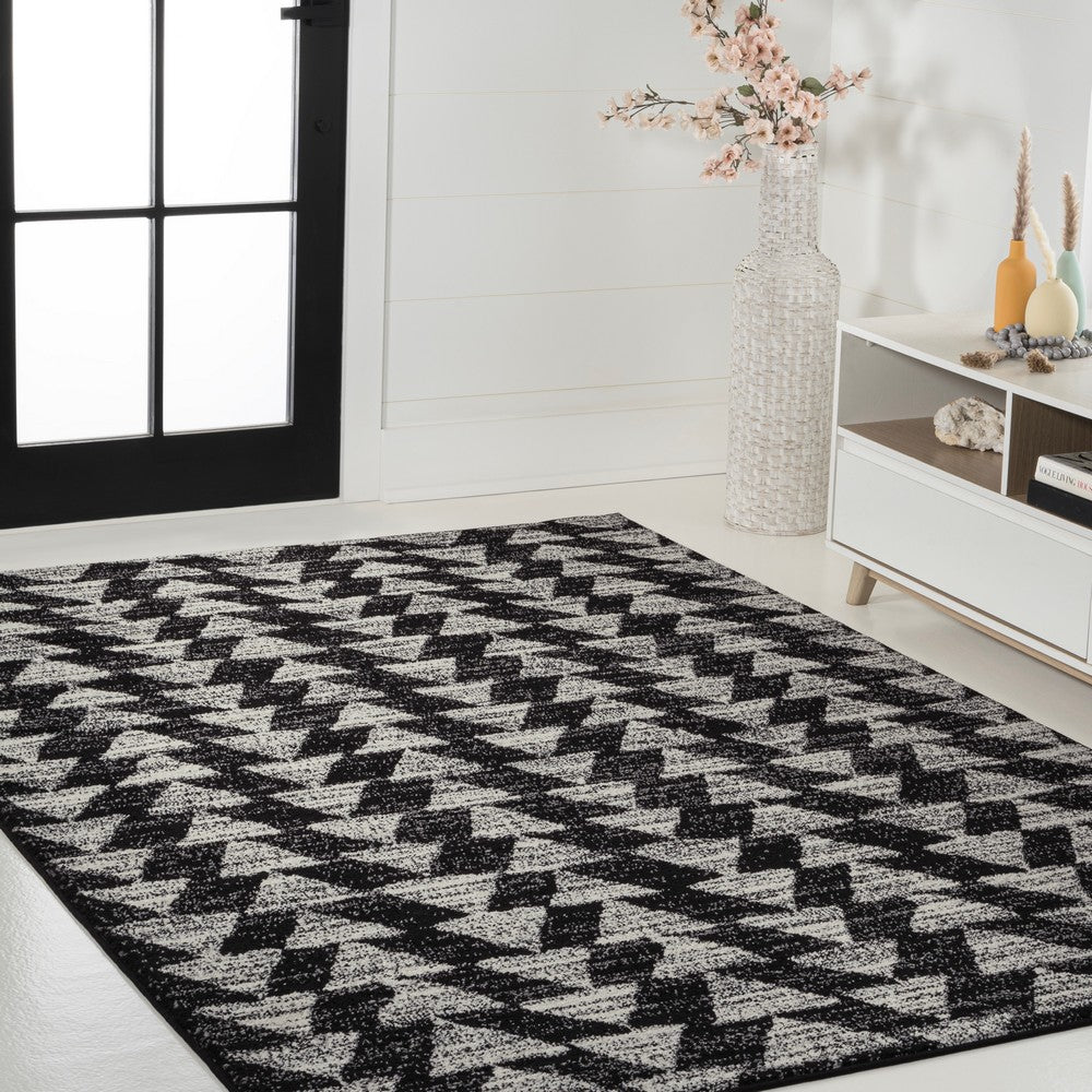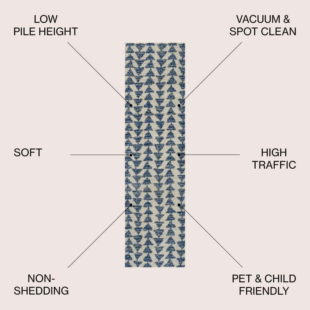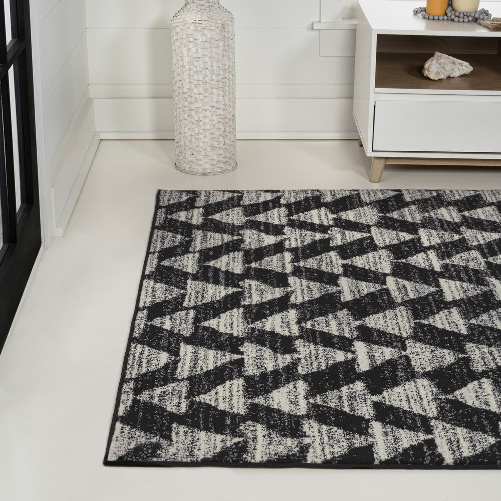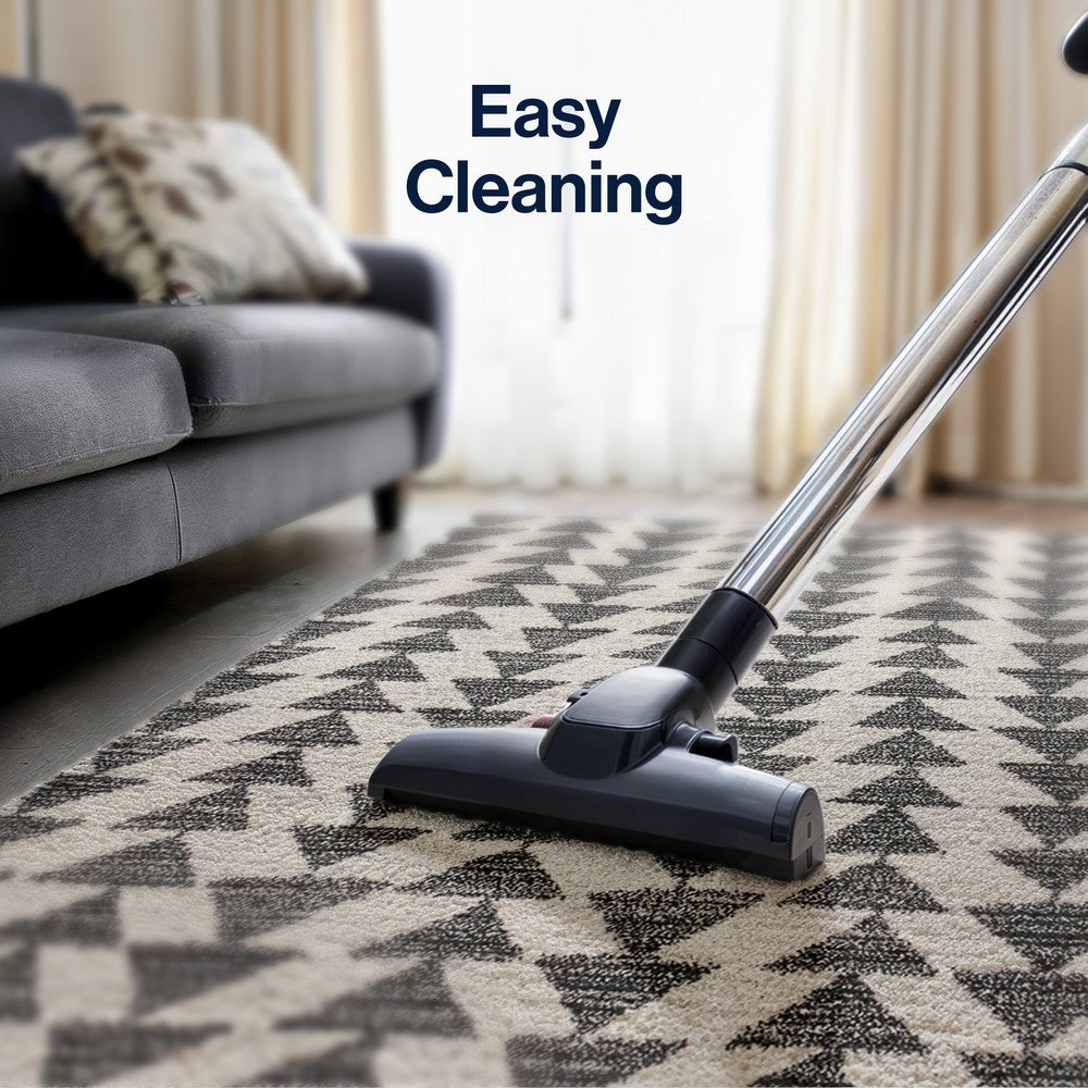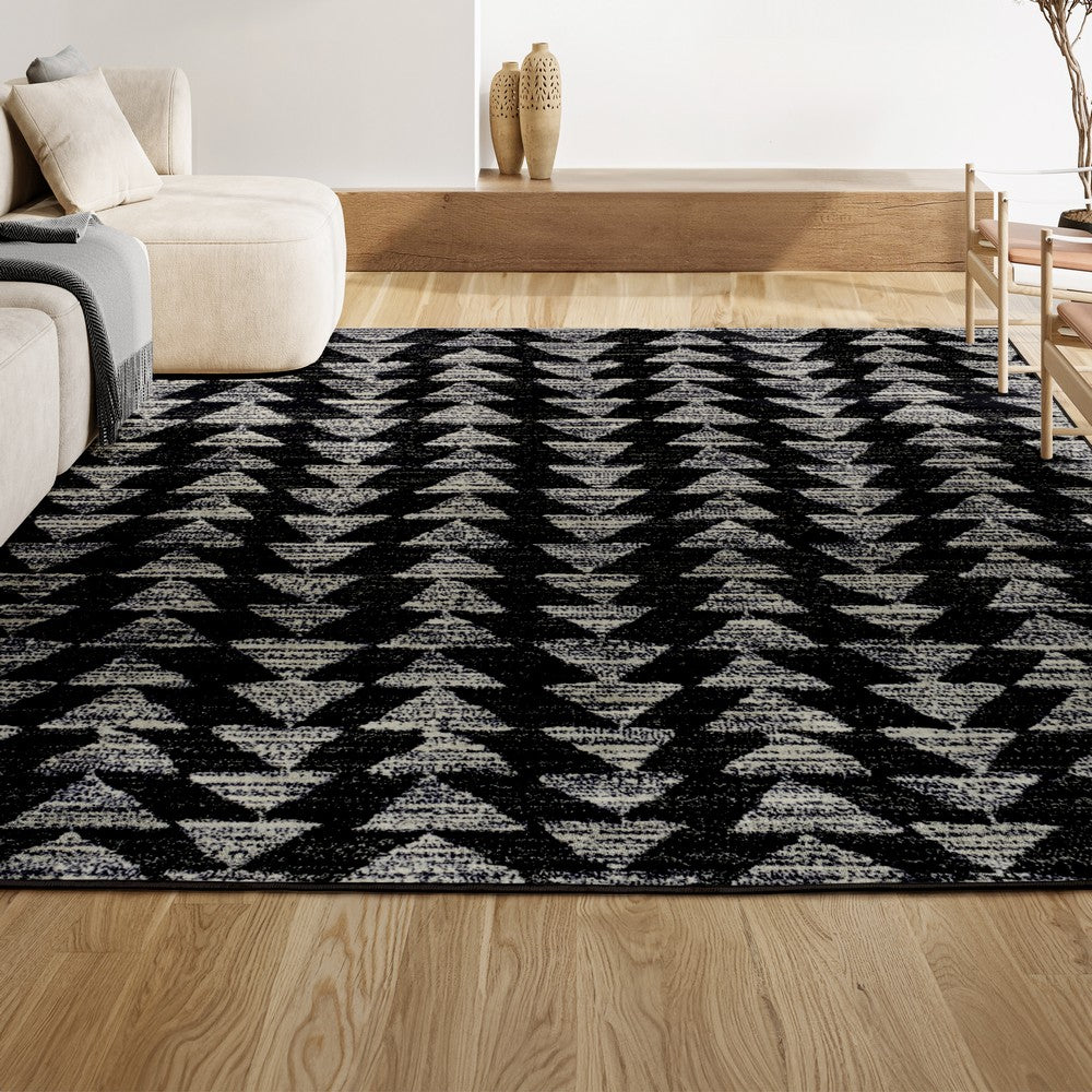 Inspired by vintage Moroccan tribal rugs, our modern version is power-loomed with a short pile. Rows of triangle symbols are woven in black on a field of ivory; the mingled threads recall traditional handwoven rugs. Add some Bohemian style to your home with this easy-care rug.