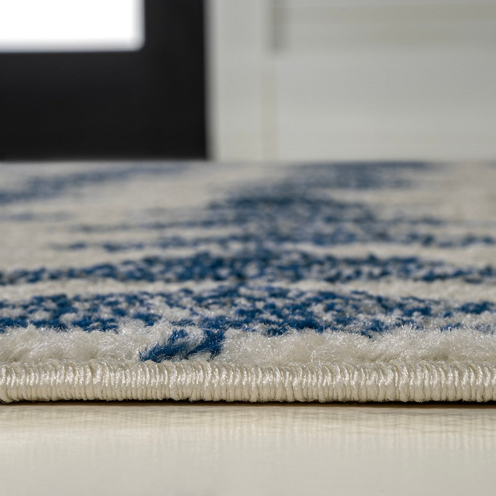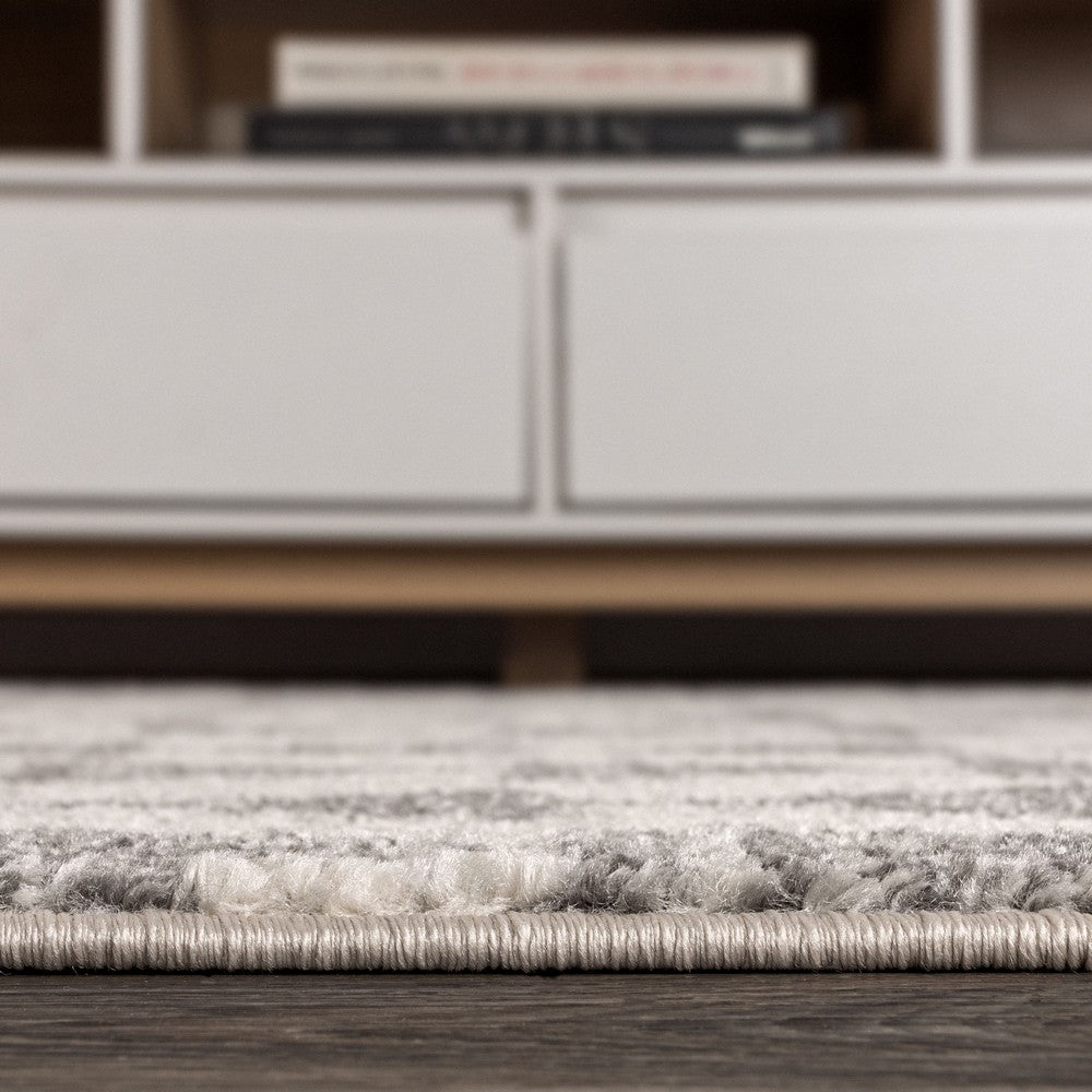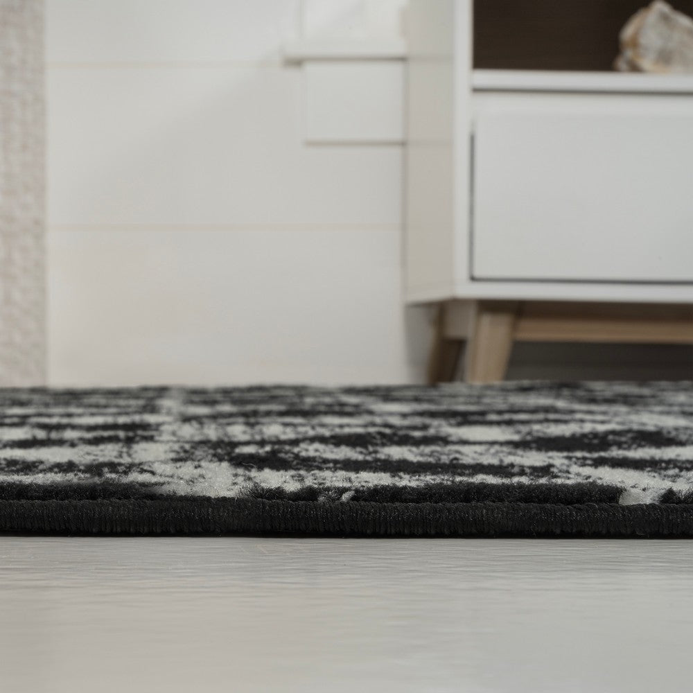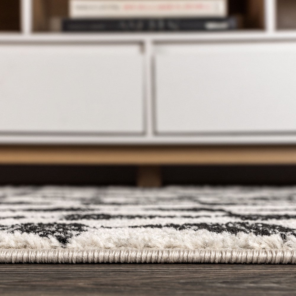 - The ivory and black color scheme reproduces the look of neutral, vintage tribal rugs