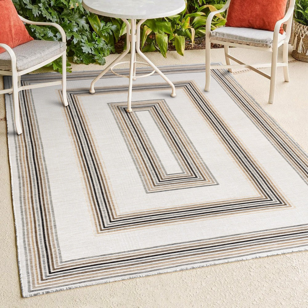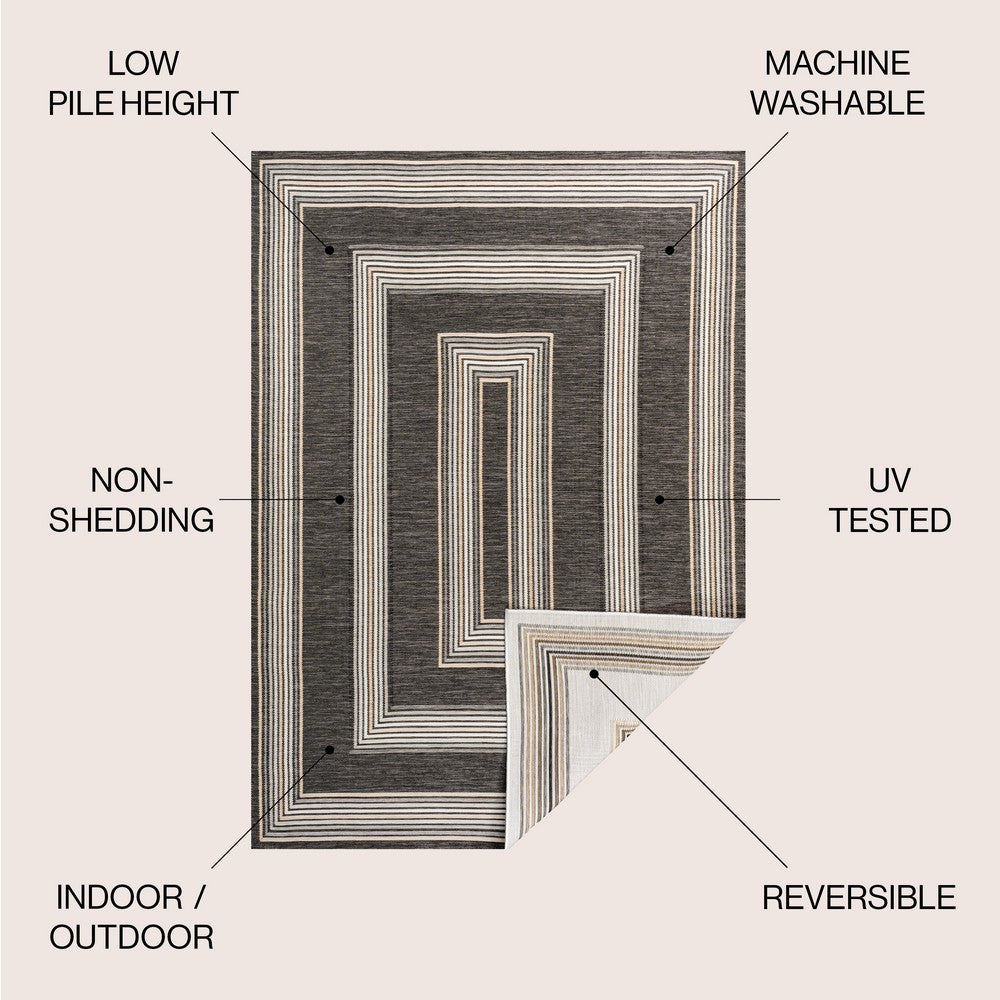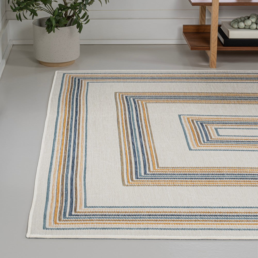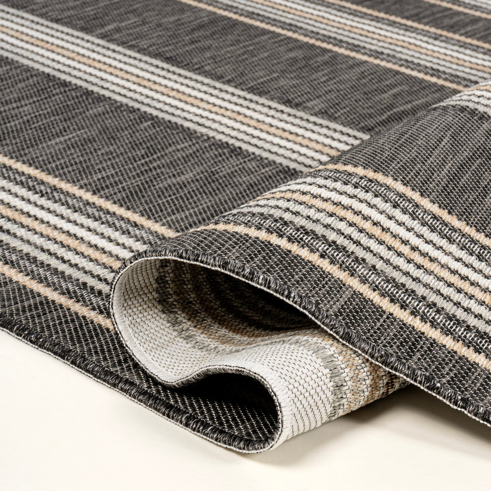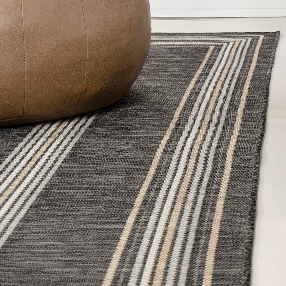 Inspired by nautical stripes, this classic rug features a ticking-style stripe with mitred corners. Mingled threads give this easy-care, reversible rug a coastal vibe. Durable enough for outdoors on a porch, or in the living room, entry, bedroom or dining room.