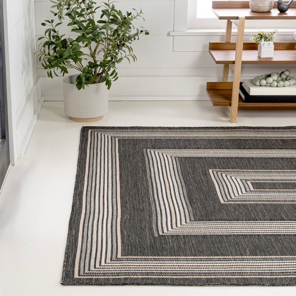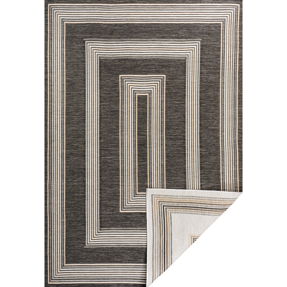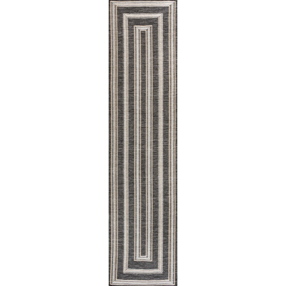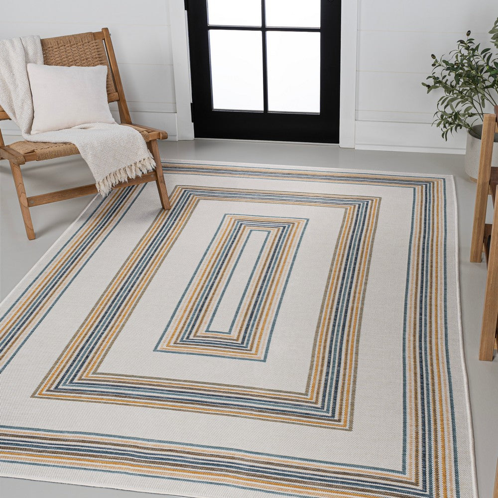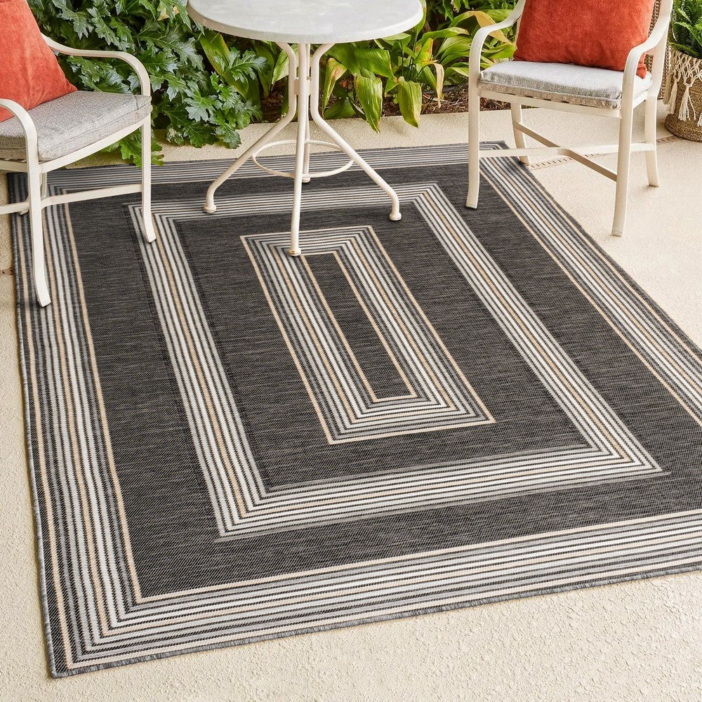 Inspired by nautical stripes, this classic rug features a ticking-style stripe with mitred corners. Mingled threads give this easy-care, reversible rug a coastal vibe. Durable enough for outdoors on a porch, or in the living room, entry, bedroom or dining room.