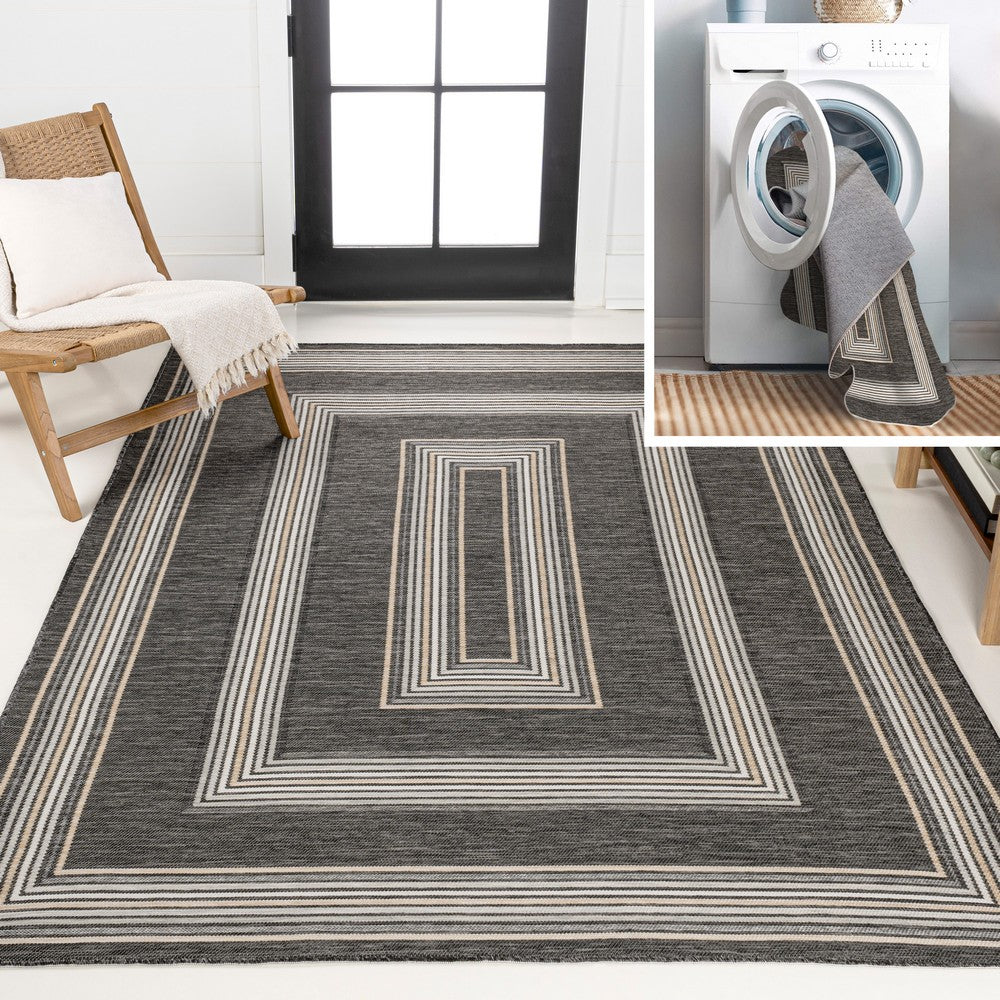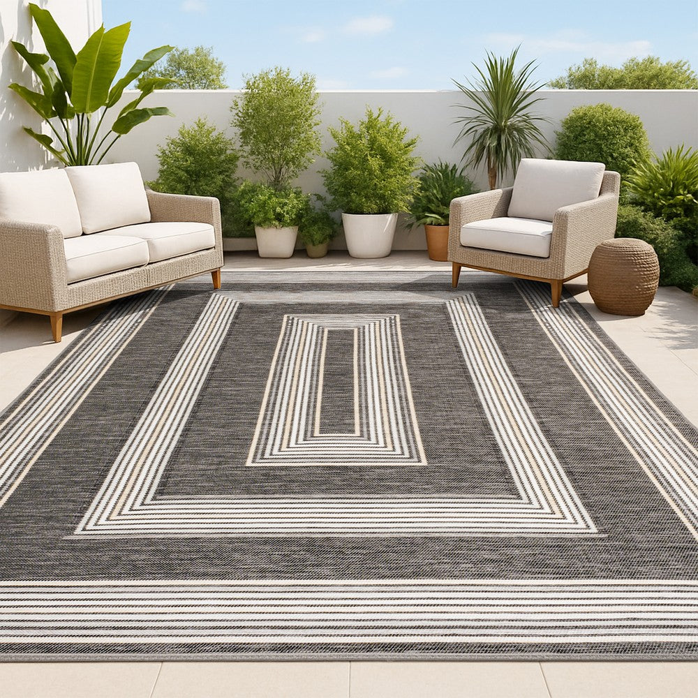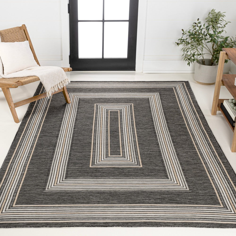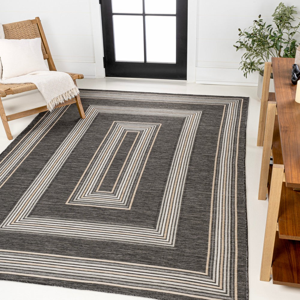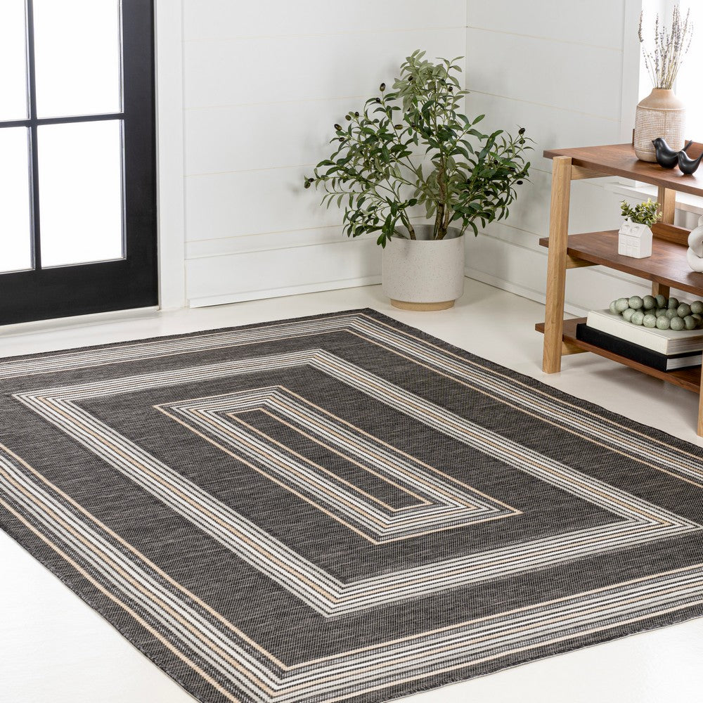 Inspired by nautical stripes, this classic rug features a ticking-style stripe with mitred corners. Mingled threads give this easy-care, reversible rug a coastal vibe. Durable enough for outdoors on a porch, or in the living room, entry, bedroom or dining room.