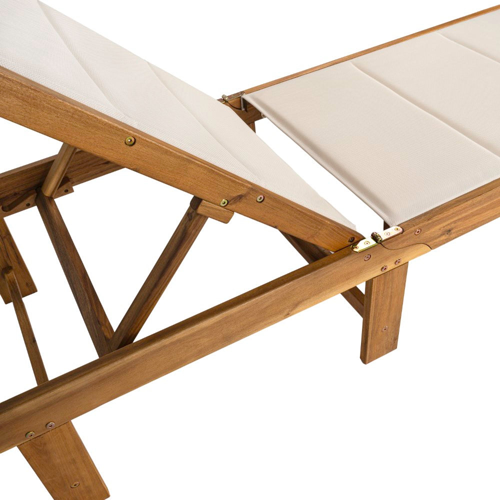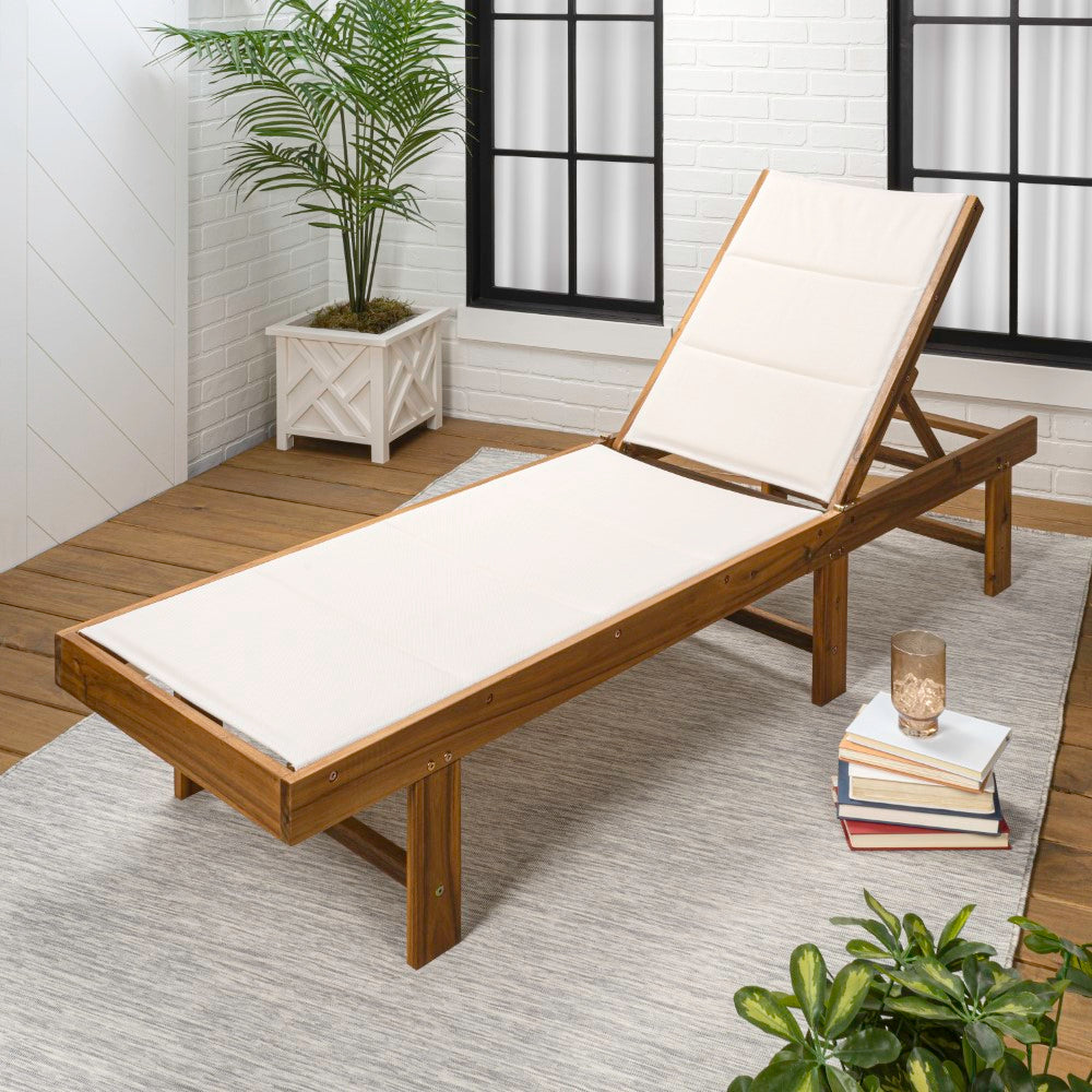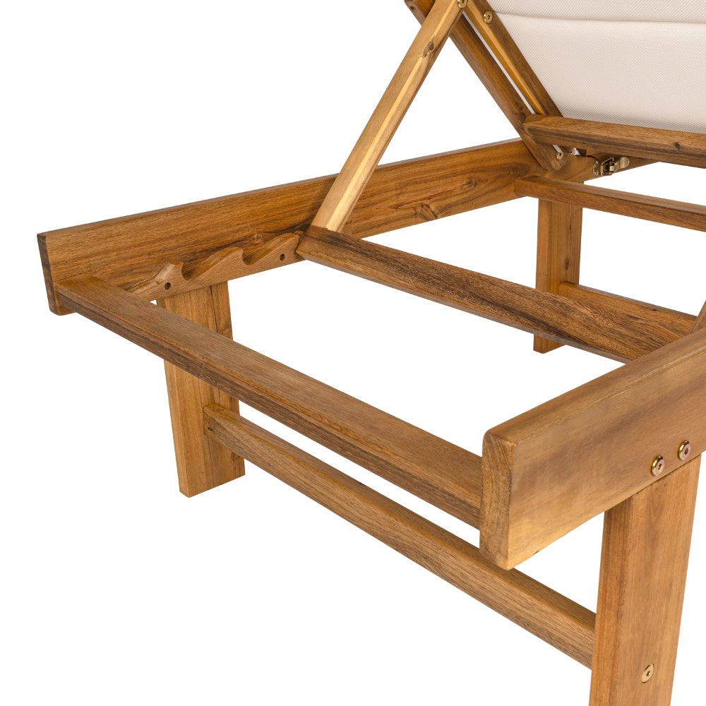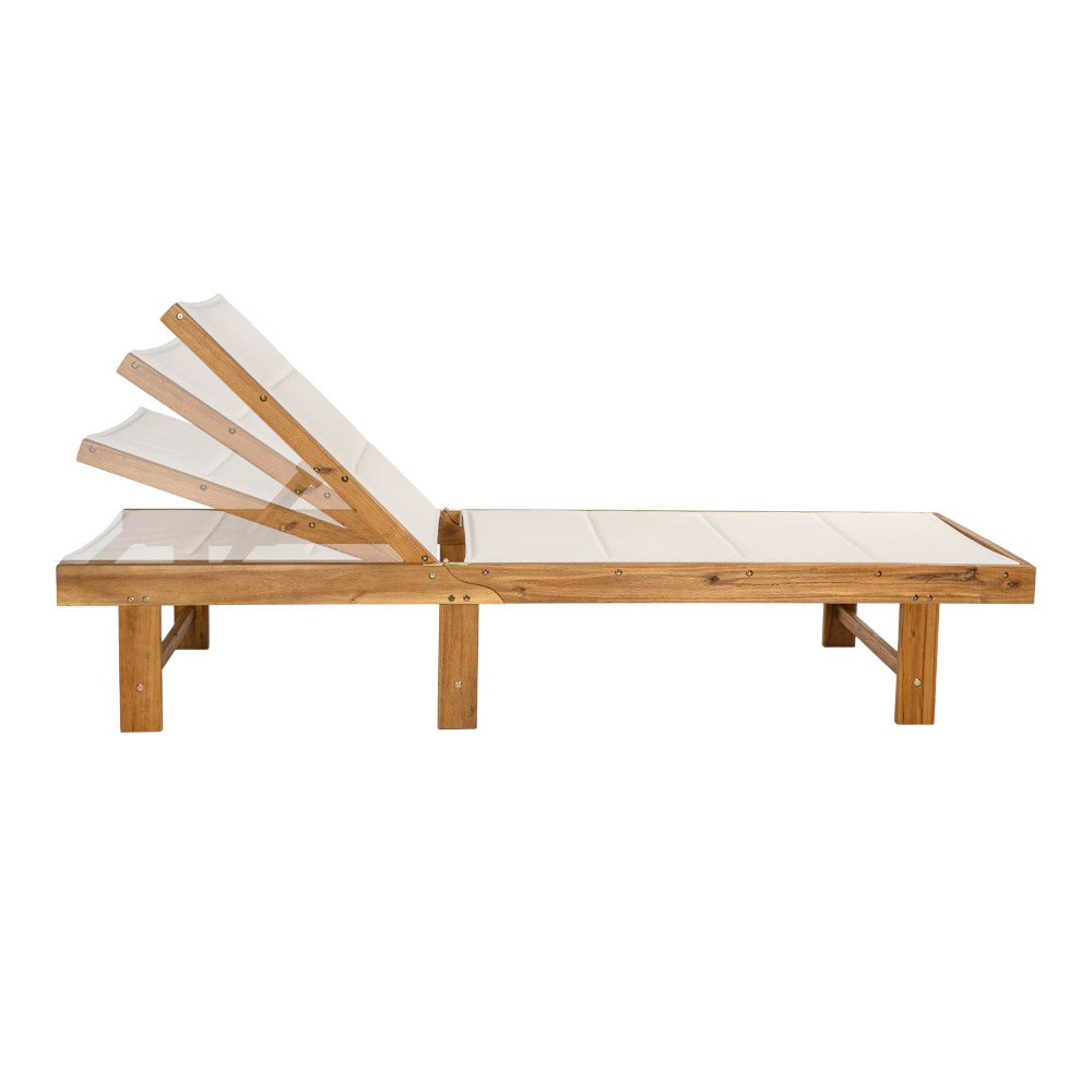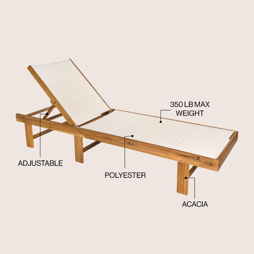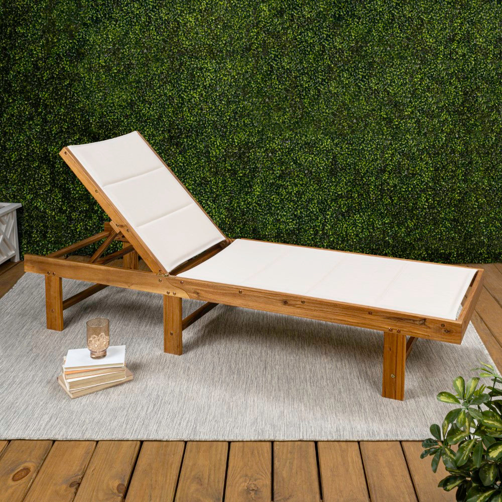 Our modern adjustable chaise lounge combines solid wood with cooling textile fabric for an upscale resort vibe. You'll love the comfort of our adjustable back, and the durable mesh sling that lets air circulate. The sturdy hardwood frame is protected with a teak oil finish.
