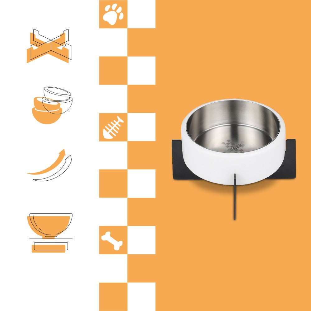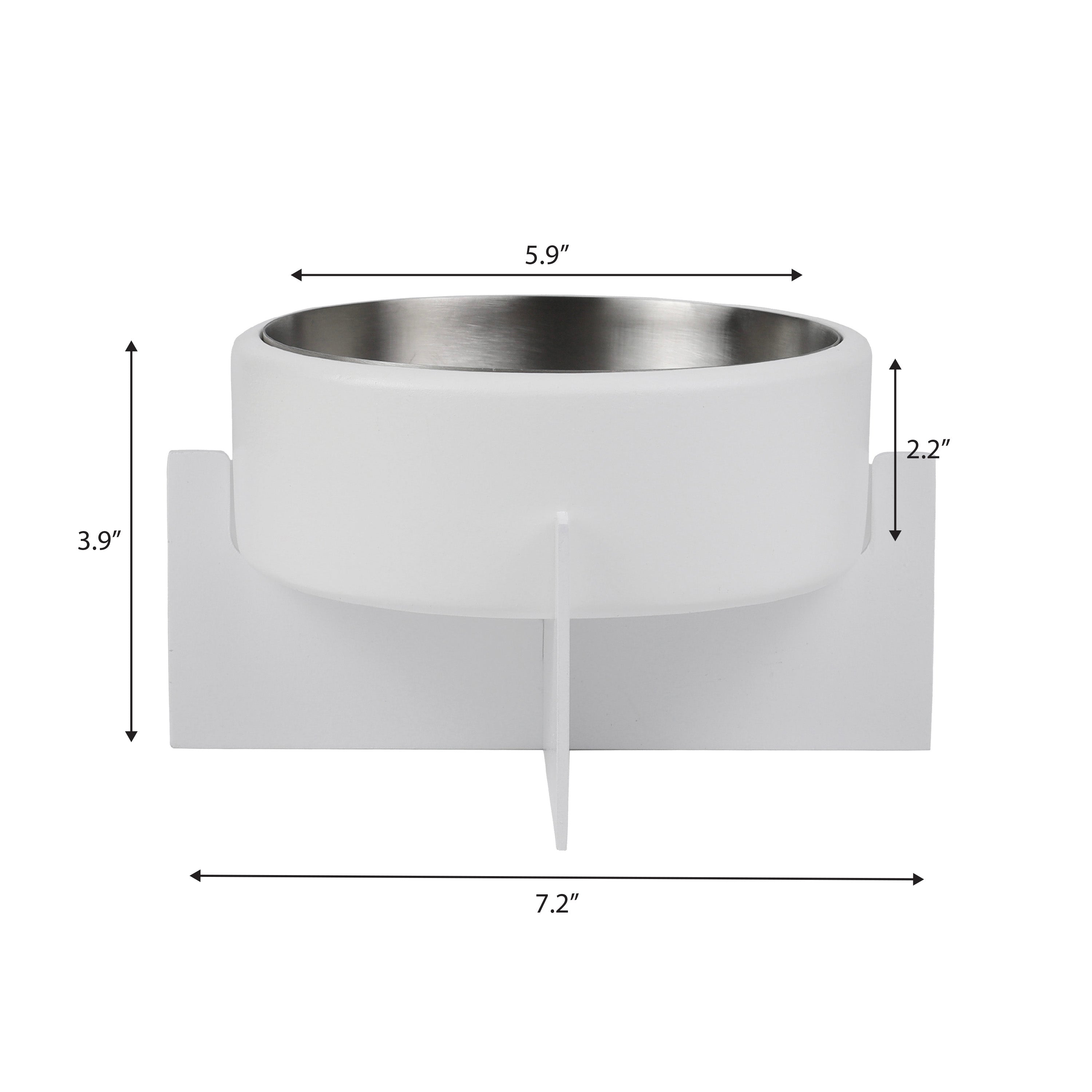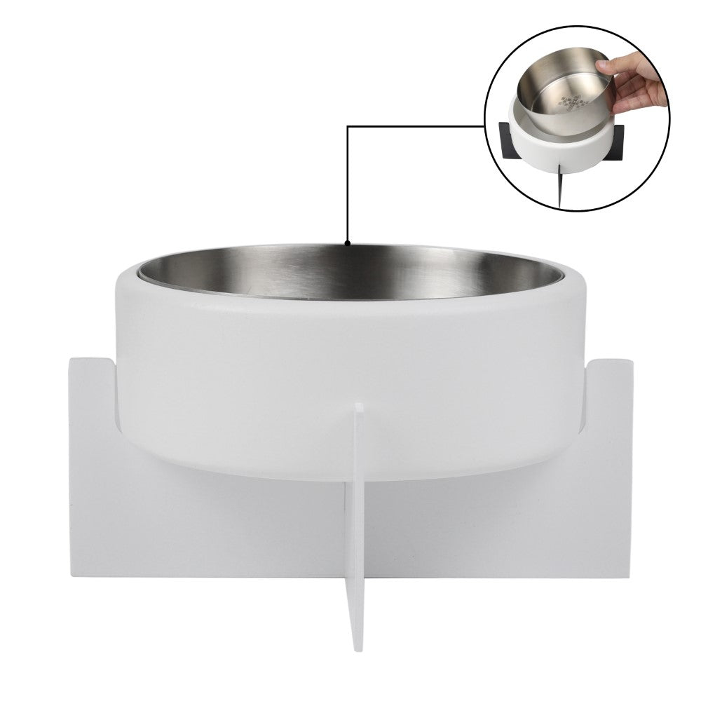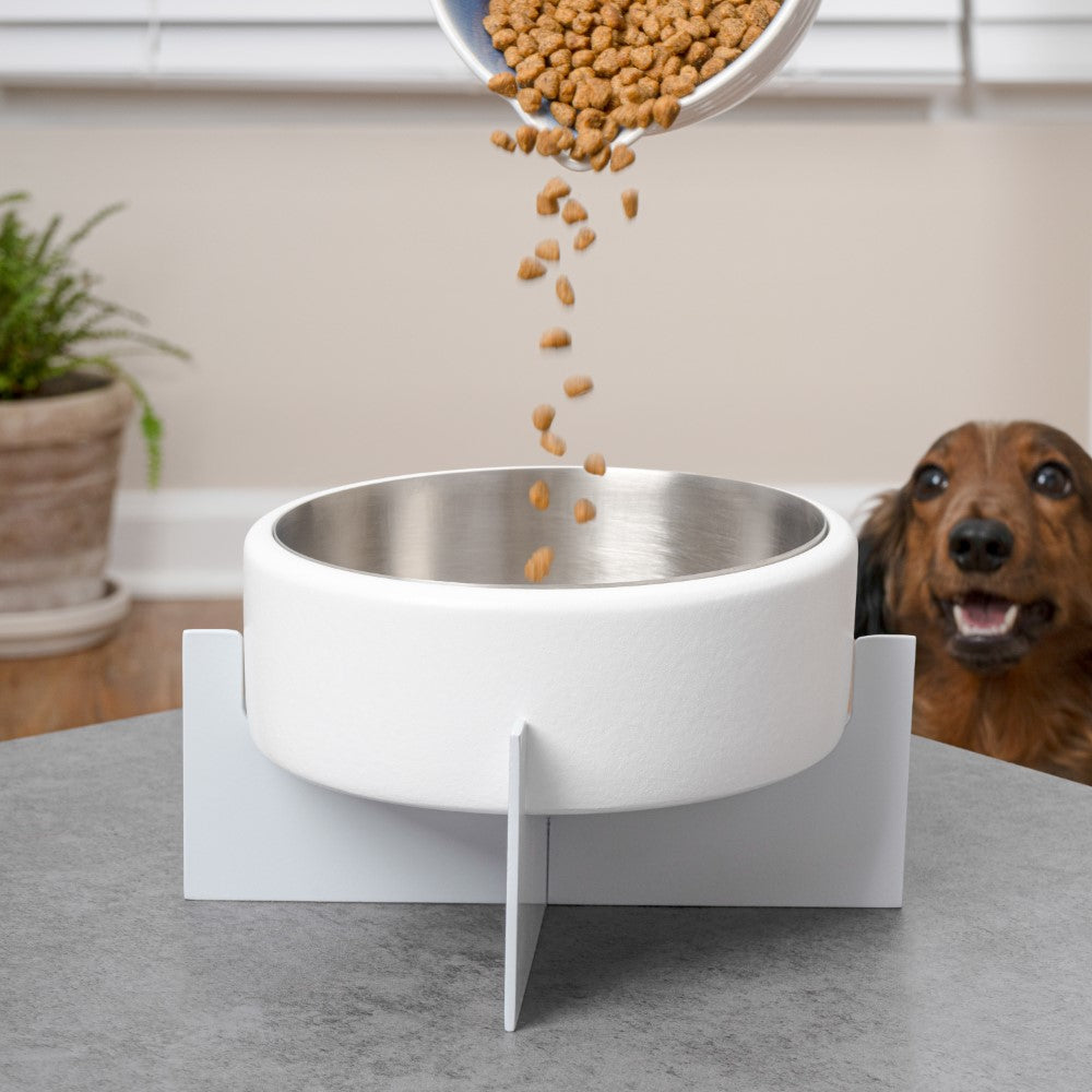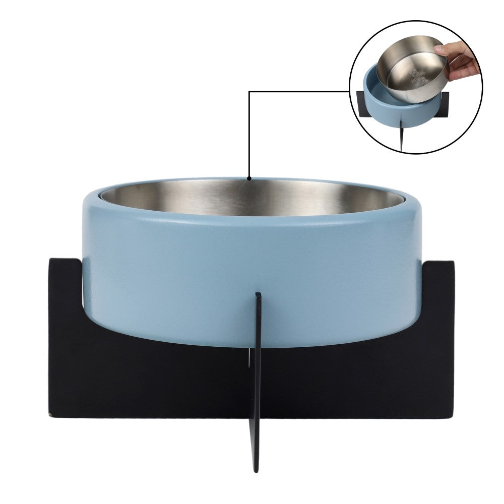 This elevated pet bowl combines sleek design with sturdy craftsmanship for a refined feeding solution. The solid concrete body provides weight and stability, while the modern metal cross base ensures an elevated position for comfort during mealtime. A detachable stainless steel bowl makes cleaning simple, while the thoughtful design balances functionality with a modern aesthetic.