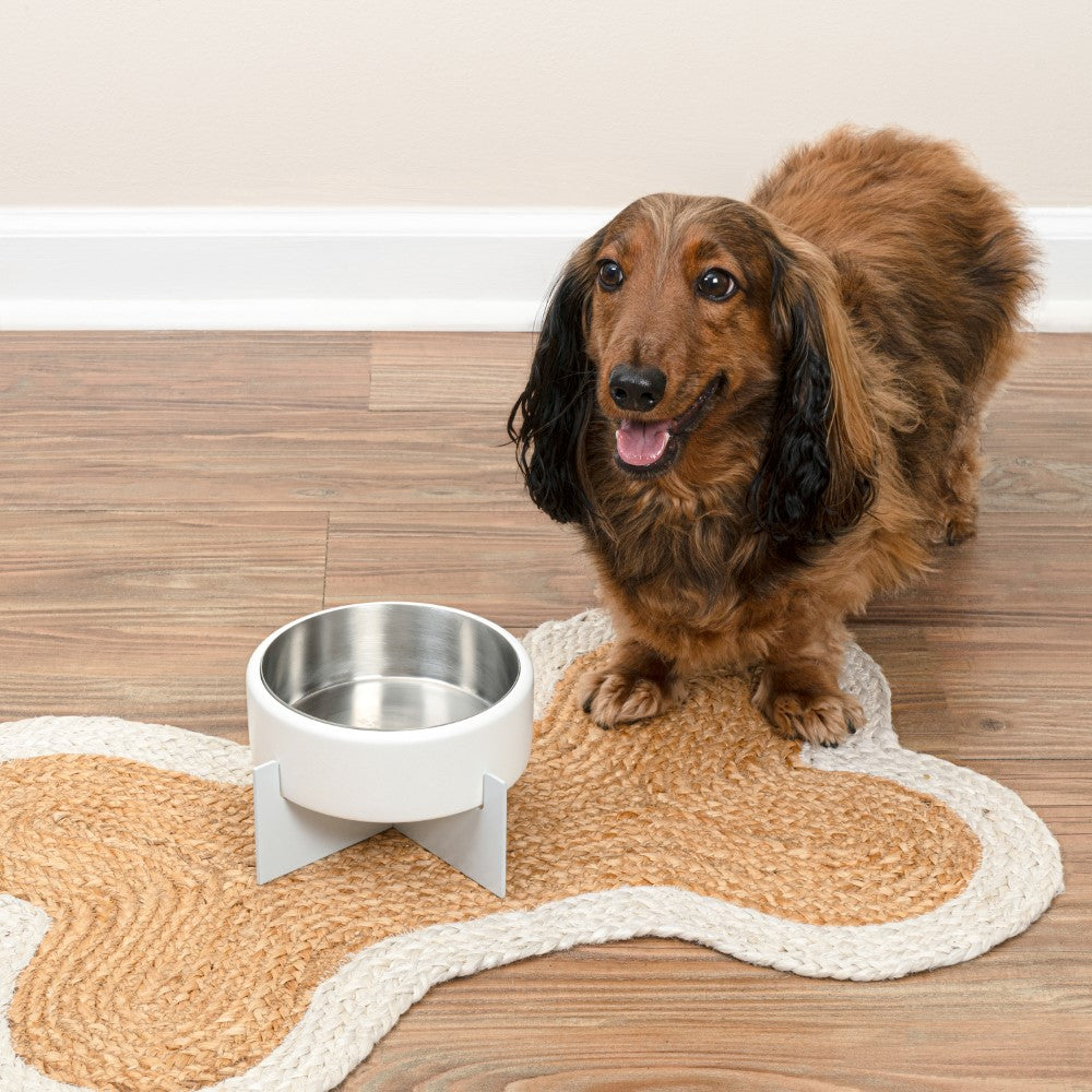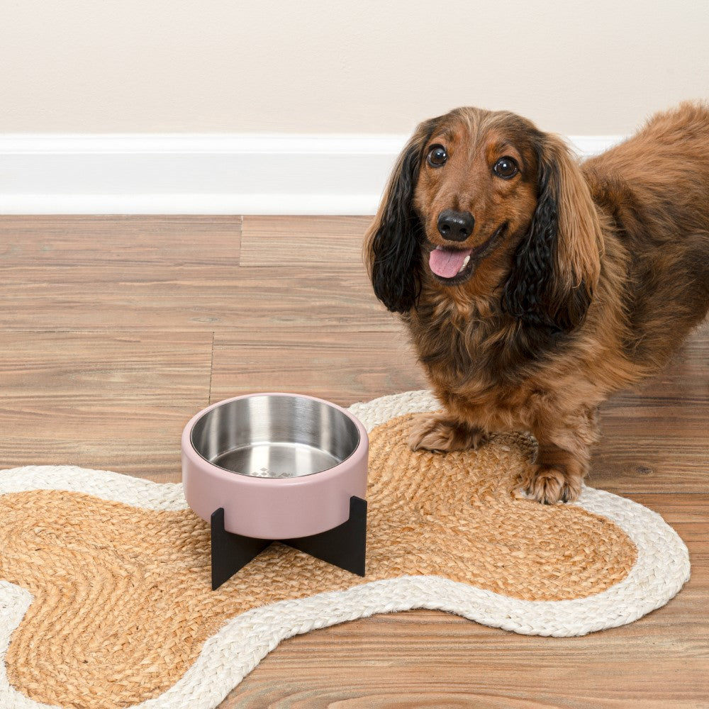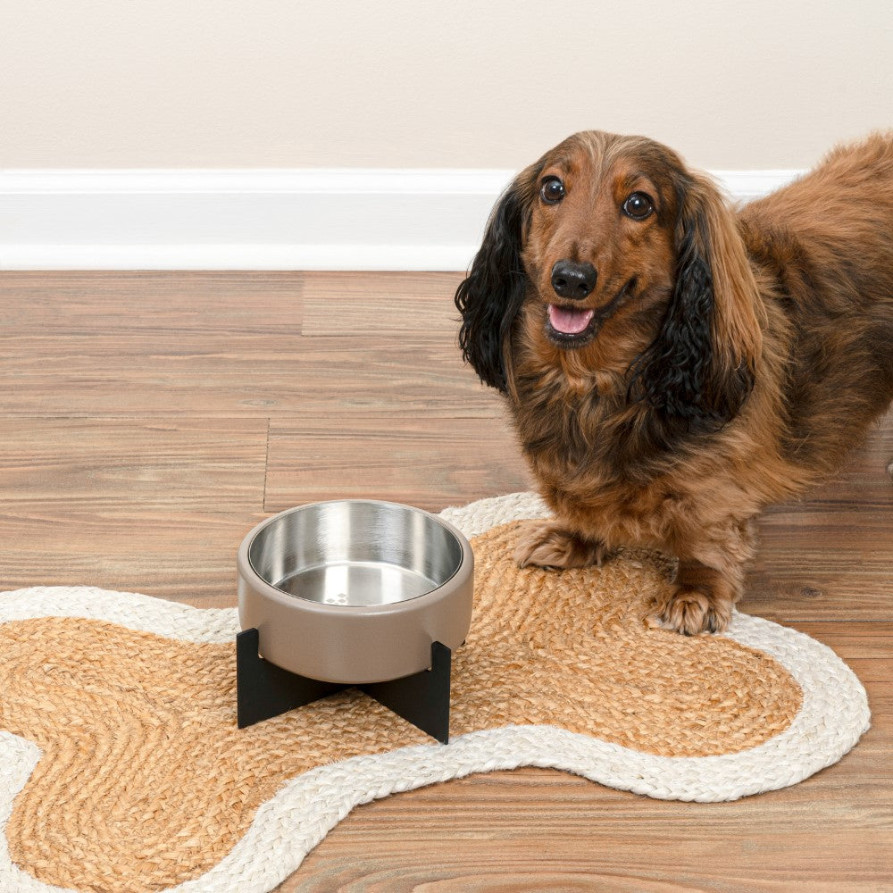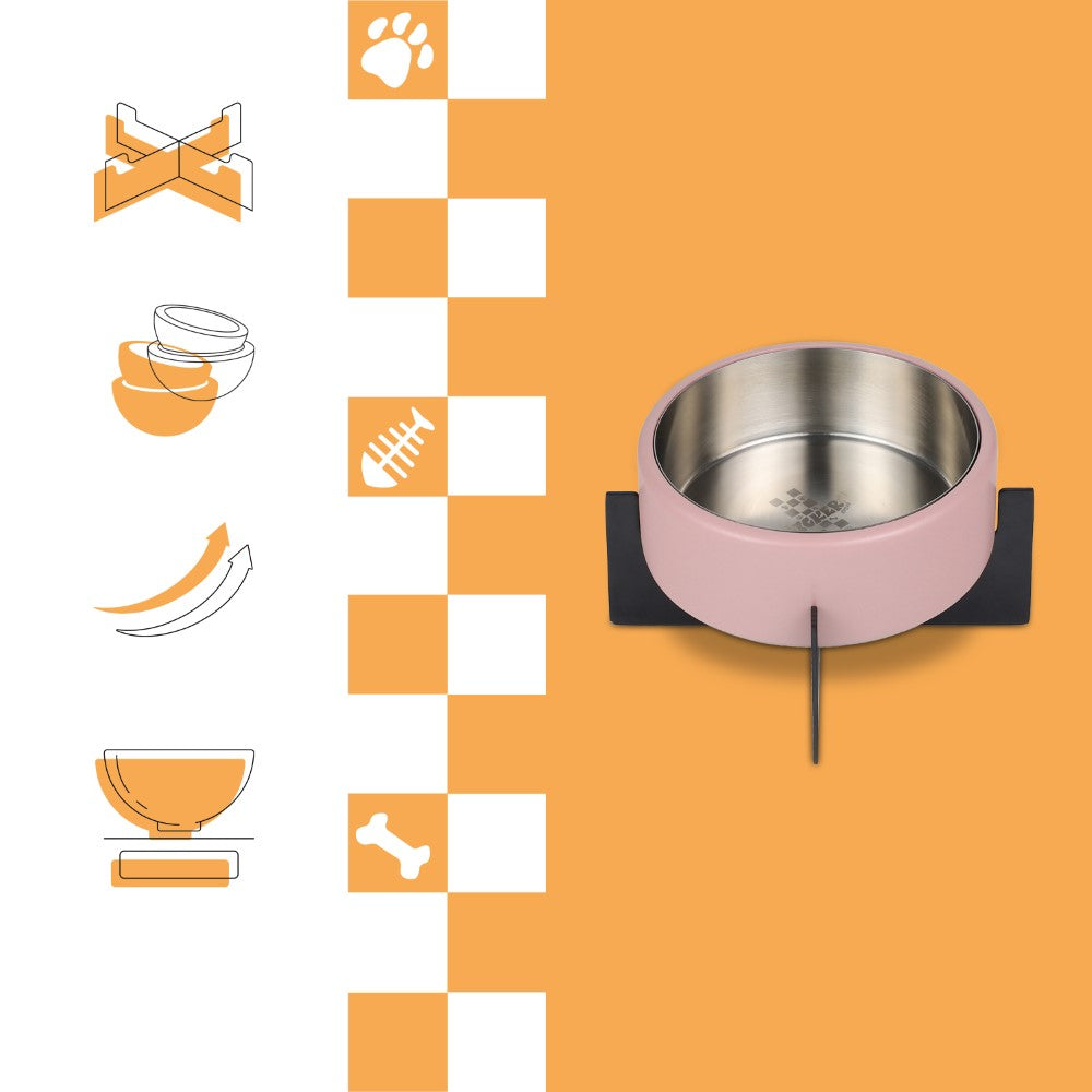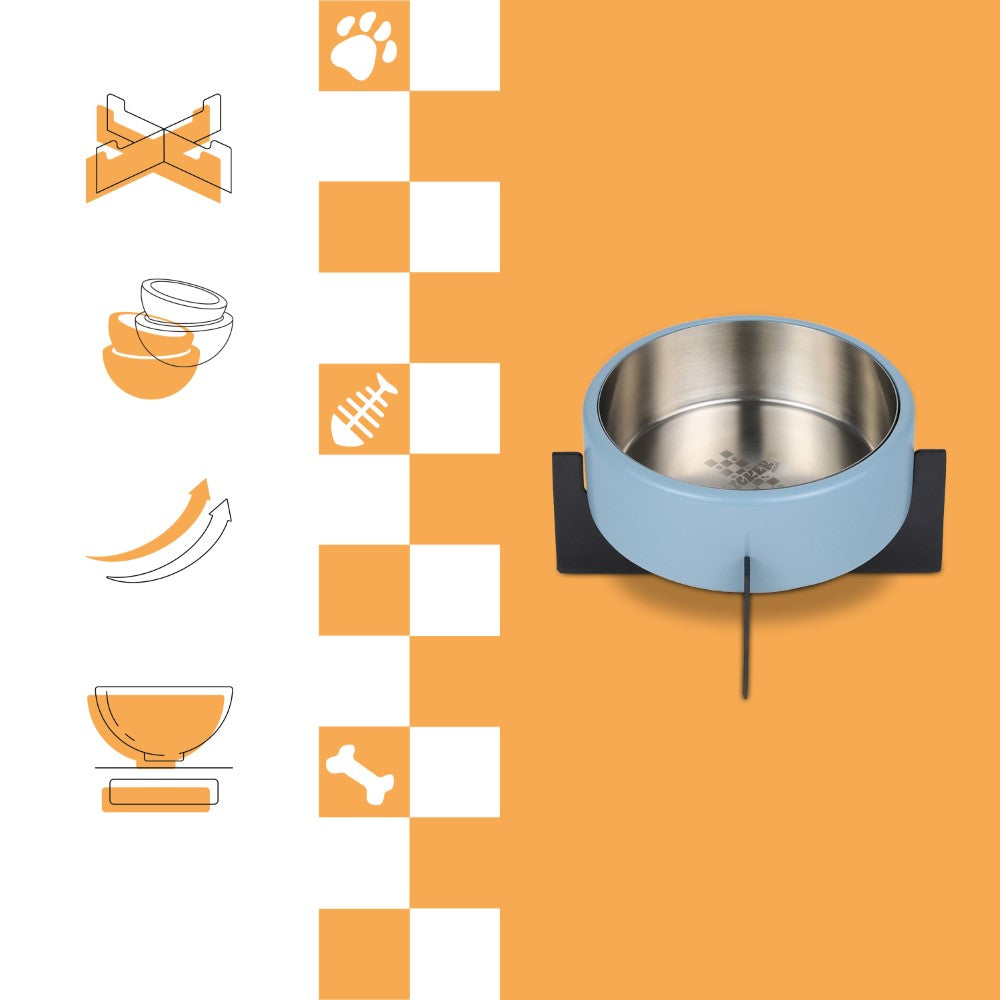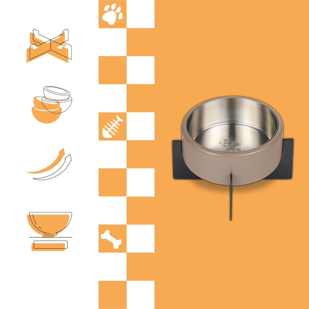 This elevated pet bowl combines sleek design with sturdy craftsmanship for a refined feeding solution. The solid concrete body provides weight and stability, while the modern metal cross base ensures an elevated position for comfort during mealtime. A detachable stainless steel bowl makes cleaning simple, while the thoughtful design balances functionality with a modern aesthetic.
