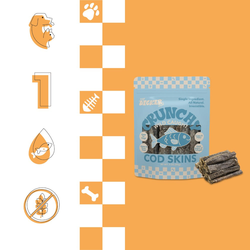 OakTreat Gluten and Grain-Free Omega-3 Single Ingredient Crunchy Dried Cod Skin for Dogs