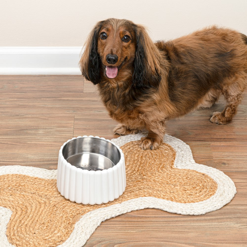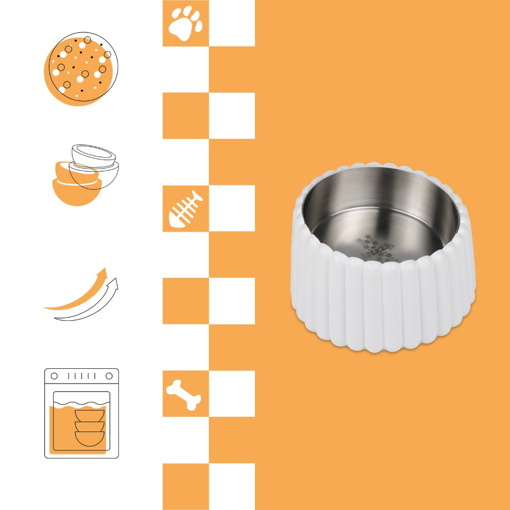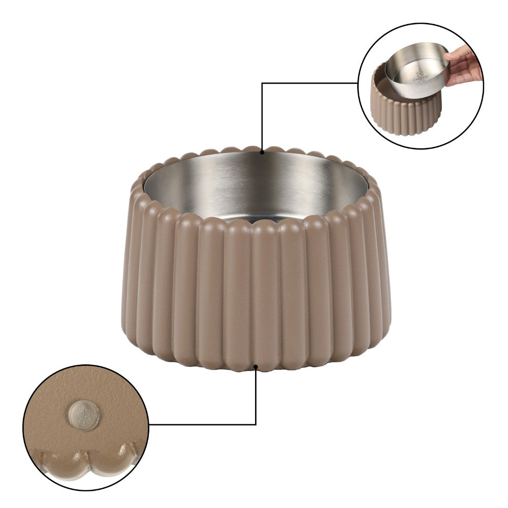 Designed with both form and function in mind, this pet bowl adds a touch of modern style to feeding time. The concrete body provides a weighted base with a slanted rim for comfortable access, while the detachable stainless steel insert ensures hygiene and easy cleaning. Built to last, this bowl balances durability with a refined look that elevates everyday use for your pet.