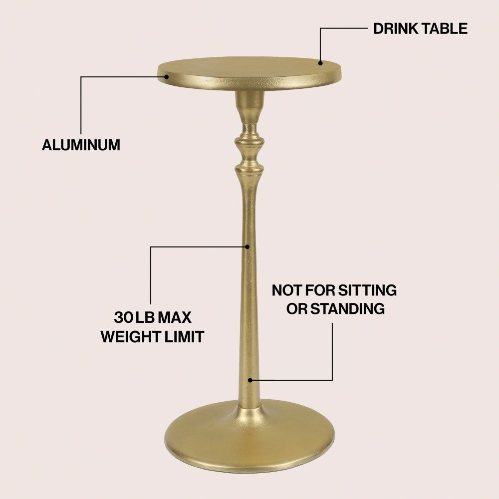 Orva 19.5" Art Deco Classic Pedestal Round Metal Drink Table and Decorative End Table