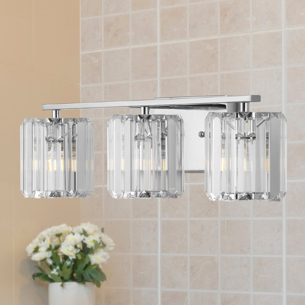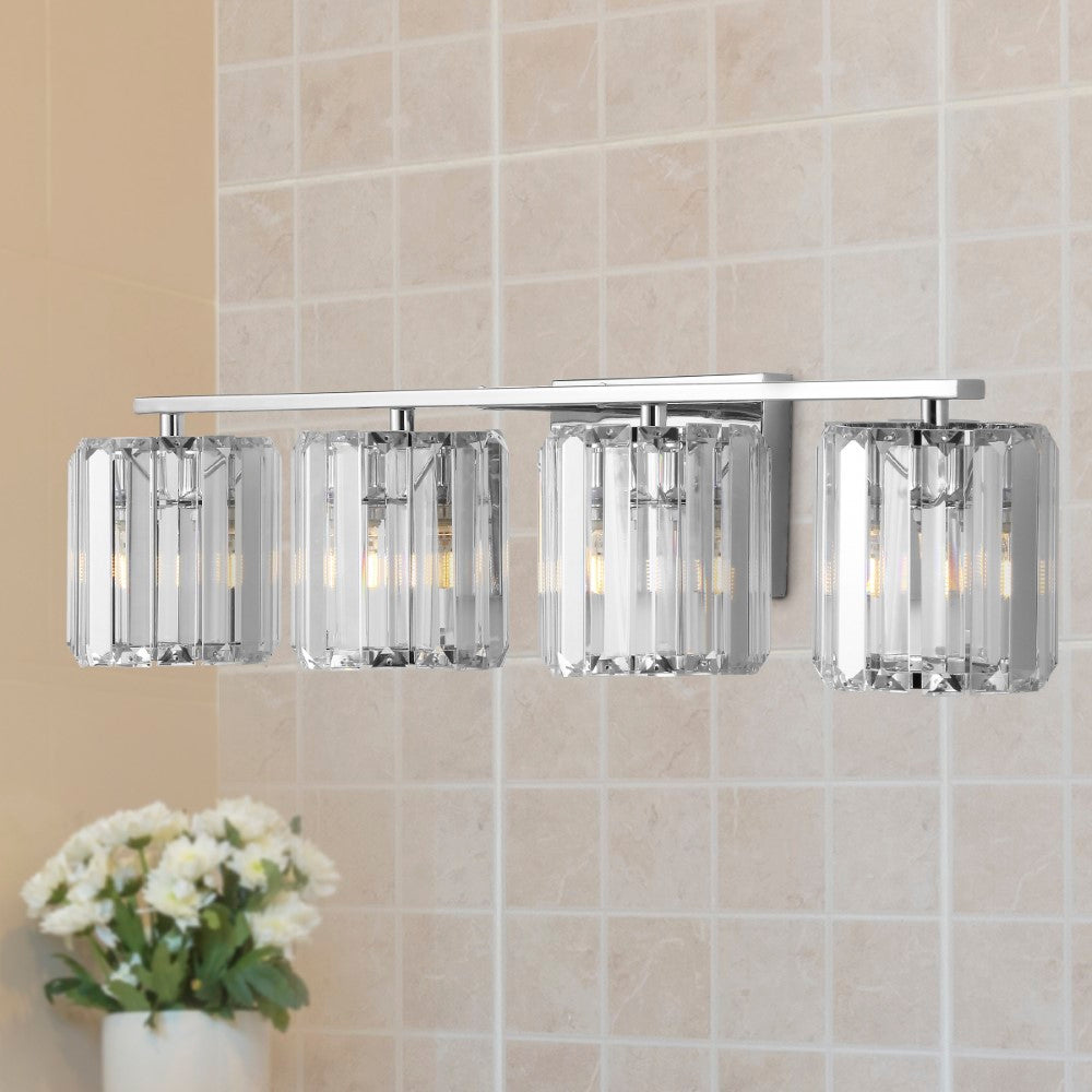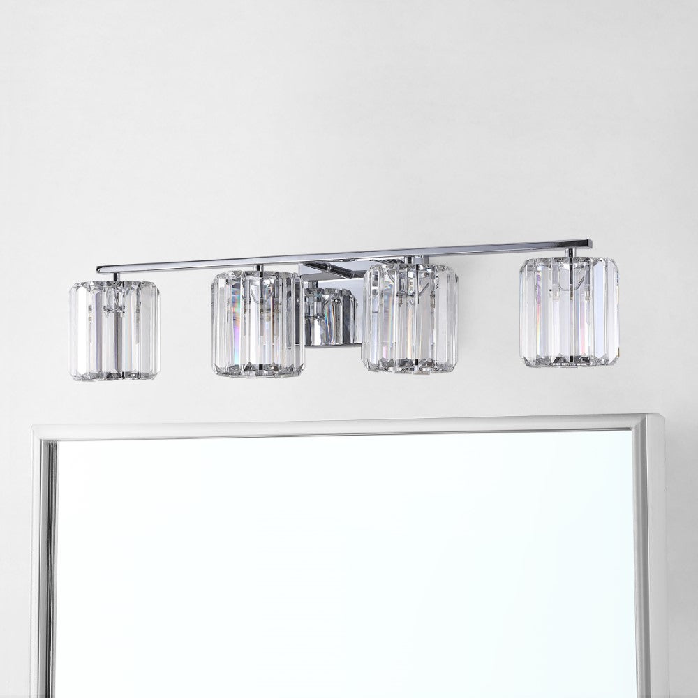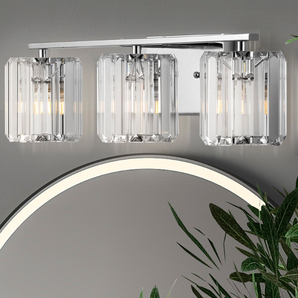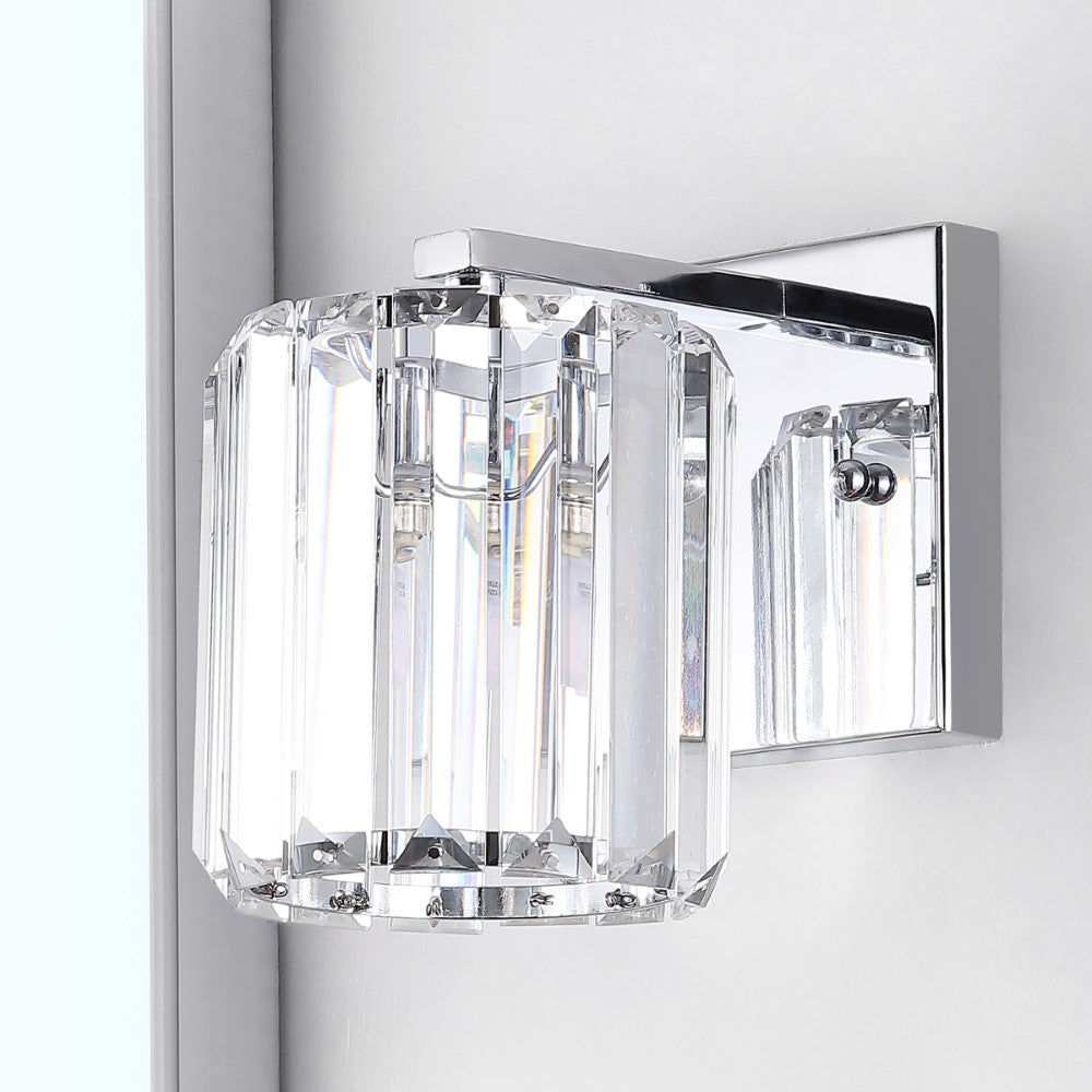 Bring on the glam with our Art Deco-inspired glass prism wall light. A single LED bulb casts a warm glow, providing plenty of light. Sparkling glass and chrome add feminine style to your bath vanity, kitchen, hallway, or entry.