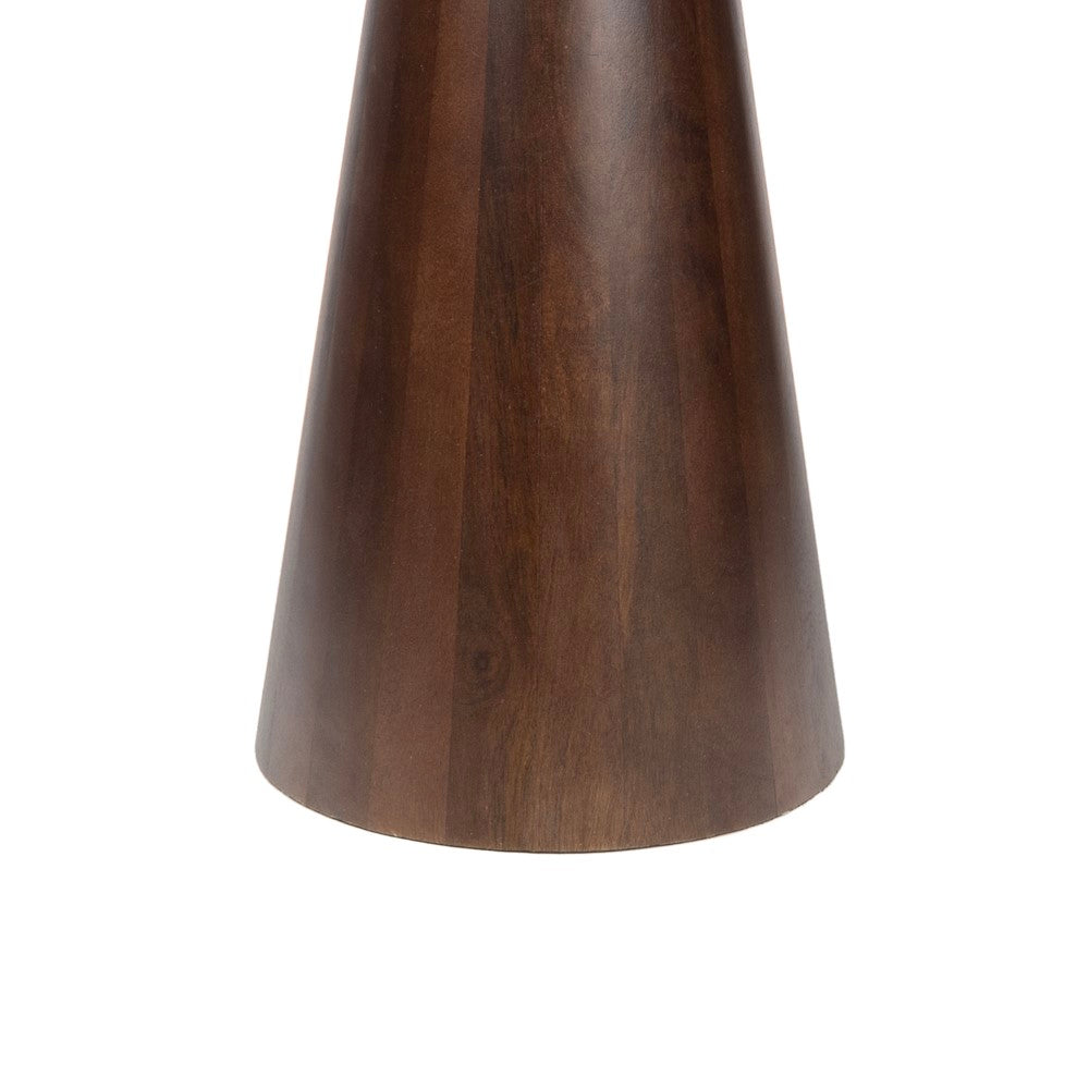 - The mango wood base has a walnut brown stain, while the transitional marble top blends white, gray and brown veining