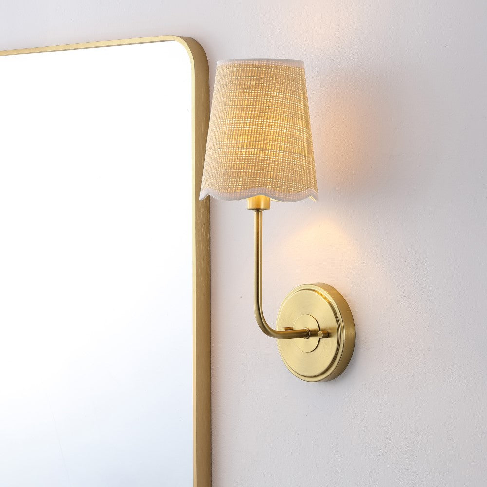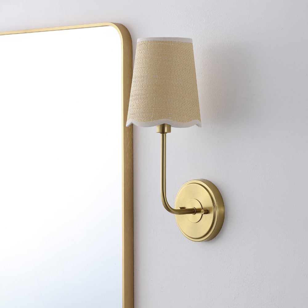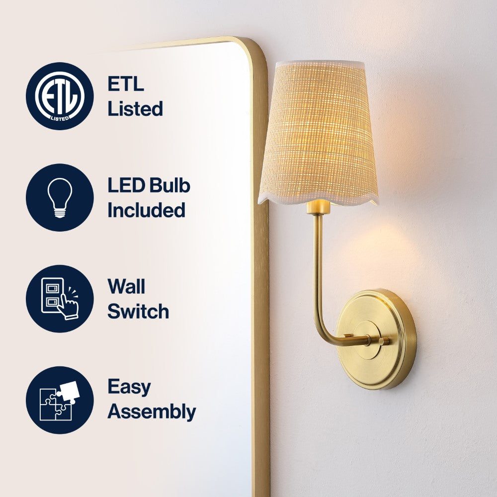 Elevate a traditional space or coastal home with the timeless chic of scalloped lampshades. This versatile wall sconce brings a warm, radiant glow to entryways, dining rooms, or flanking a vanity mirror. With its clean lines and upscale finish, this wall light provides a bright, warm glow.