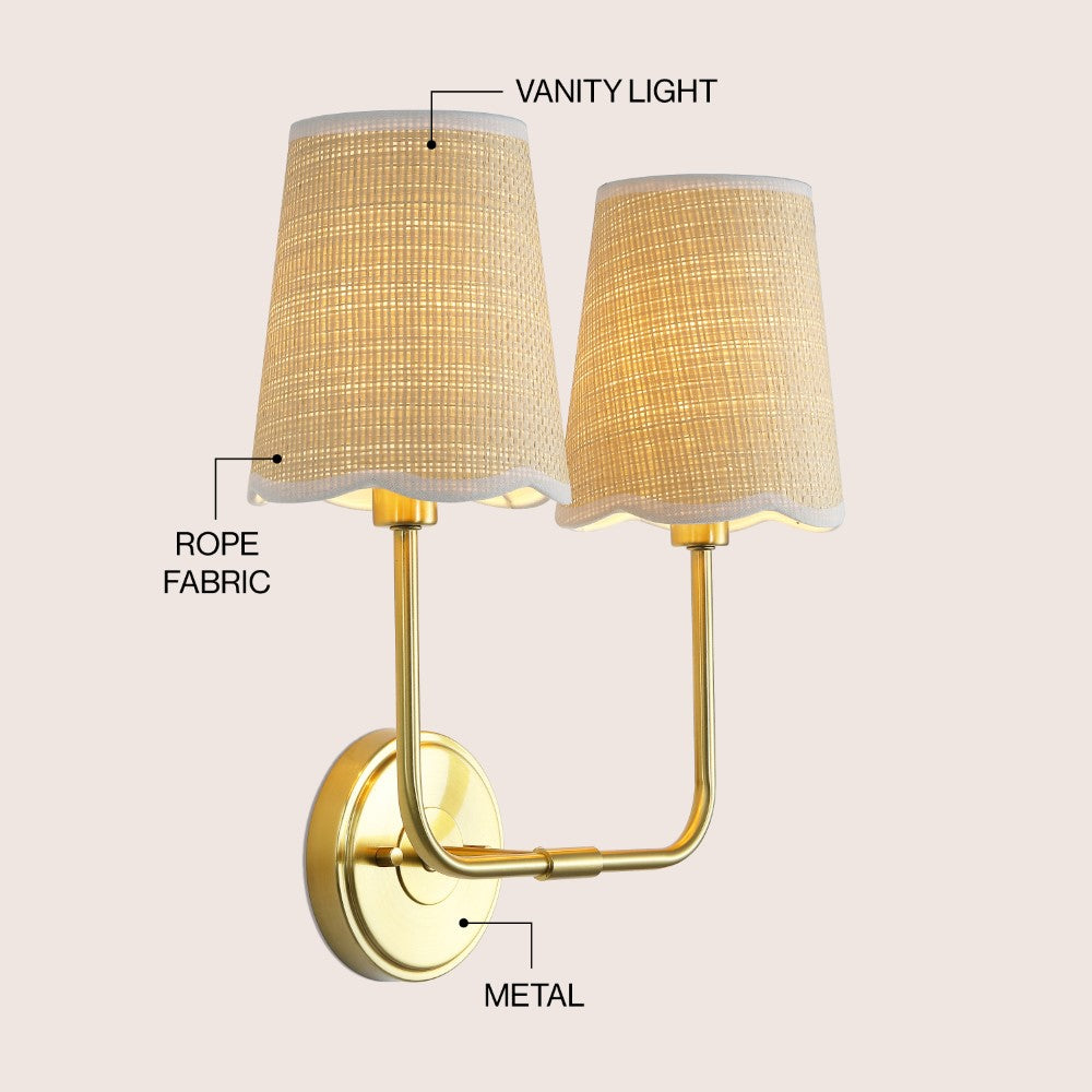 Aspen Traditional Coastal Scalloped Fabric Shade/Metal LED Vanity Light