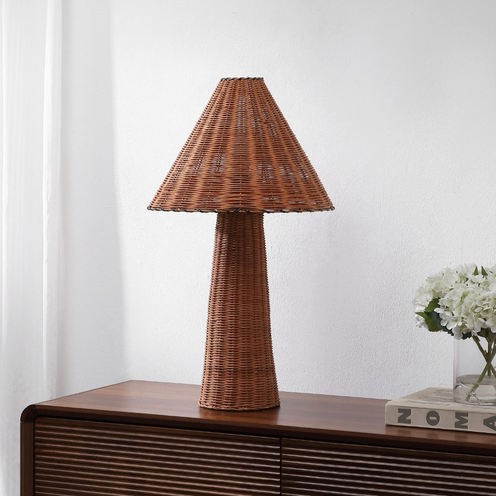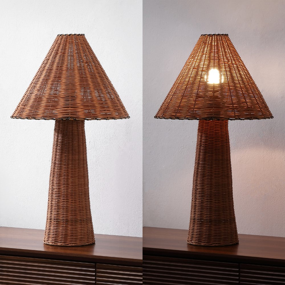 Scandinavian style meets coastal chic in the inspired design of this modern wicker lamp. Made from natural rattan, this lamp features a tall cylinder base topped by a woven rattan cone shade. With its warm, bright LED bulb, this sculptural lamp adds a cozy glow to the living room, bedroom or home office.