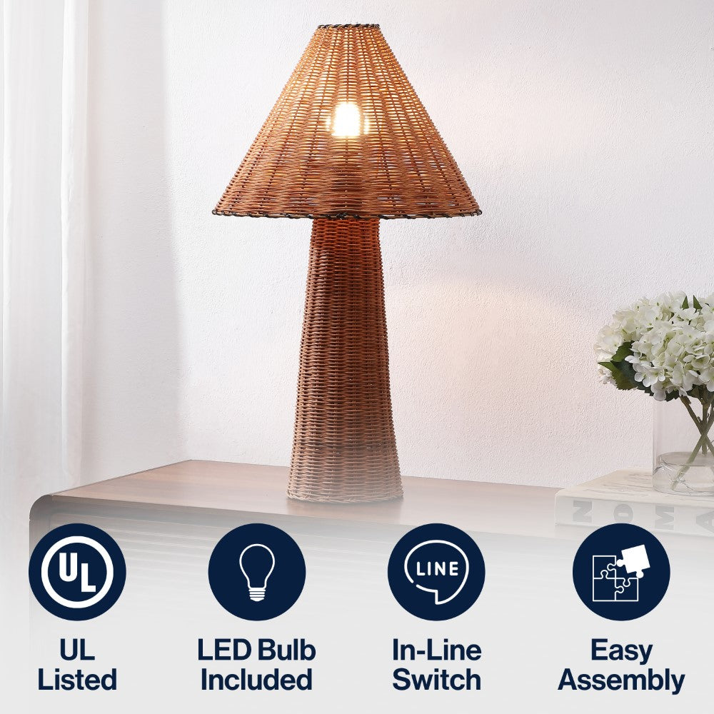 Phoenix 26.5" Modern Coastal Woven Rattan Tapered Cylinder LED Table Lamp