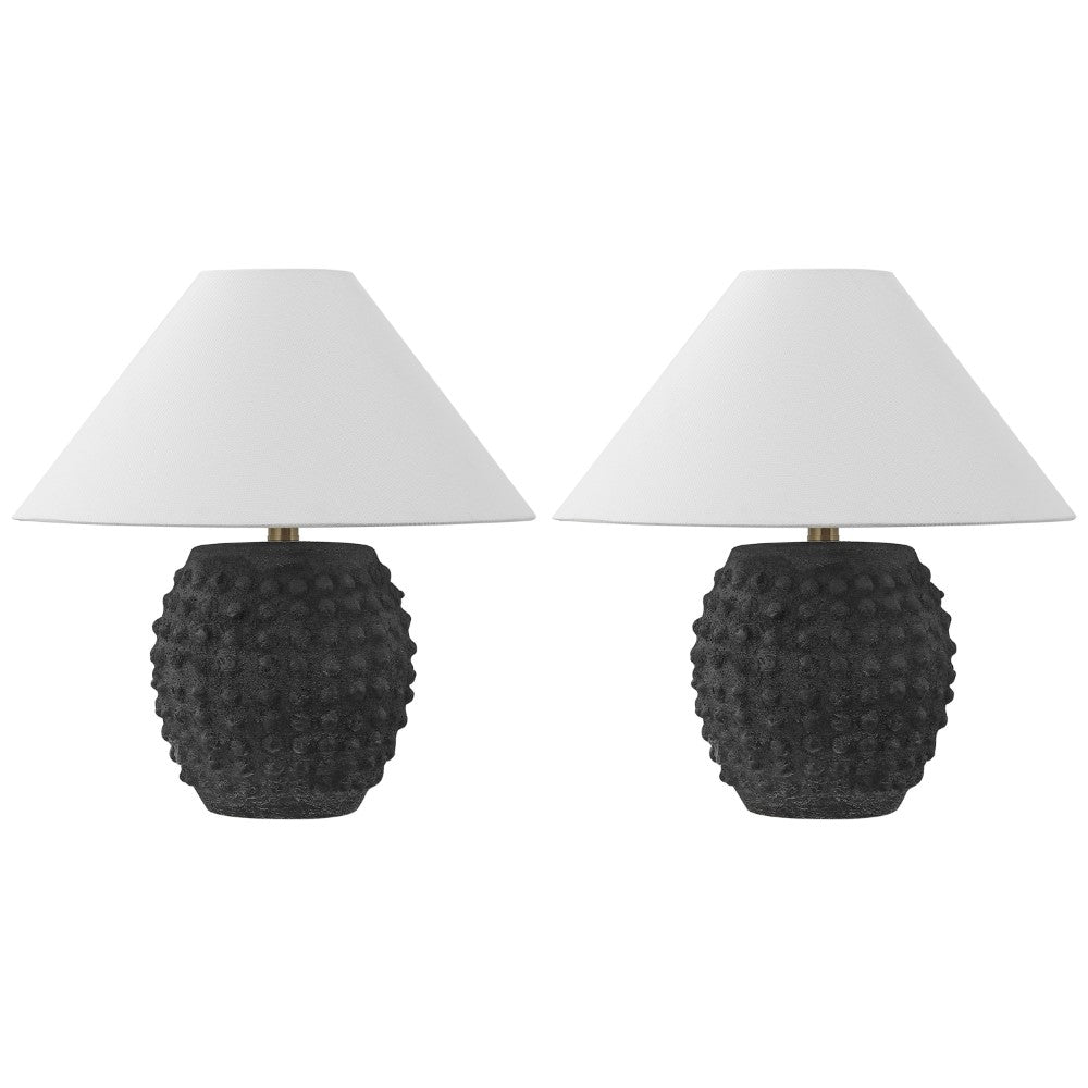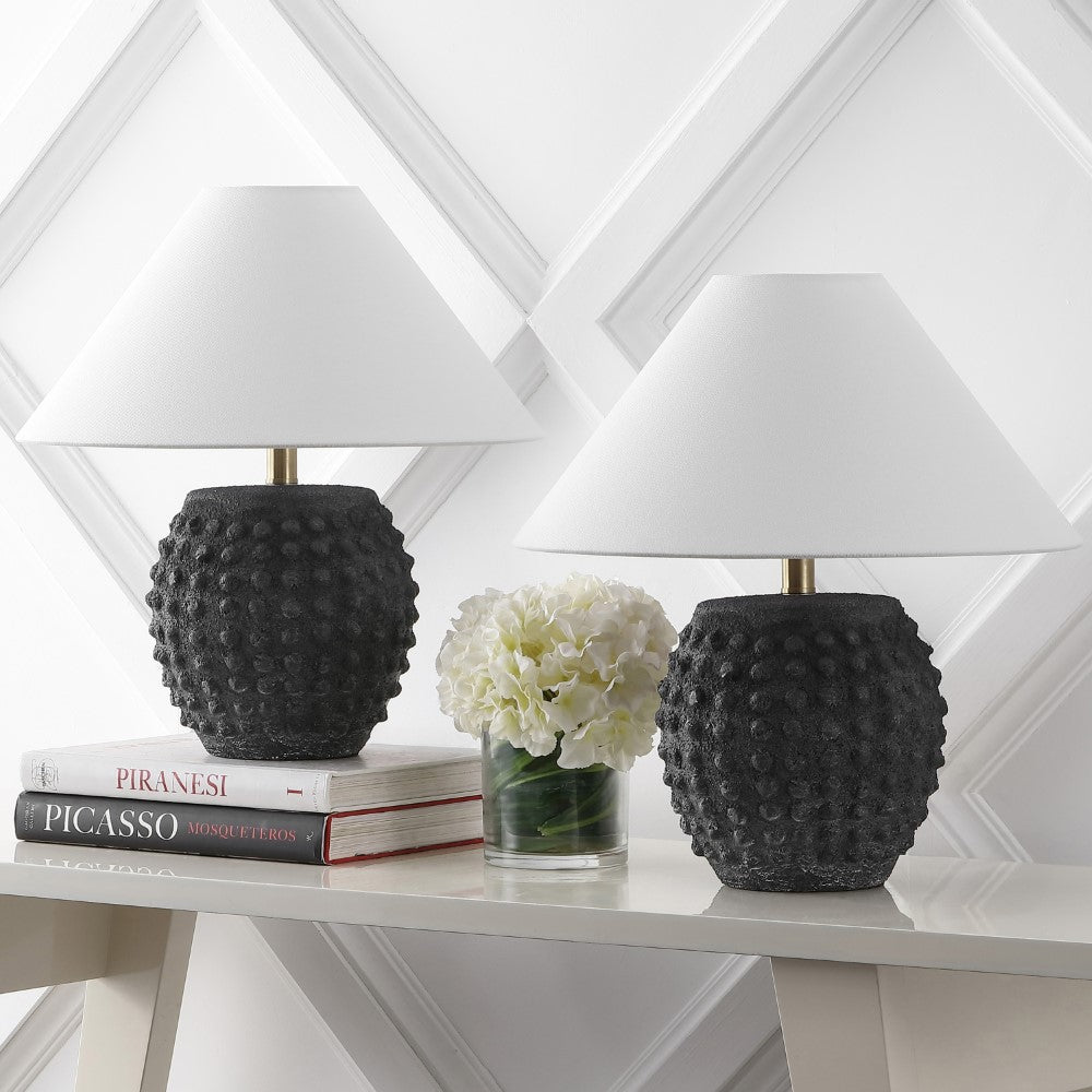 Willow 18.25" Minimalist Scandinavian Ceramic/Iron Hobnail LED Table Lamp Set 2