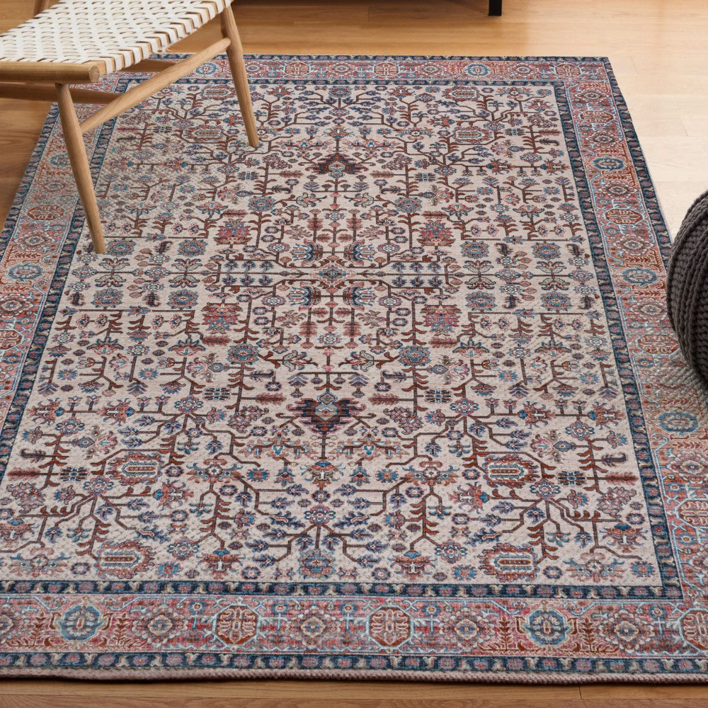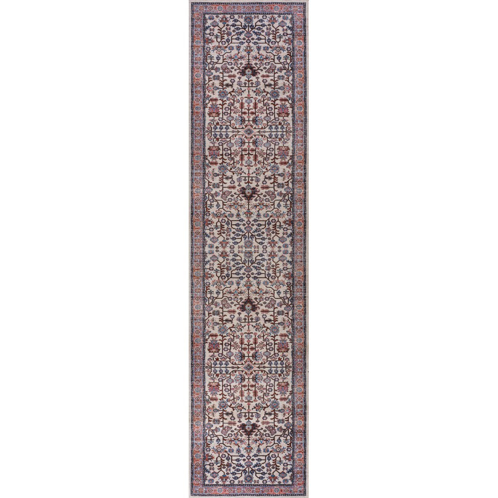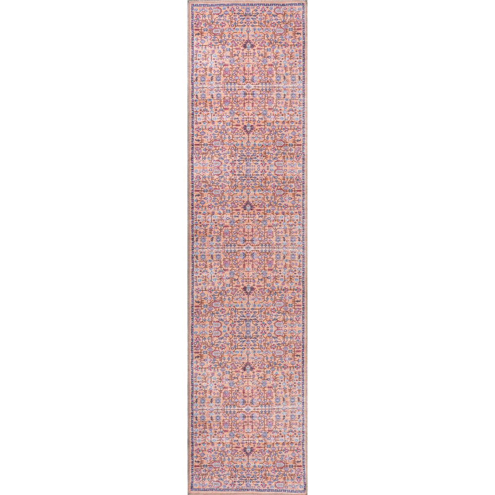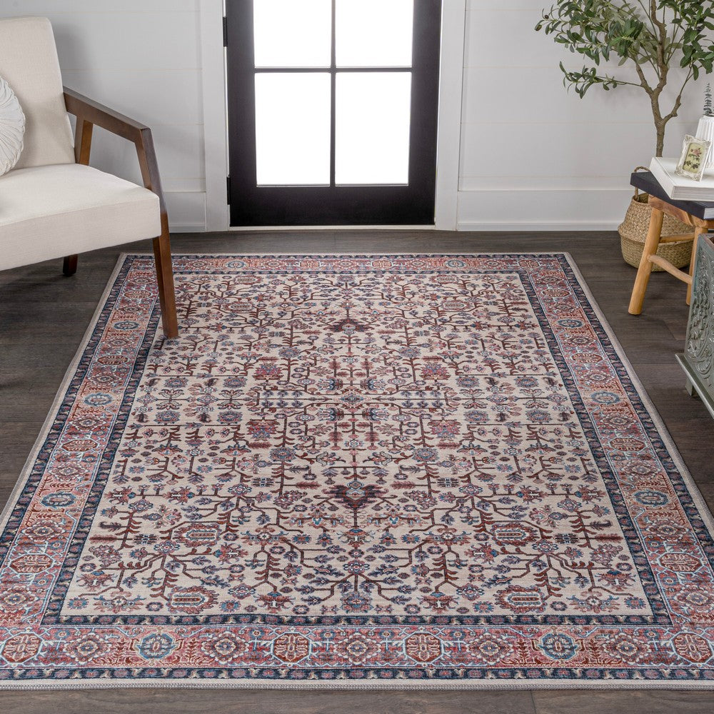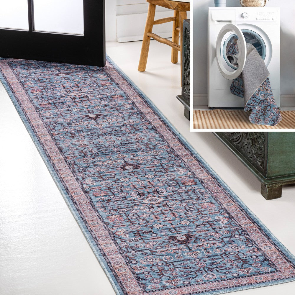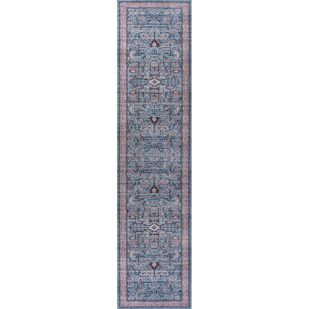 Stylized vines and flowers in the center of this rug's design recall ancient Persian rug designs. Updated colors add a modern Bohemian-inspired twist to a classic design. With its pet-friendly pattern, this easy-care rug would be perfect for a dining room, living room, entry, bedroom or porch.