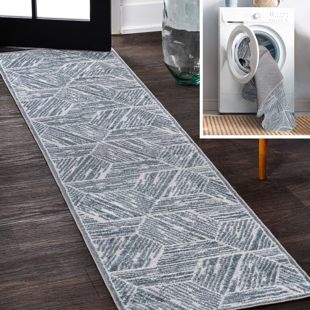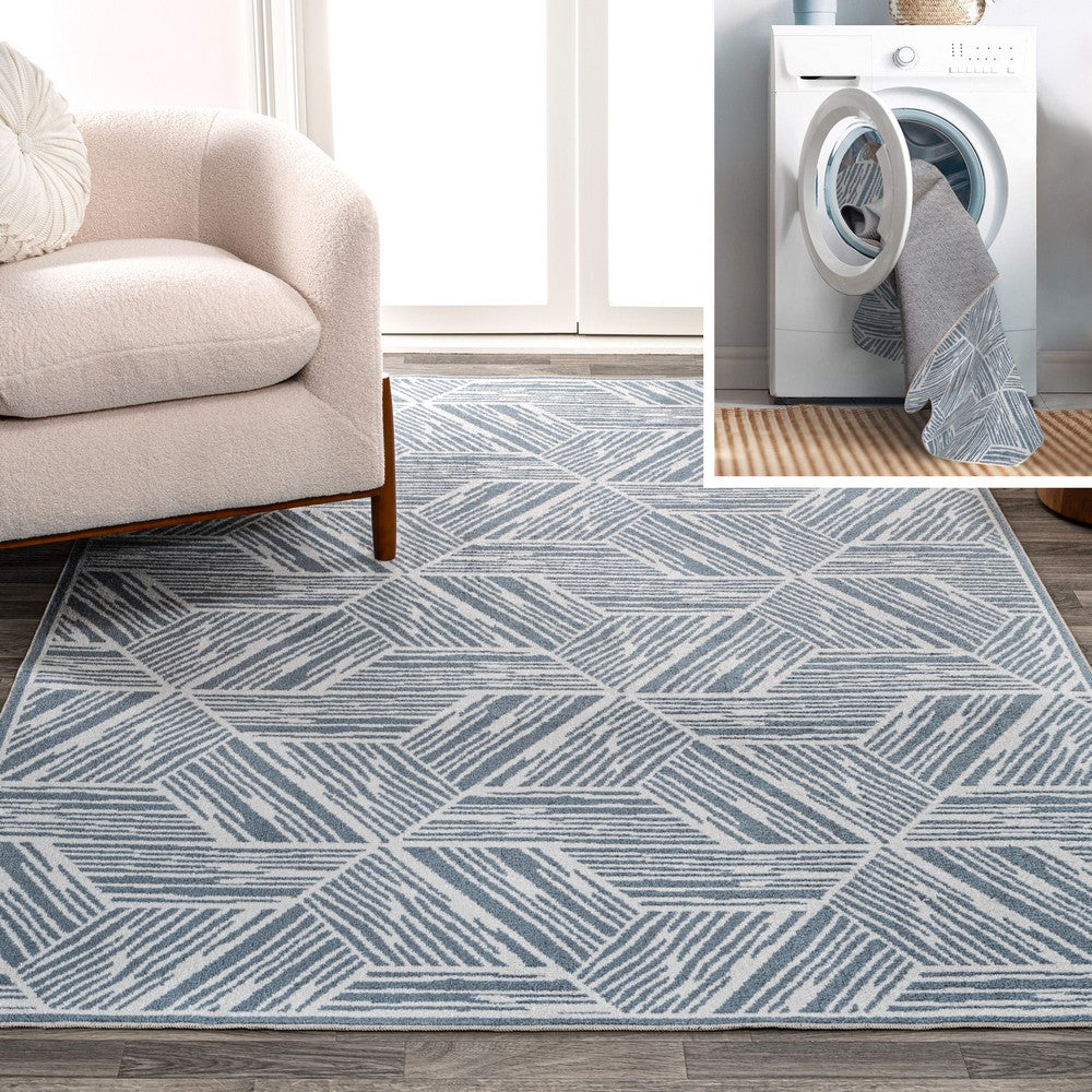 Nordic Modern Coastal Geometric Machine-Washable Area Rug