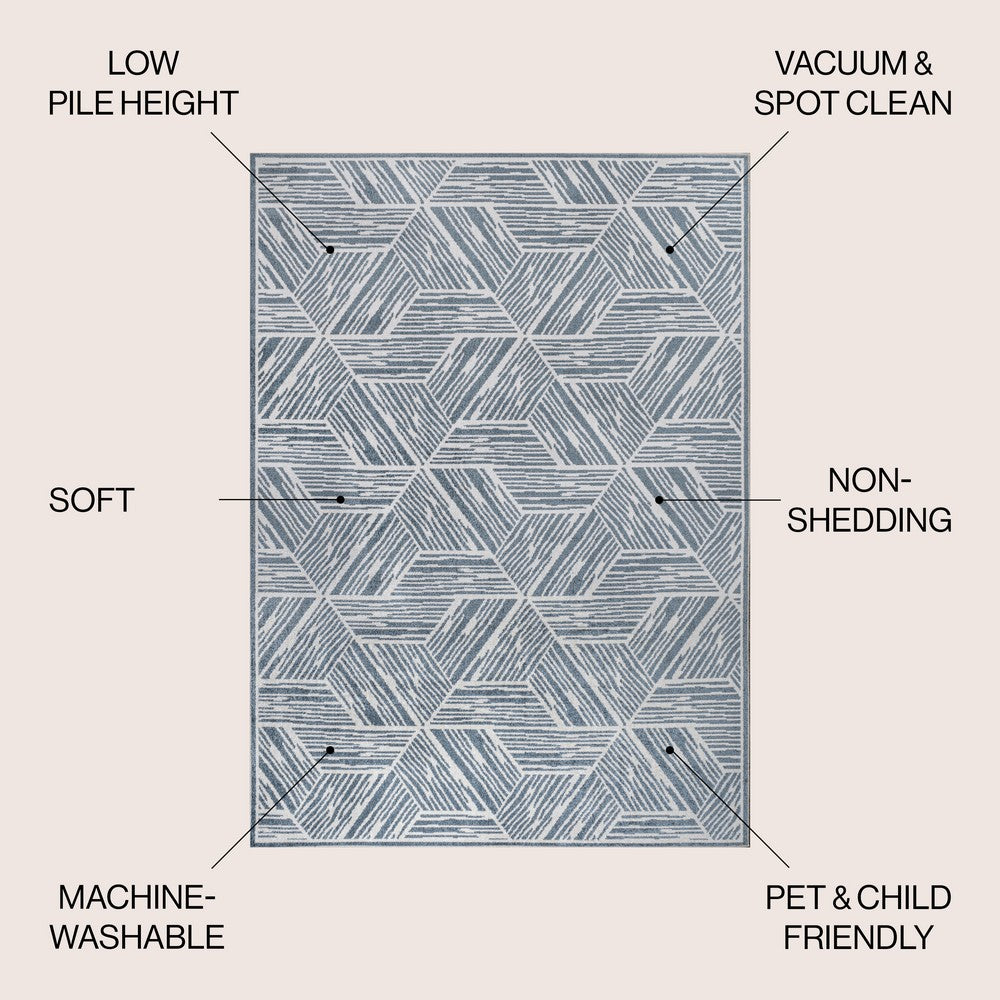 Add a touch of whimsy with our geometric two-toned rug. This playful rug is machine-washable and durable. This low-pile contemporary rug is a perfect easy-to-clean addition to any kid's or youthful space.