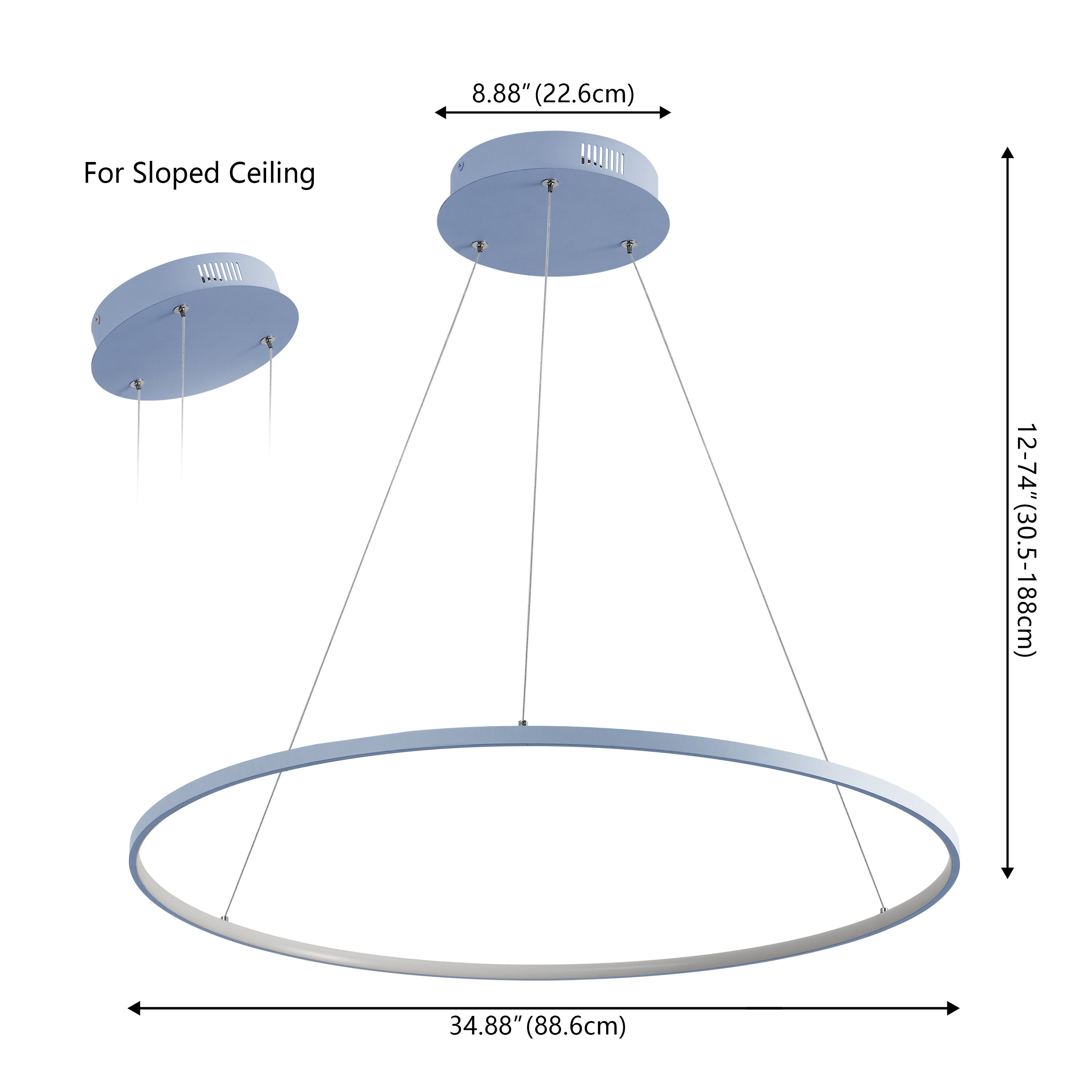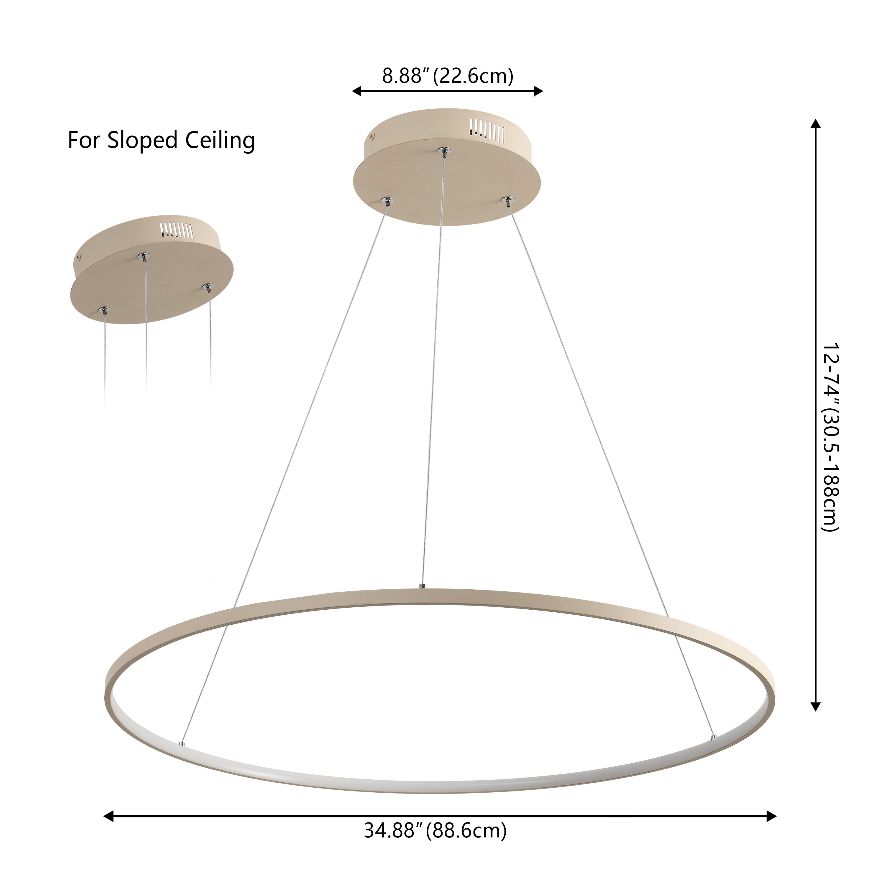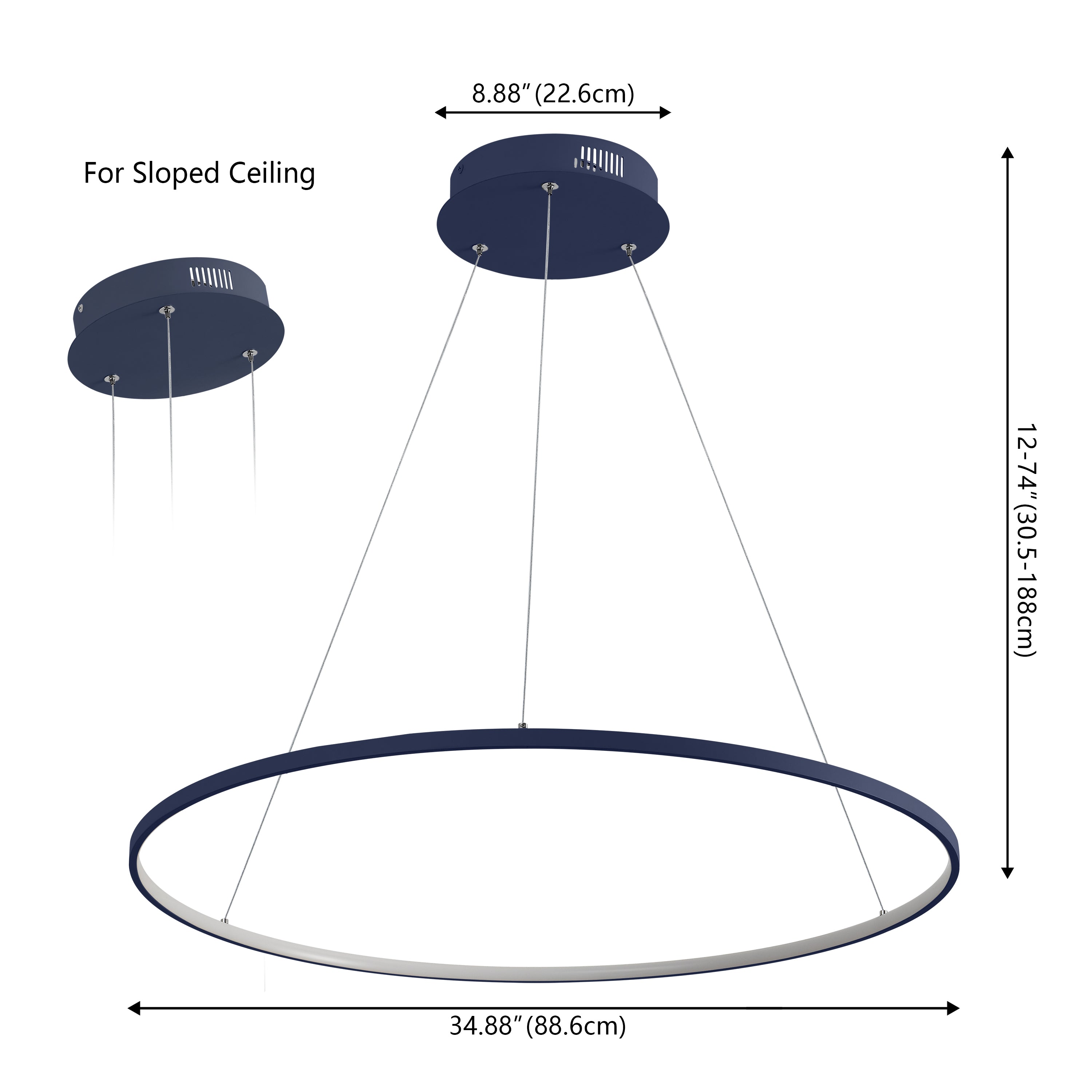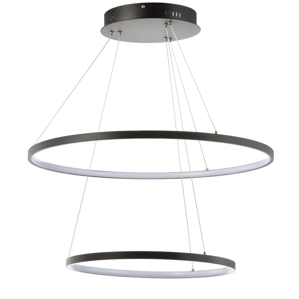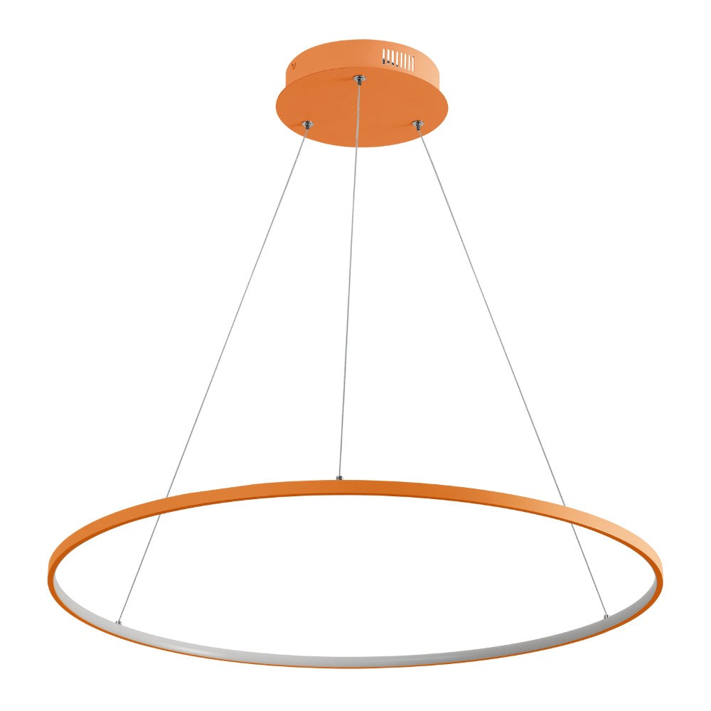 A single hoop with a matte black finish is suspended with three wires in this modern hoop pendant light. An integrated single-light LED lines its interior illuminating any space with a balance of brightness and warmth. Ideal for any modern setting, it will look right at home over a kitchen island or dining area.