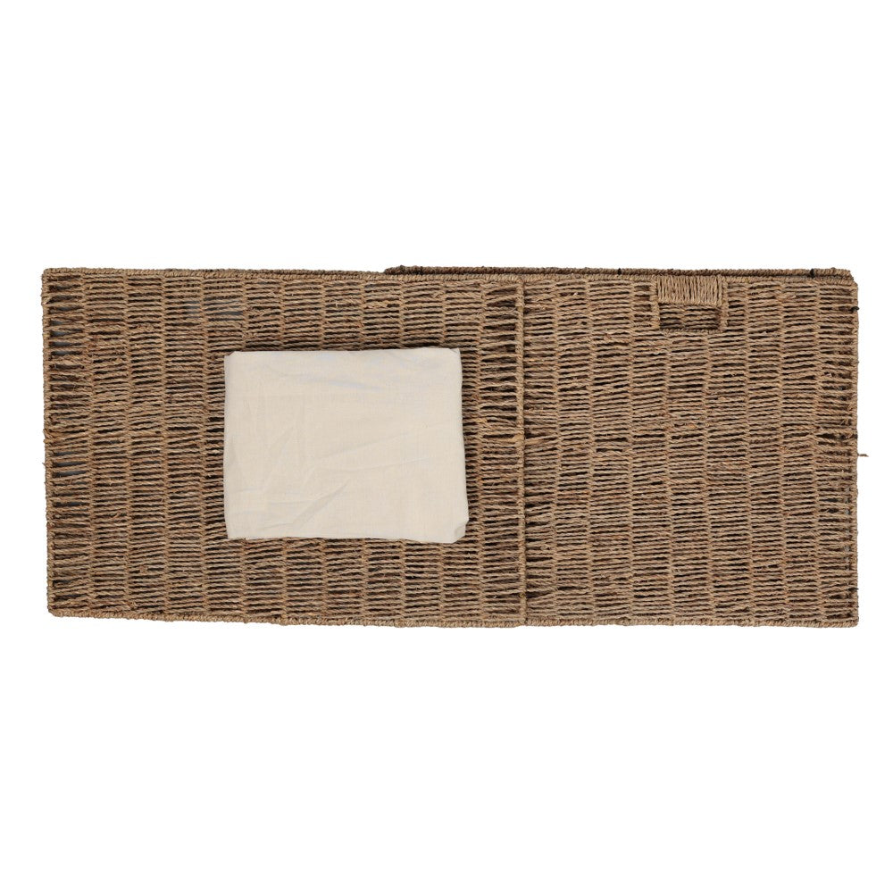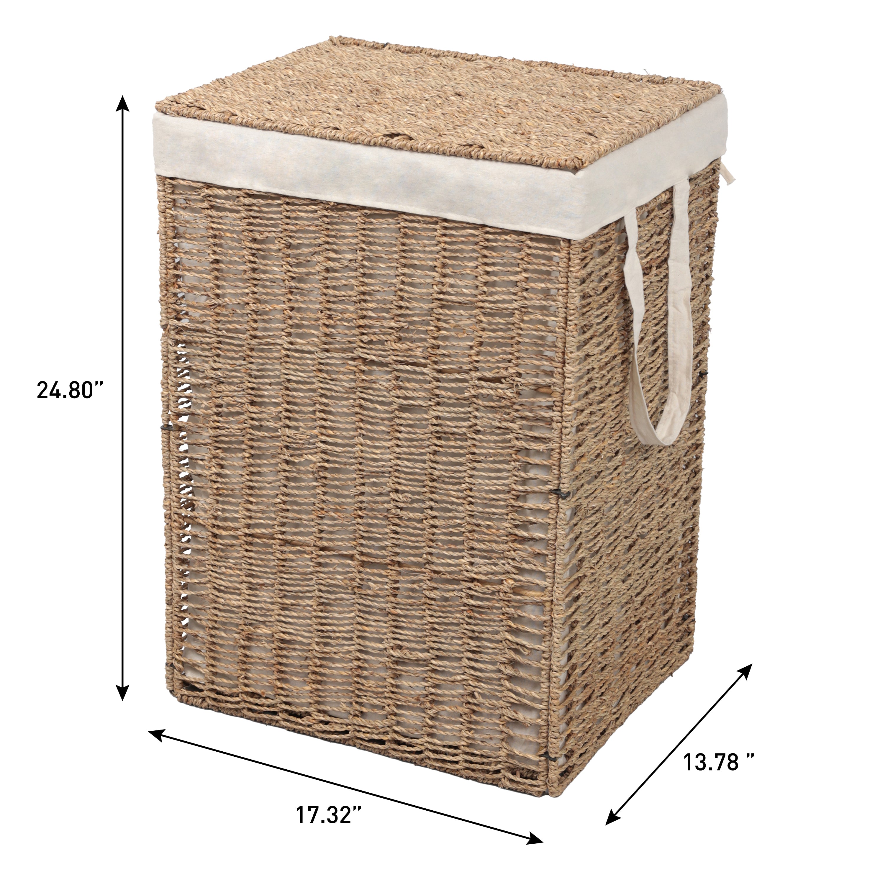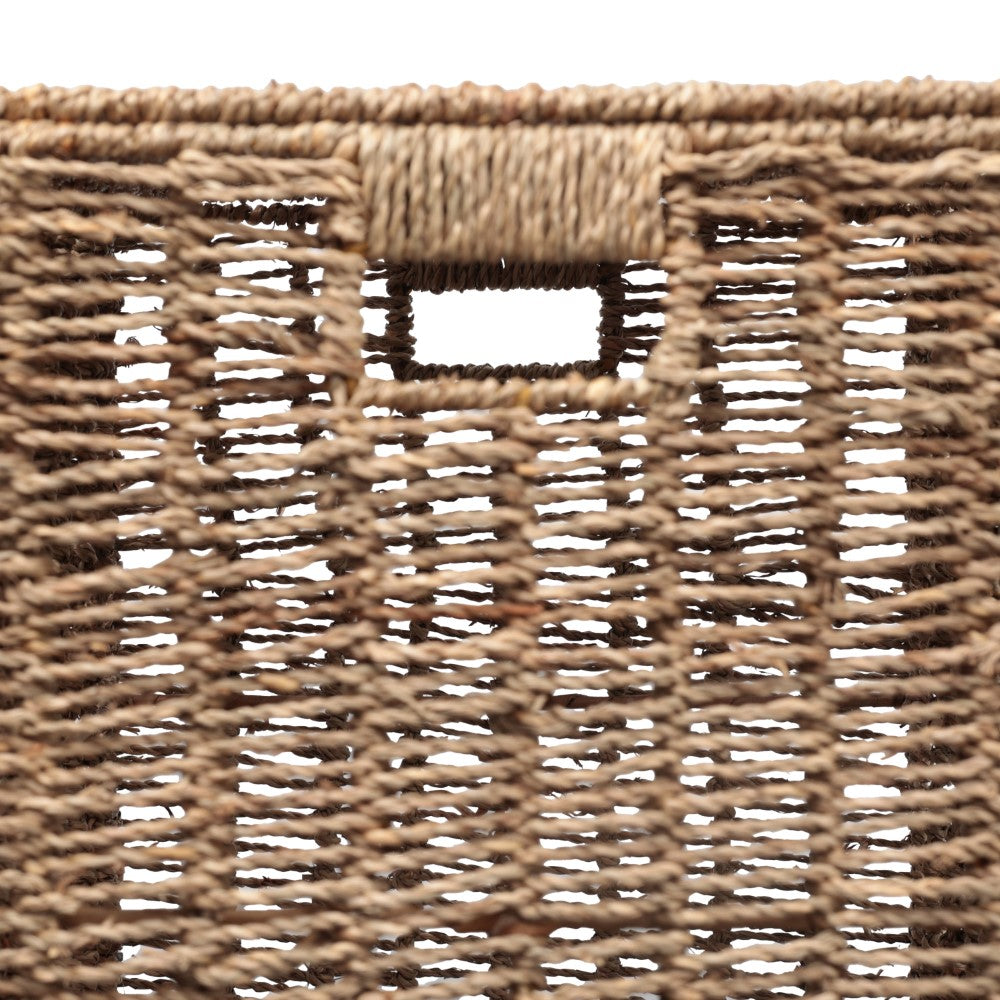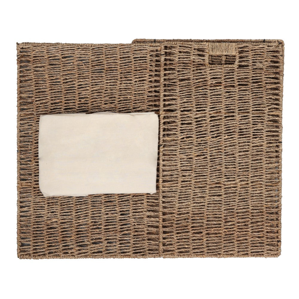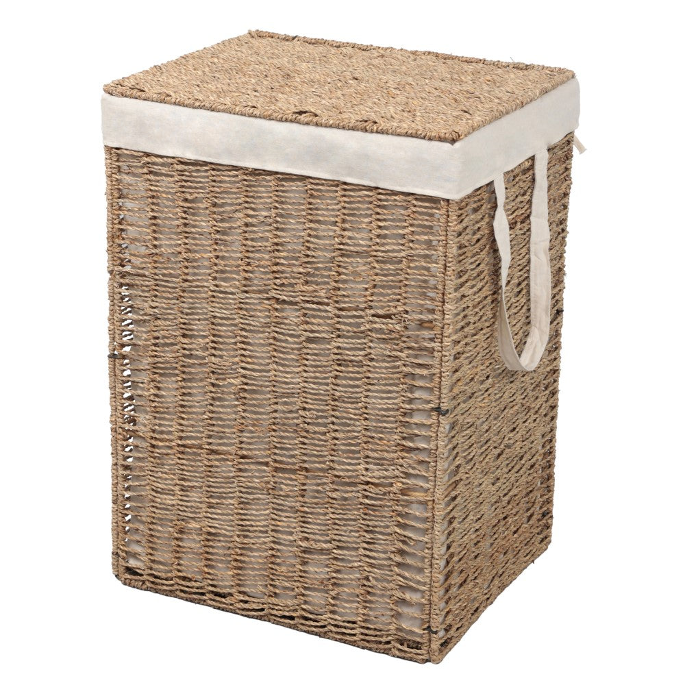 This seagrass hamper combines natural texture with functional storage to elevate laundry organization. The woven exterior creates an organic look, while the sturdy metal frame ensures lasting durability. Finished with convenient string handles, it makes carrying laundry effortless while enhancing the charm of rustic, coastal, and farmhouse interiors.