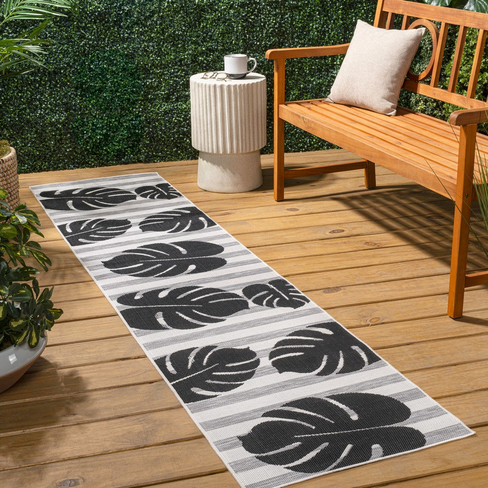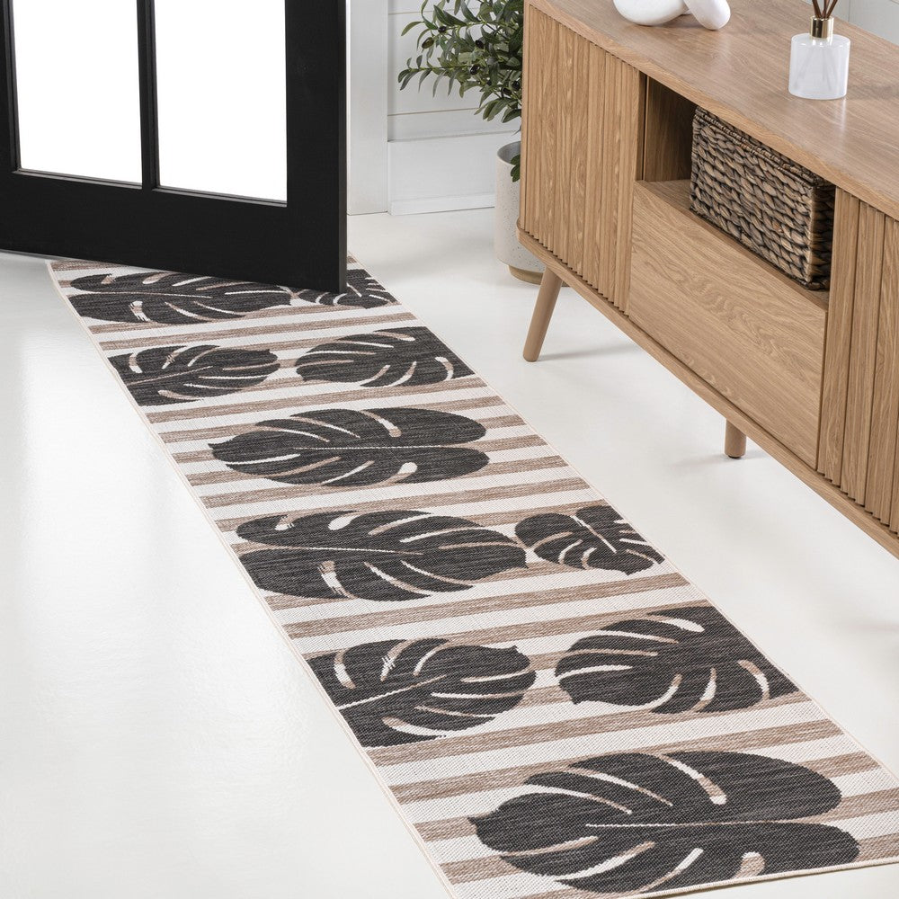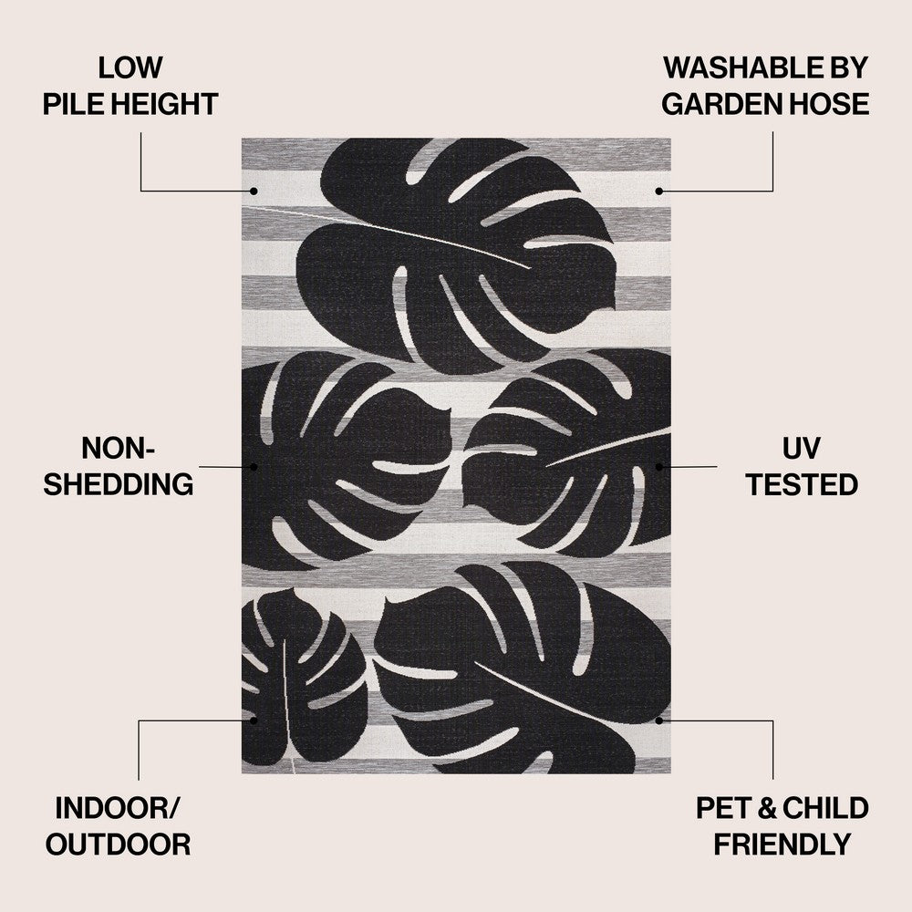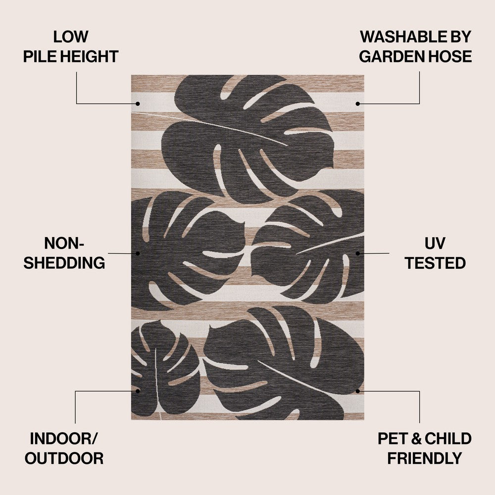 Mica Classic Beach Stripe And Monstera Leaf Indoor/Outdoor Area Rug