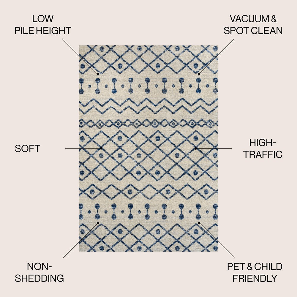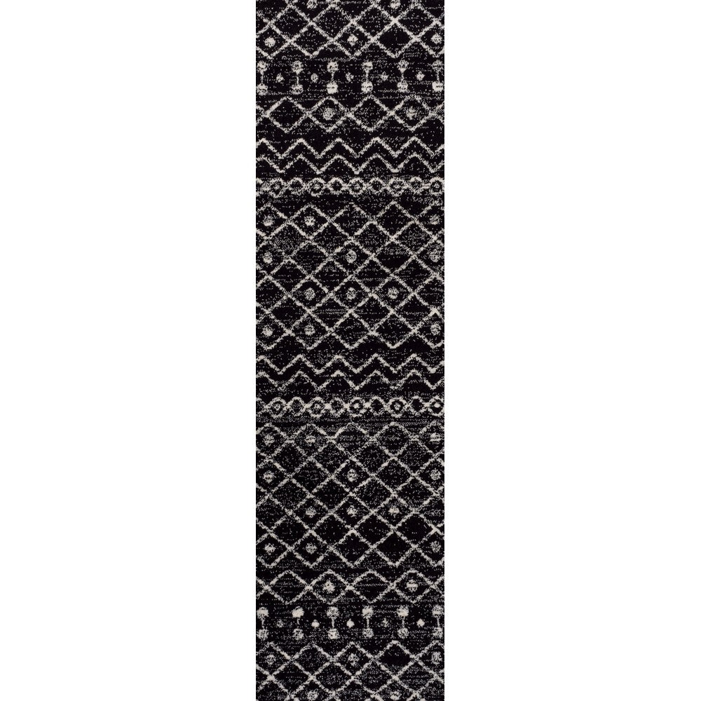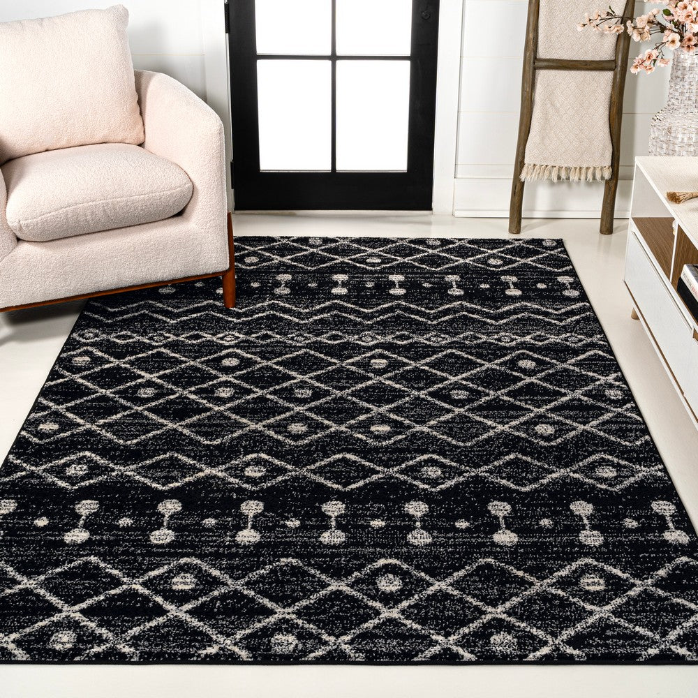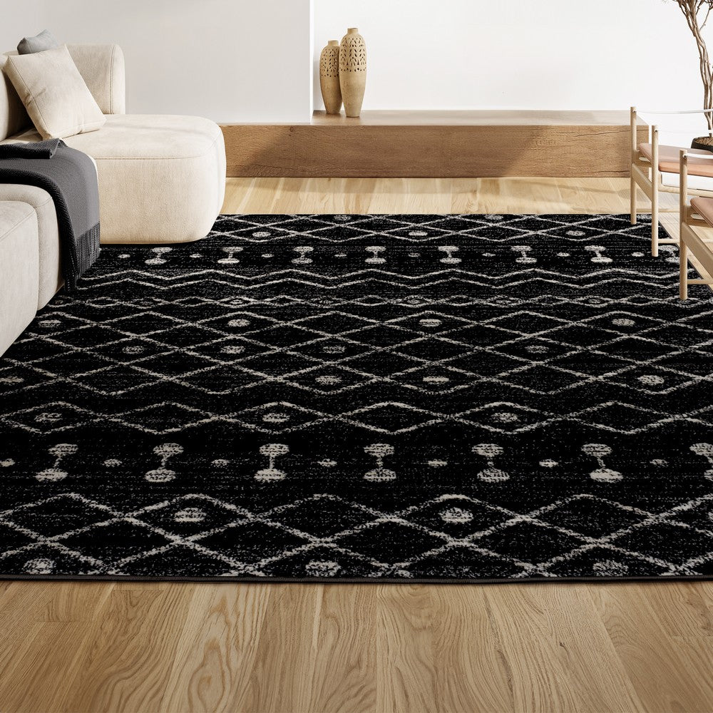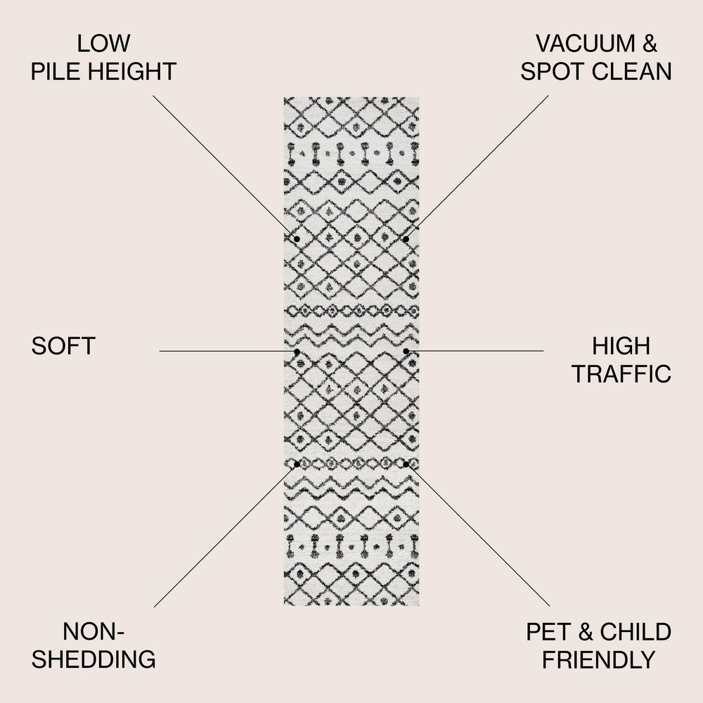 Inspired by vintage Moroccan tribal rugs, our modern version is power-loomed with a short pile. Berber diamond and circle symbols are woven in black on a field of ivory; the mingled threads recall traditional handwoven rugs. Add some Bohemian style to your home with this easy-care rug.
