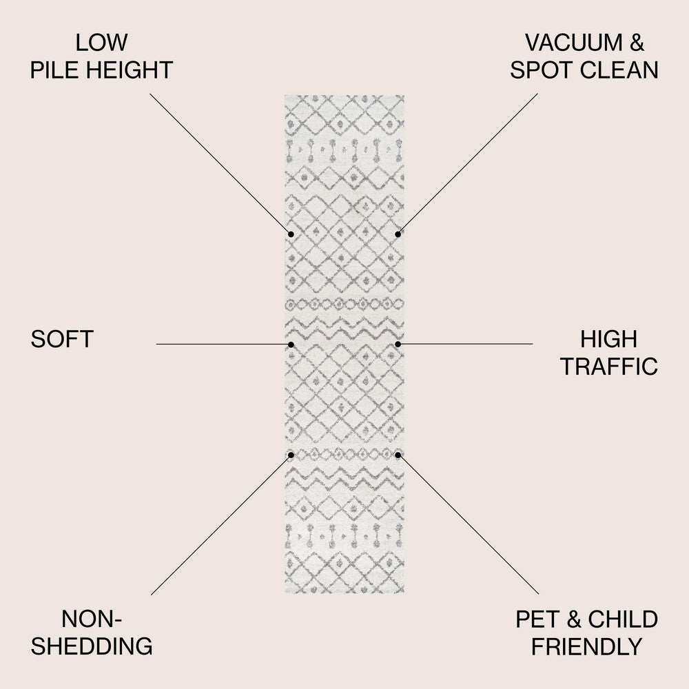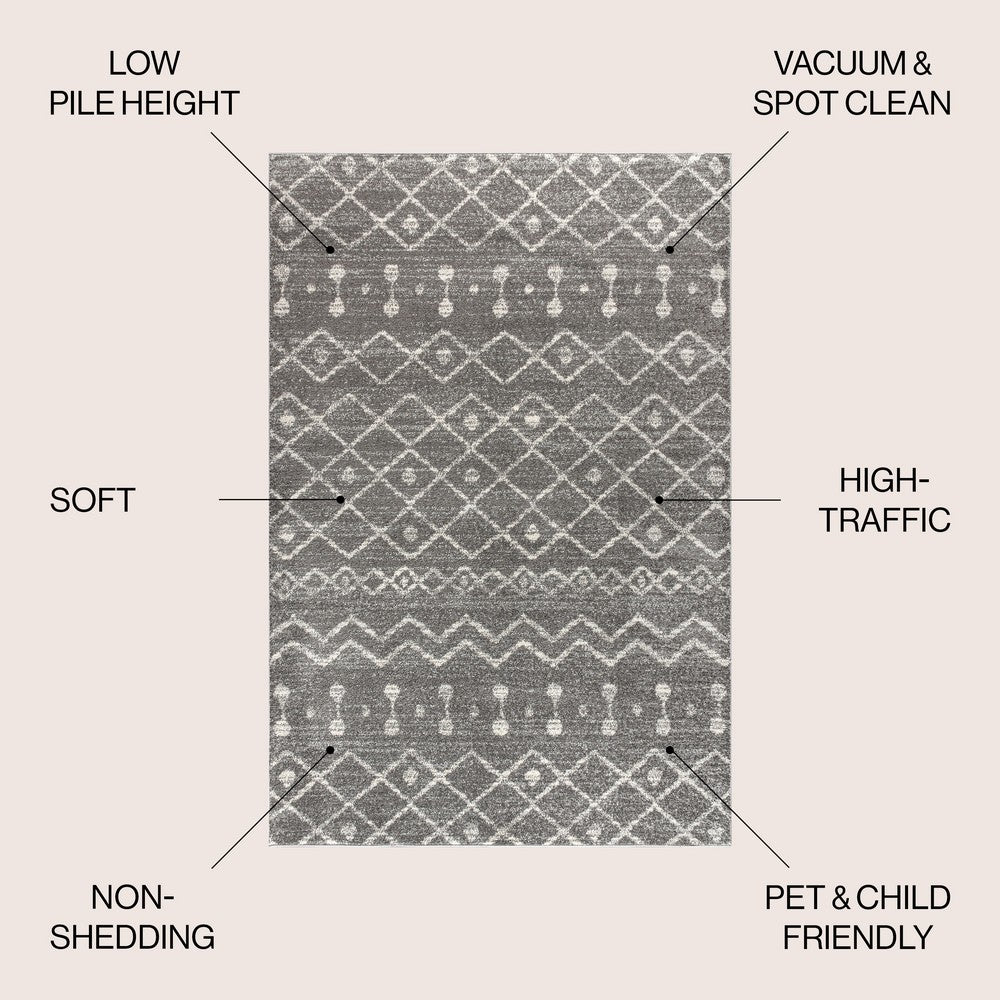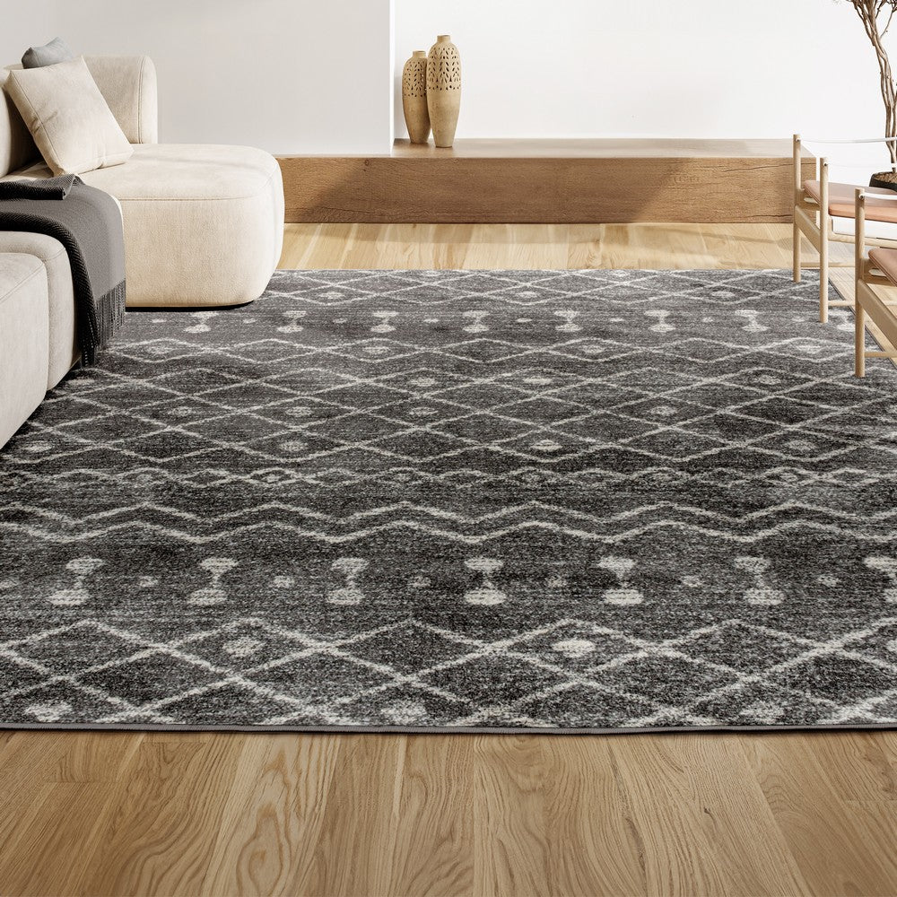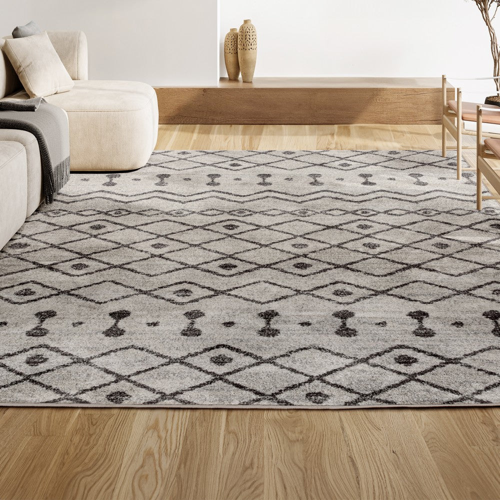 Inspired by vintage Moroccan tribal rugs, our modern version is power-loomed with a short pile. Berber diamond and circle symbols are woven in black on a field of ivory; the mingled threads recall traditional handwoven rugs. Add some Bohemian style to your home with this easy-care rug.