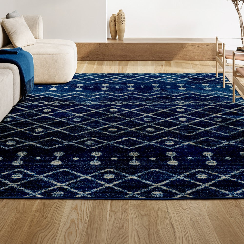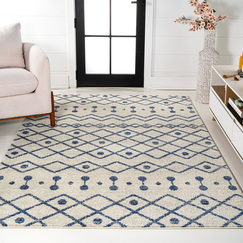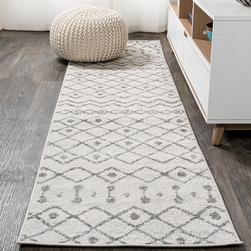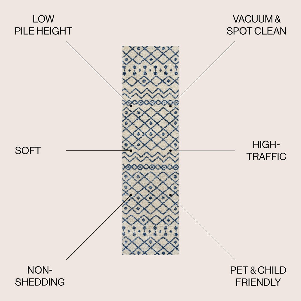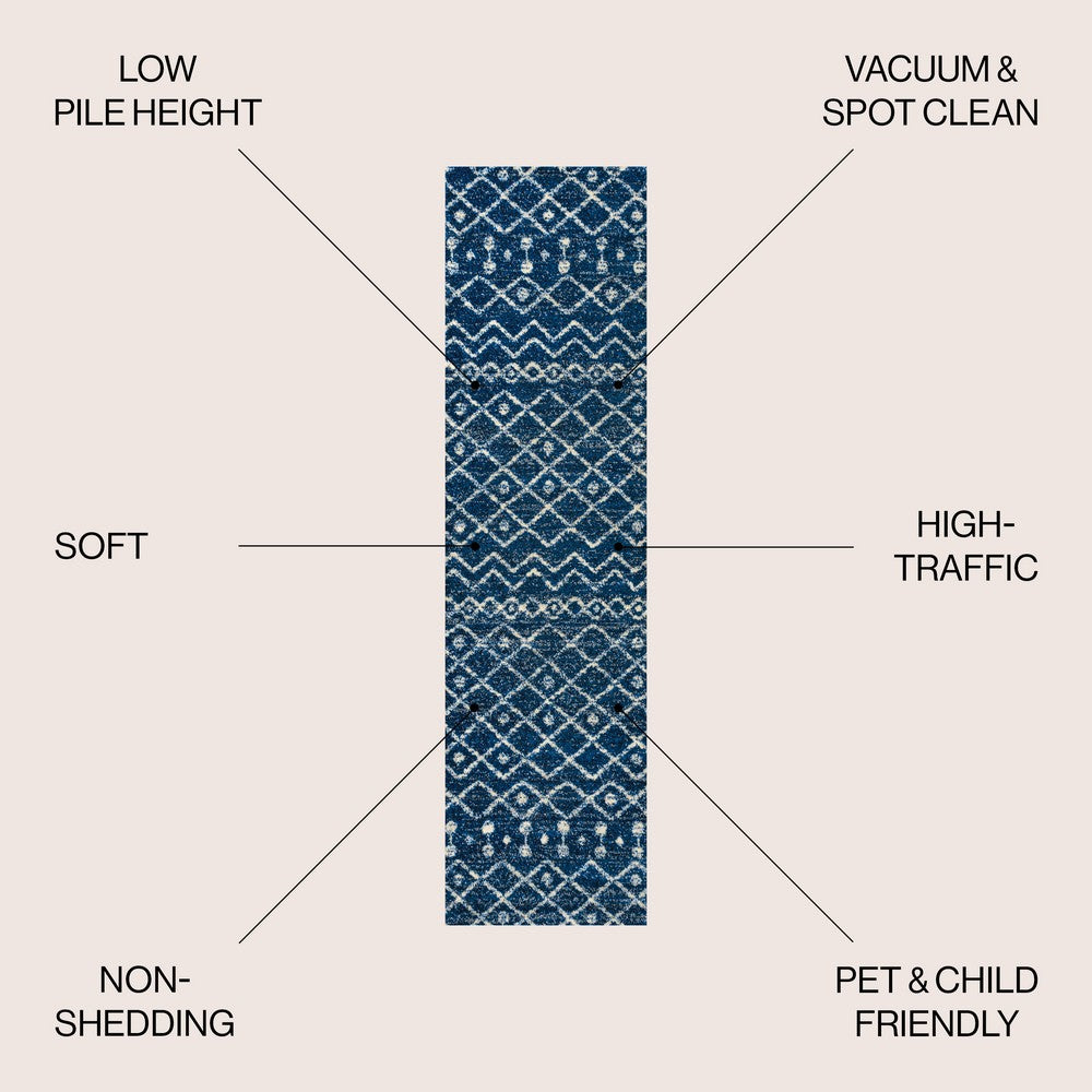 Inspired by vintage Moroccan tribal rugs, our modern version is power-loomed with a short pile. Berber diamond and circle symbols are woven in black on a field of ivory; the mingled threads recall traditional handwoven rugs. Add some Bohemian style to your home with this easy-care rug.