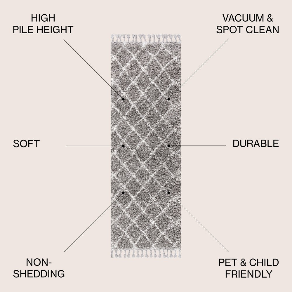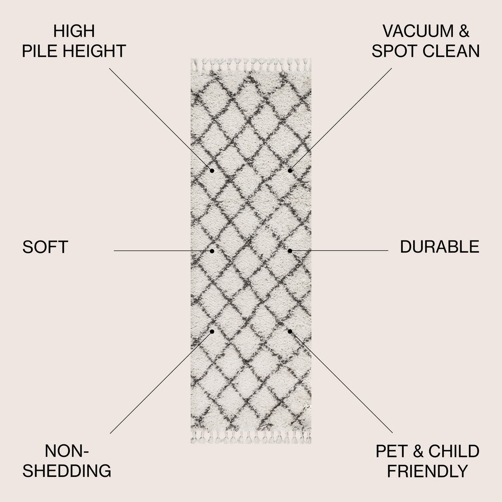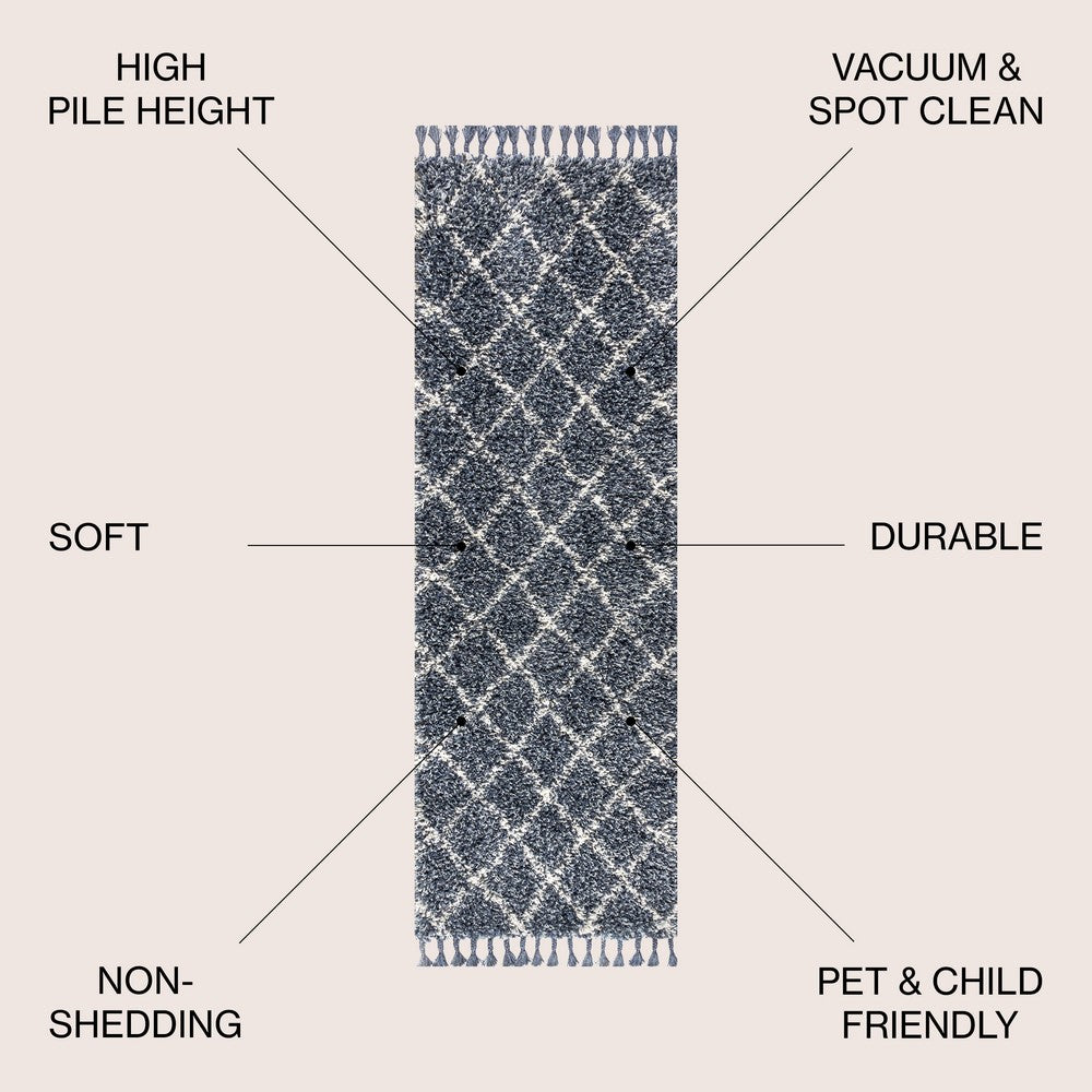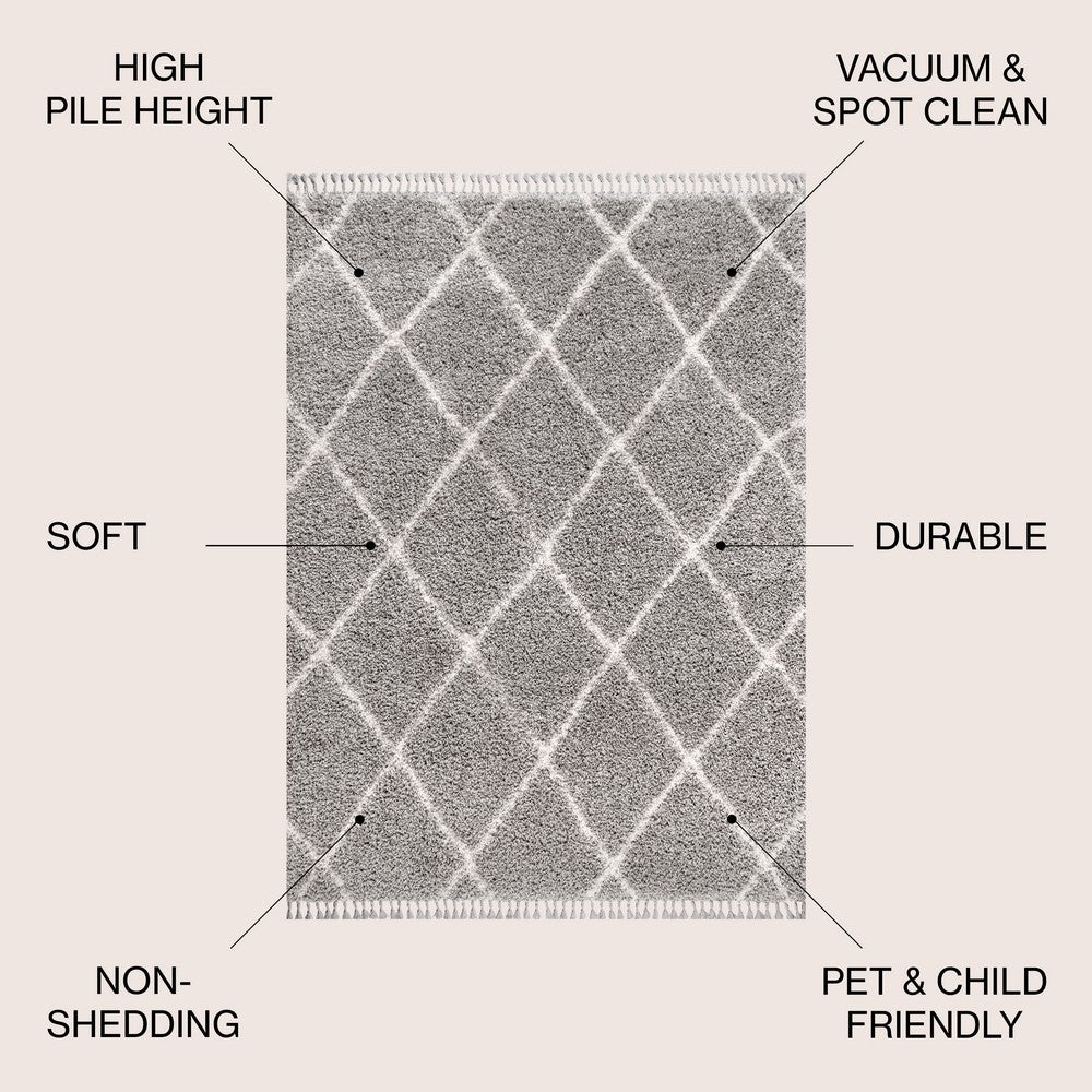 Crisp lines get added warmth when constructed in a polypropylene shag, as in this Moroccan-style floor covering. A trellis of diamonds is the most modern of classic souk style and looks great whether your style is more midcentury modern or contemporary. For a boho chic look, pair with colorful upholstery, or keep it monochromatic for a style that's more refined.