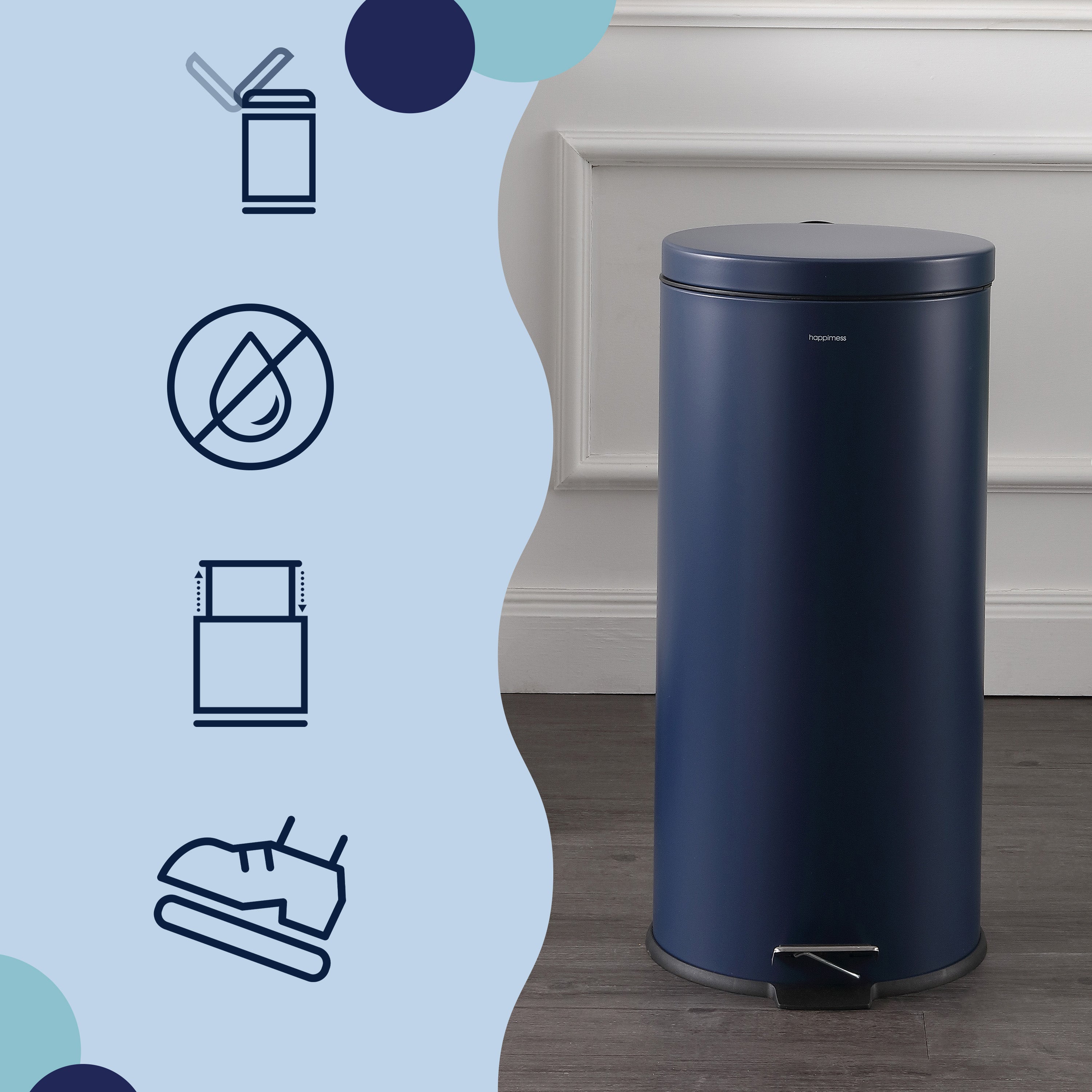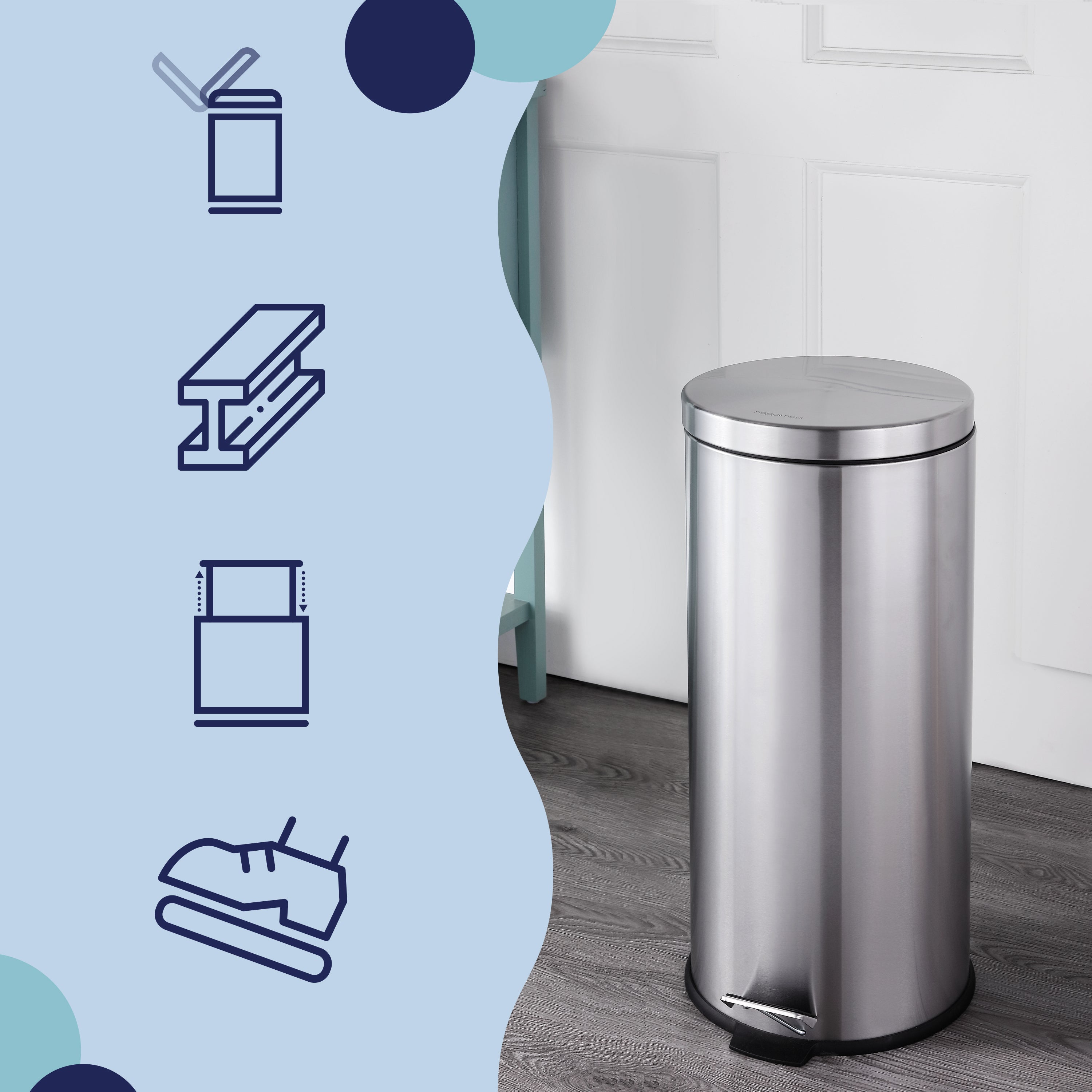 Our round 8-gallon trash cans are an excellent addition to any home or office that features a profile hinge that allows it to sit close to a wall or cabinet. As good as it looks, it's just as functional -- the step-on mechanism allows for a smooth opening and the removable inner bin makes changing bags a cinch. Compatible with most kitchen-sized trash bags.
