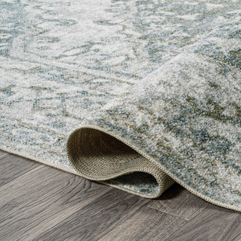 Lotus Distressed Medallion Low-Pile Machine-Washable Area Rug