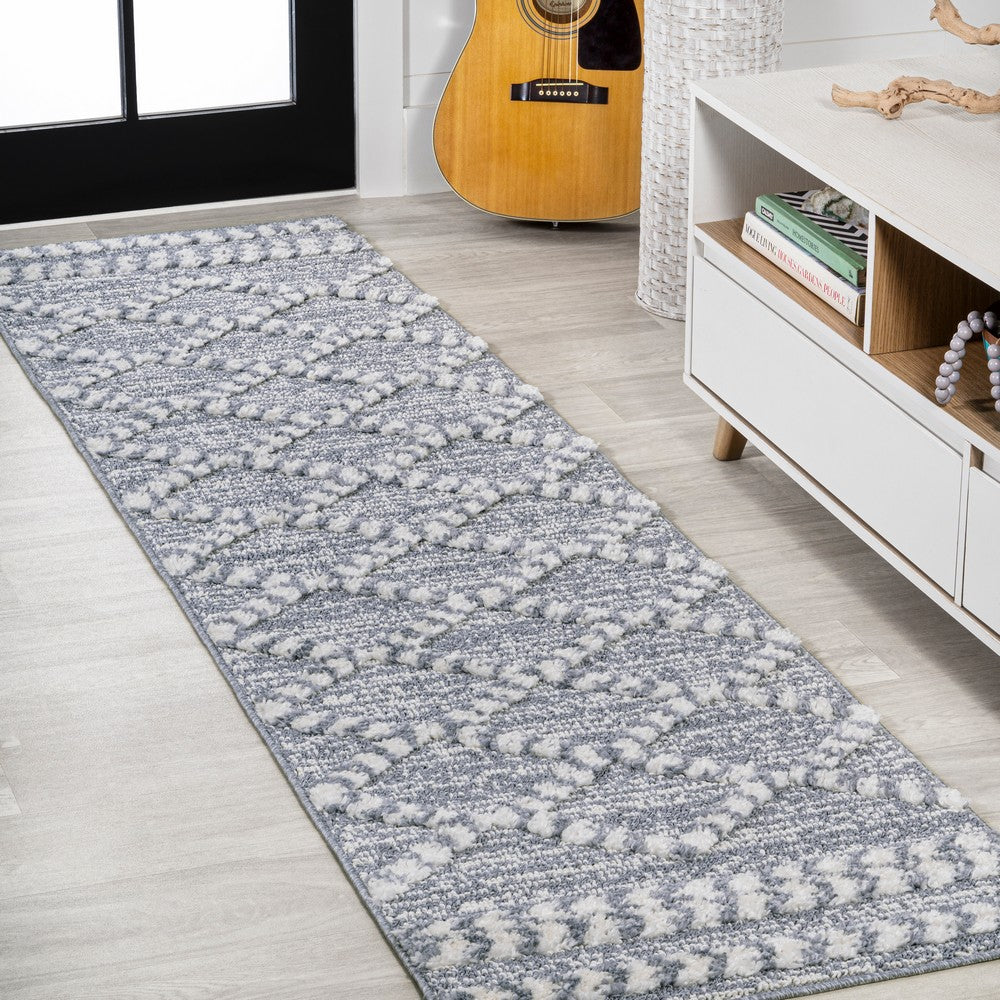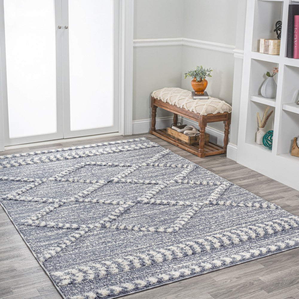 Mingled threads form diamond trellis on this modern version of a Moroccan rug design. The geometric pattern is practical for busy families, and adds texture to the living room, bedroom or home office. This versatile rug fits in anywhere, from a modern, minimalist interior to a Boho loft or coastal cottage.