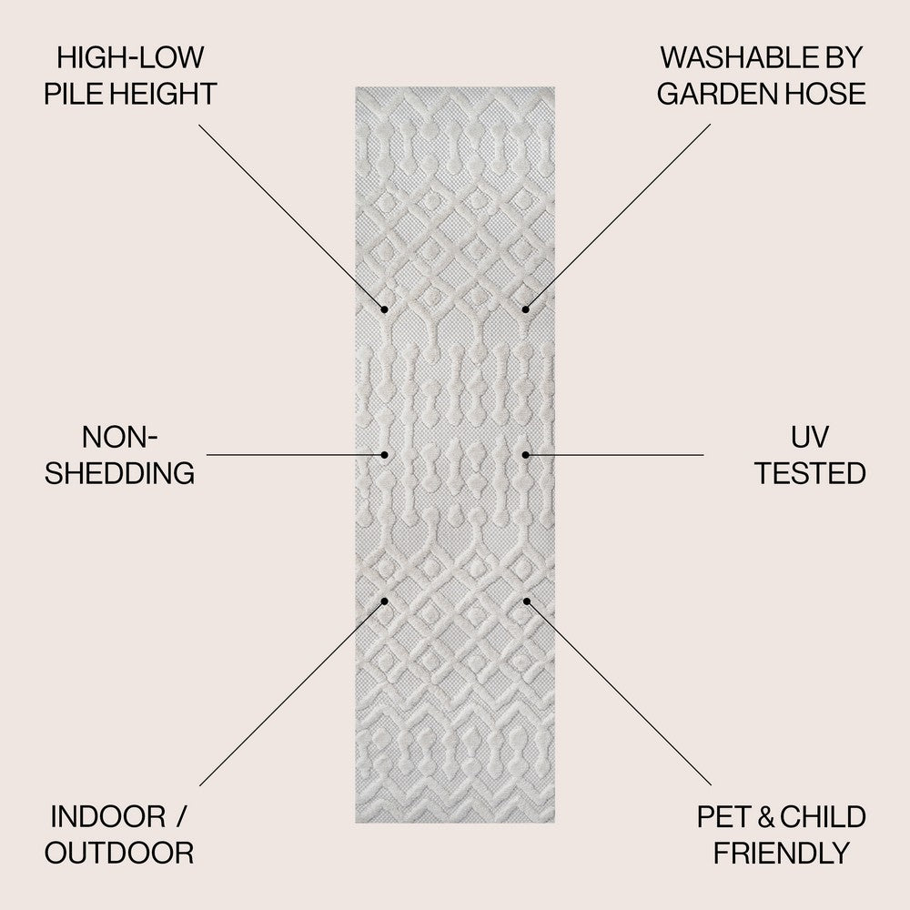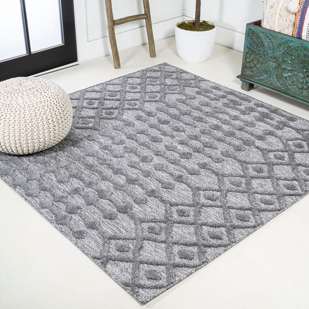 Inspired by vintage Moroccan rugs, our indoor/outdoor rug adds geometric pattern to your porch, patio or sunroom. The classic diamond and dot pattern has a modern twist, woven in shades of gray. Mingled threads give this rug a vintage vibe that's perfect for an entry, kitchen, hallway, living room or bedroom too. The pet-friendly and kid-proof low pile design makes it easy to clean, and perfect for the beach house.
