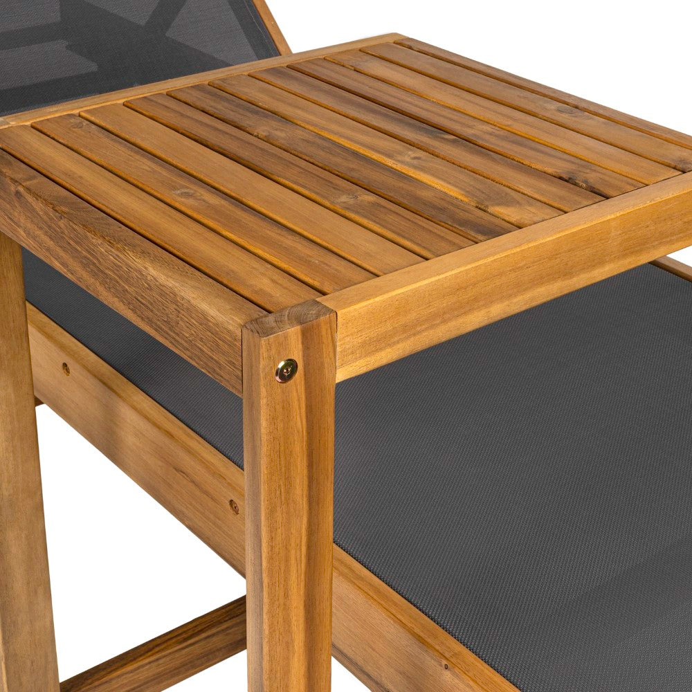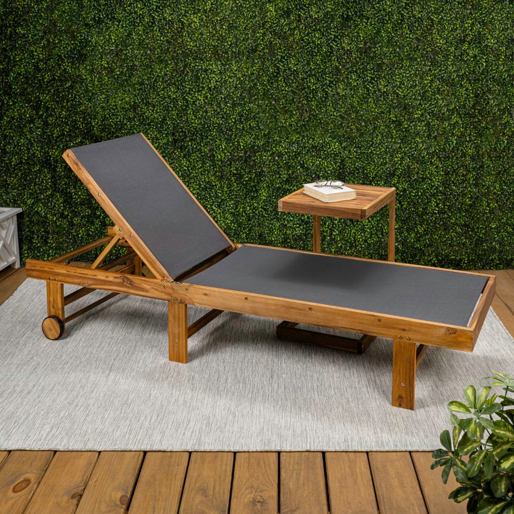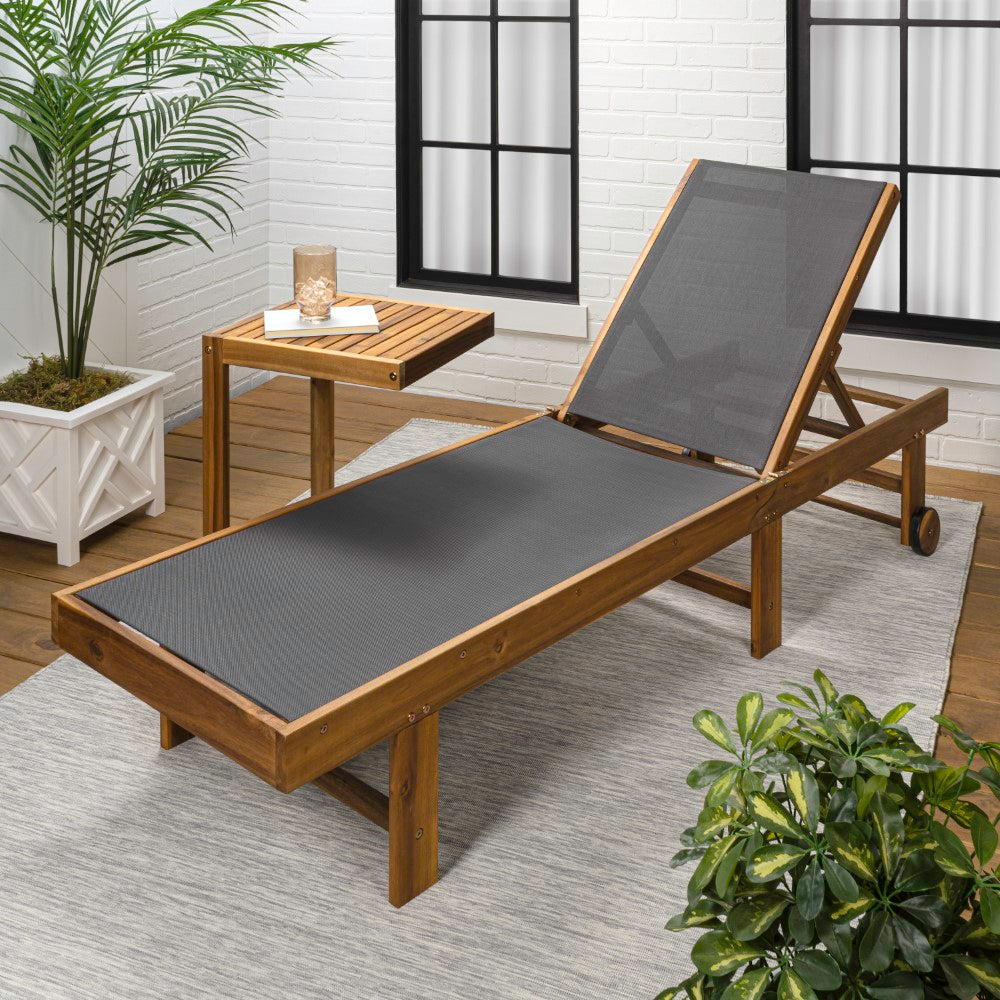Briarwind Coastal Modern Acacia Wood Mesh 3-Position Outdoor foldable Chaise Lounge Set with Side Table