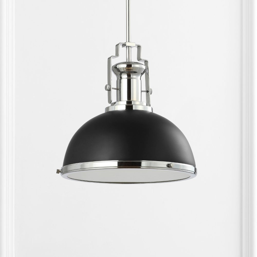 With its vintage detailing and classic good looks, this large kitchen pendant light adds an upscale touch to any traditional interior. The brass-gold finish is combined with a black metal hood for a crisp style contrast. The single LED bulb provides plenty of bright light, softened by a diffuser panel.