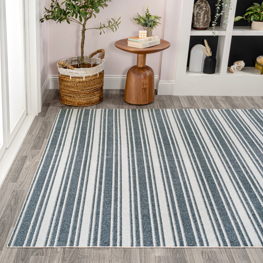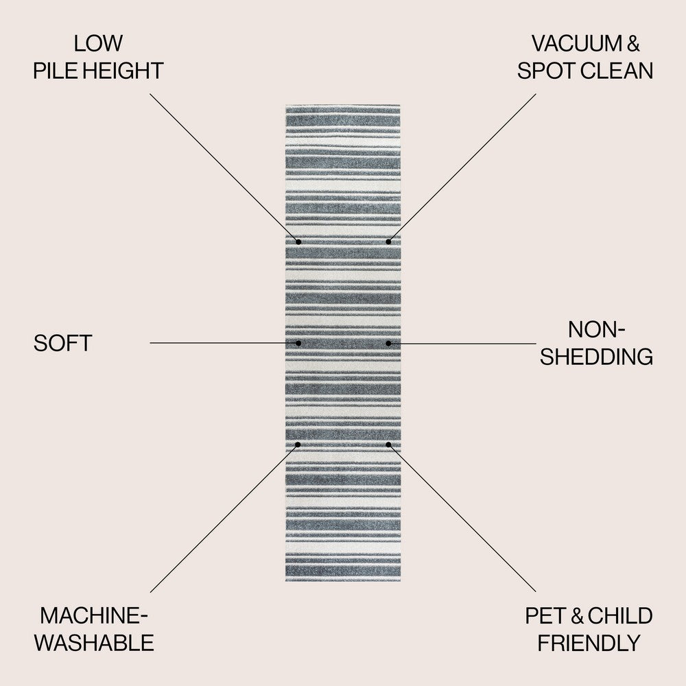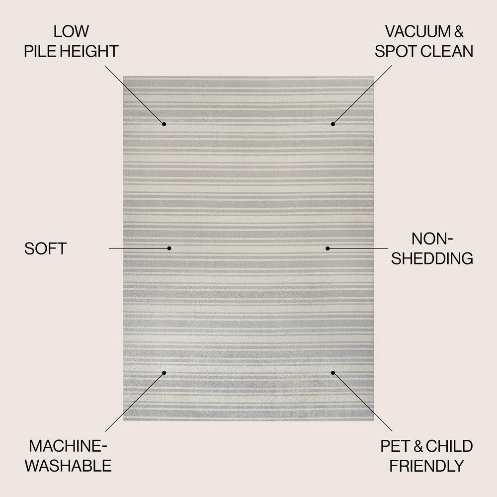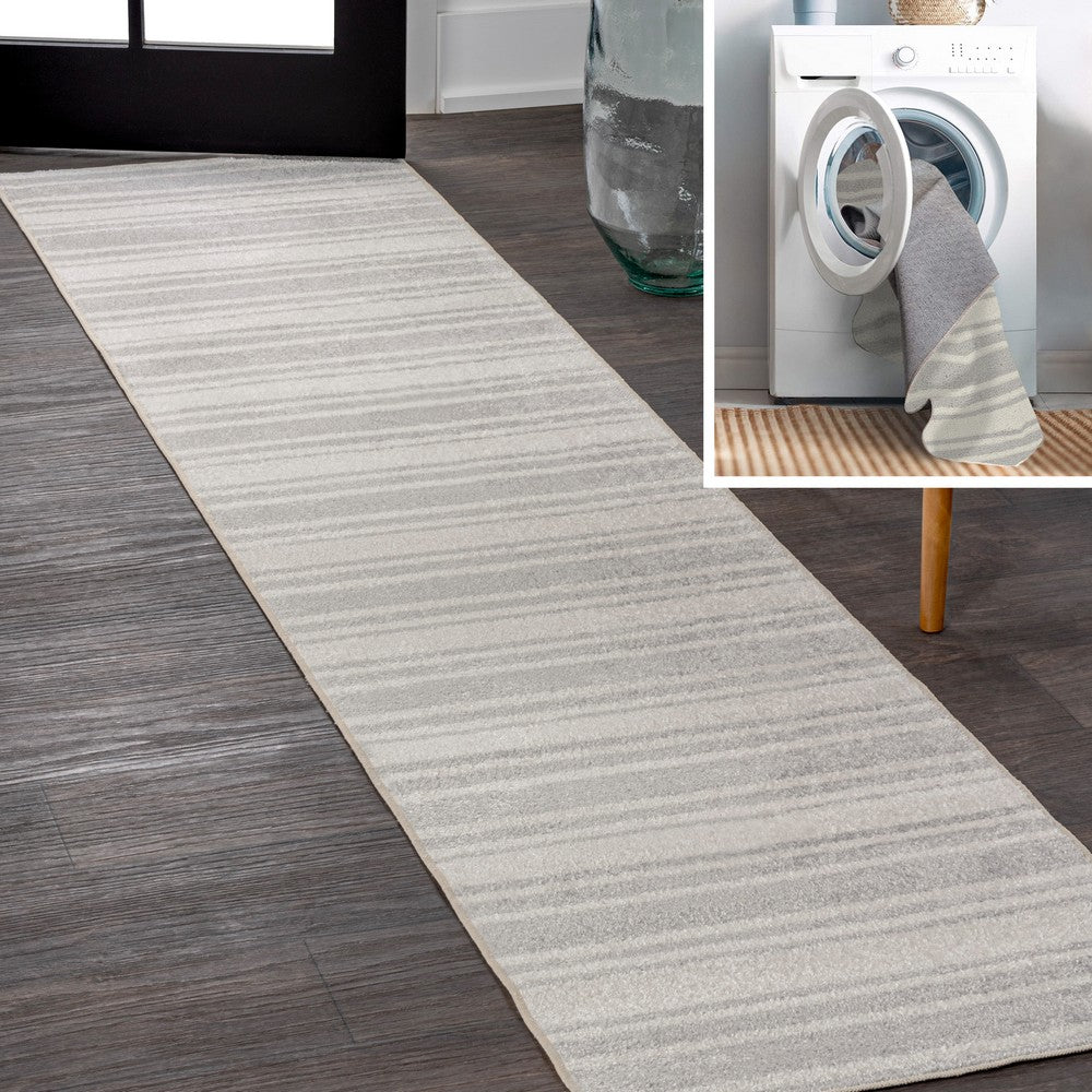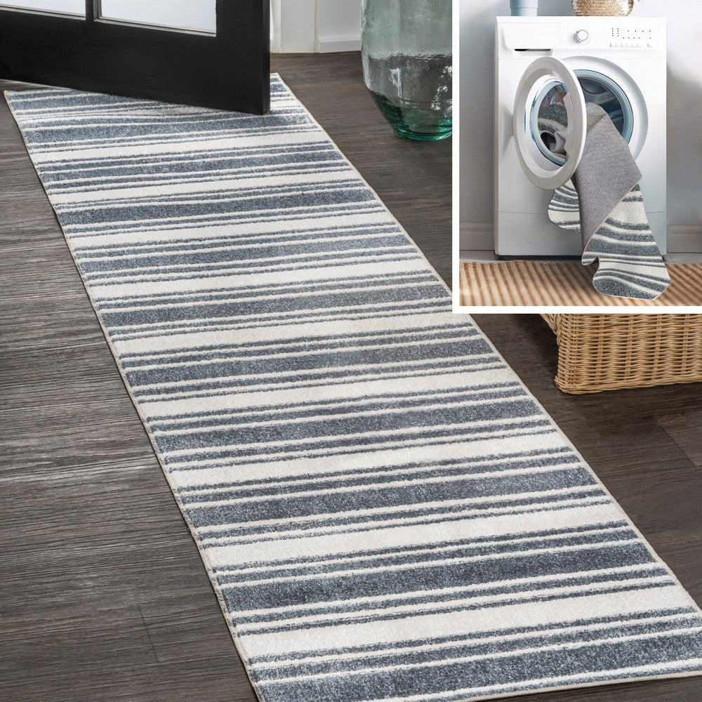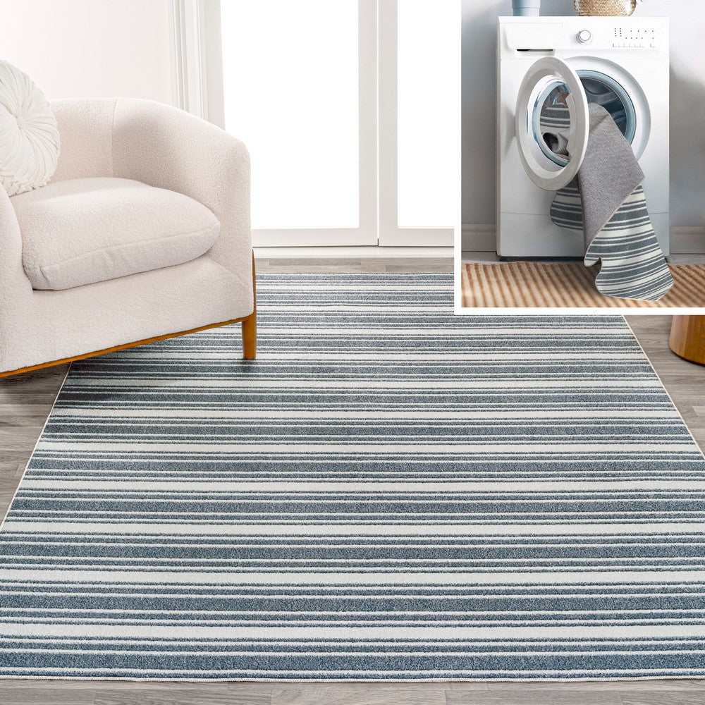 Carolina Two-Tone Striped Classic Low-Pile Machine-Washable Area Rug
