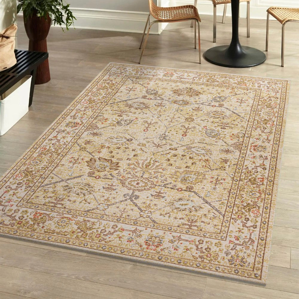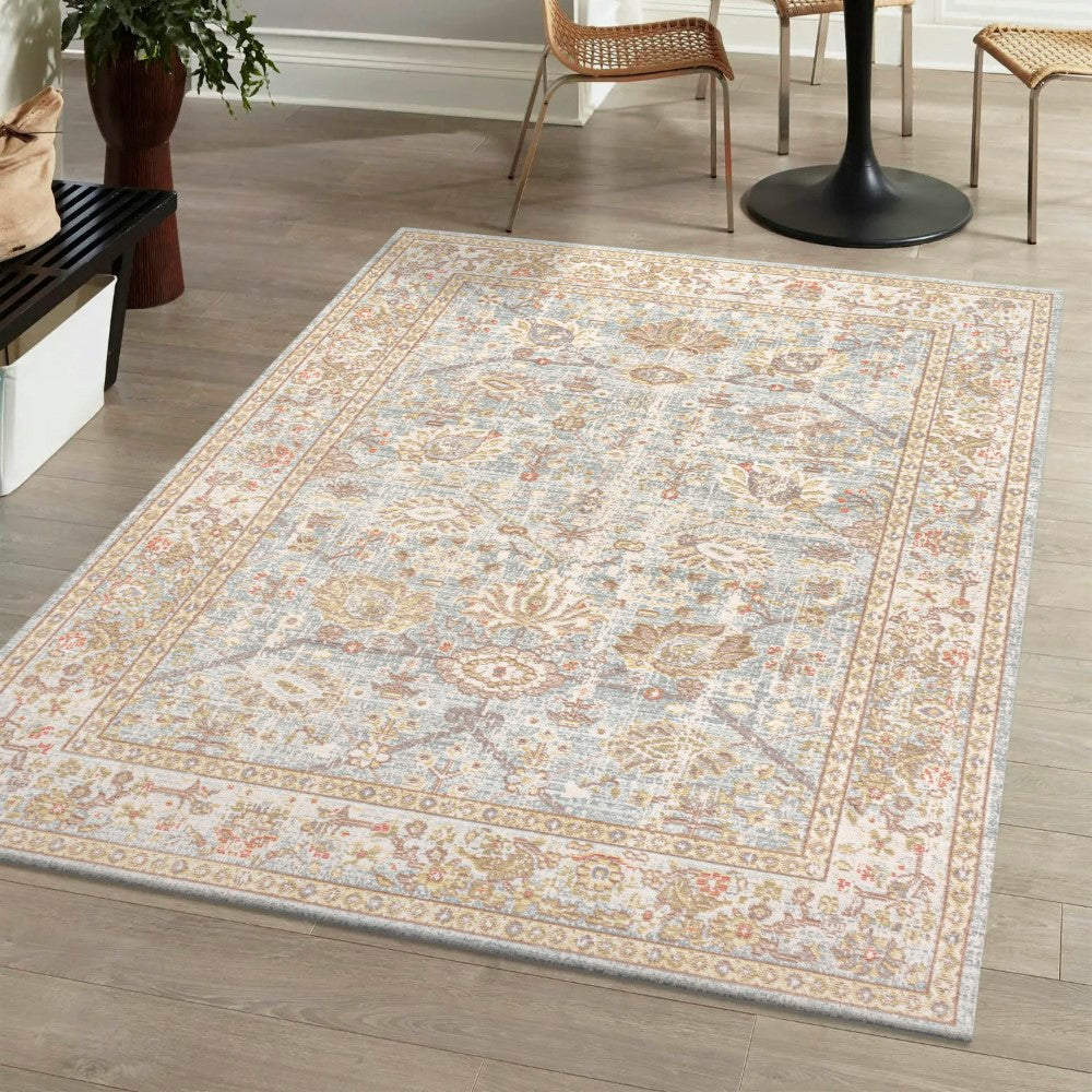 Inspired by antique Peshawar rug designs, this classic pattern has been updated with a modern, minimalist color palette. A center field of stylized flowers is framed by a floral border. The neutral color palette is the perfect complement to a modern living room, bedroom or dining room.