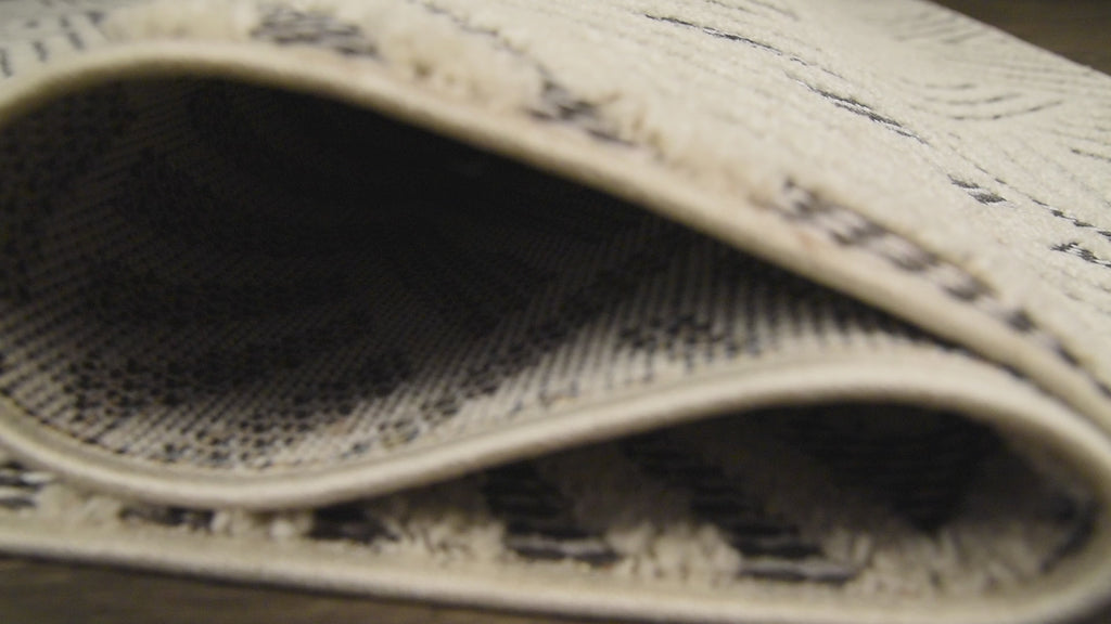 - The deep gray and ivory color scheme is a modern take on neutral, graphic abstract rugs