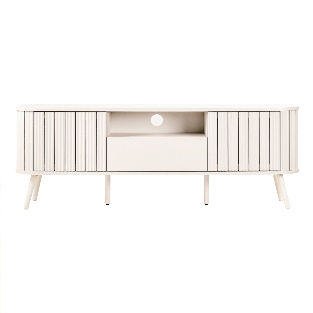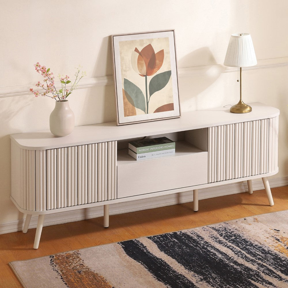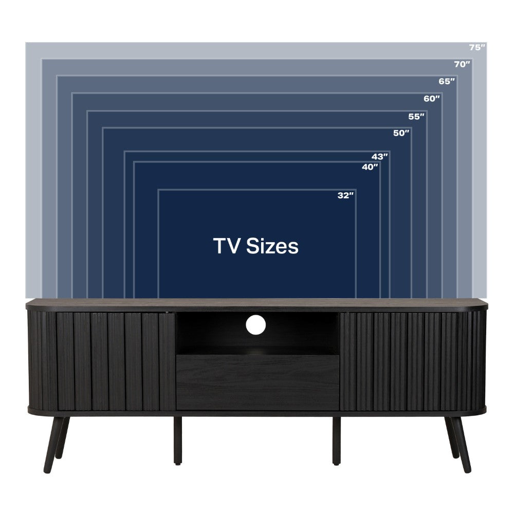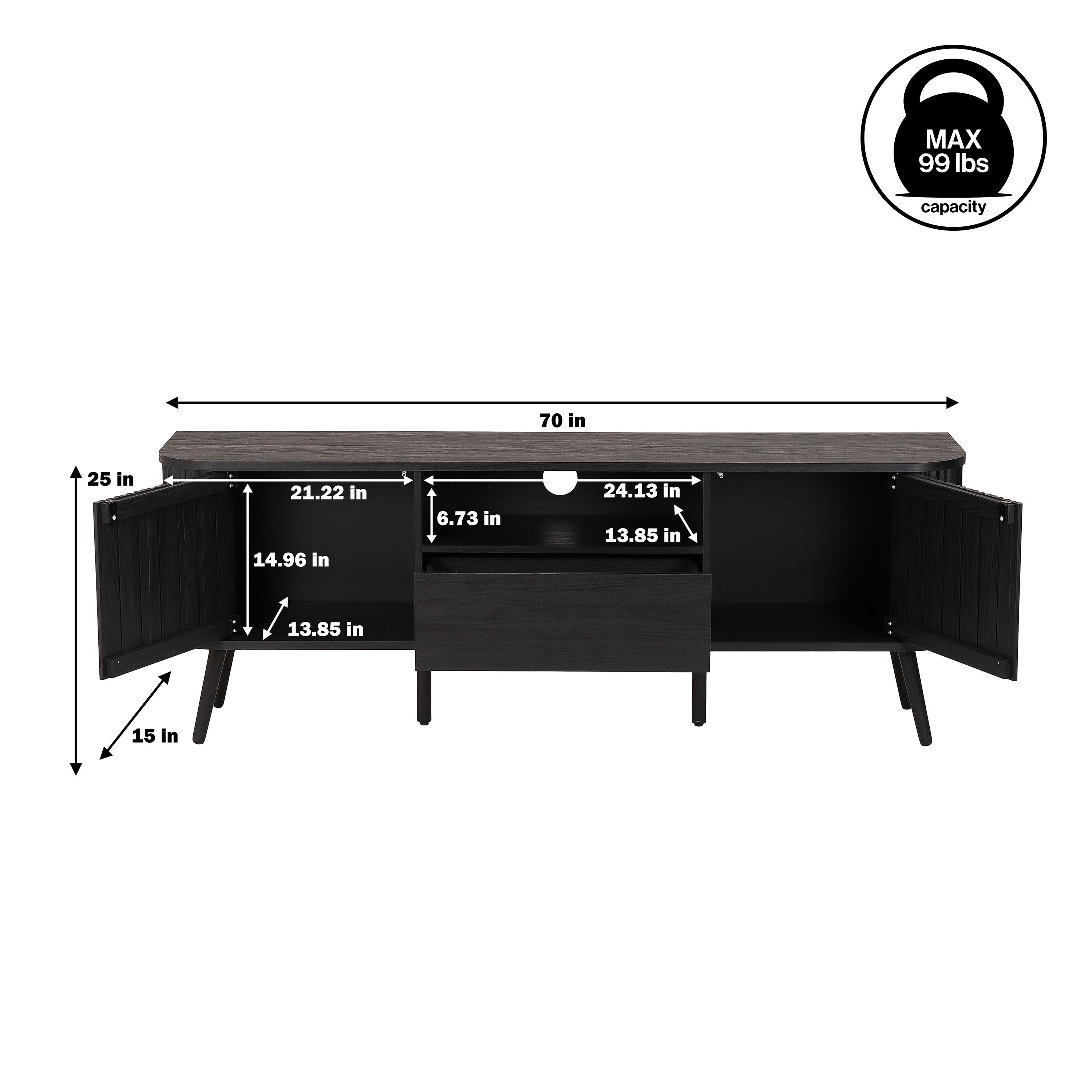 Shale 70 in. Farmhouse Curved TV Stand with Drawer and Storage Doors Fits TVs up to 75 in. with Cable Management