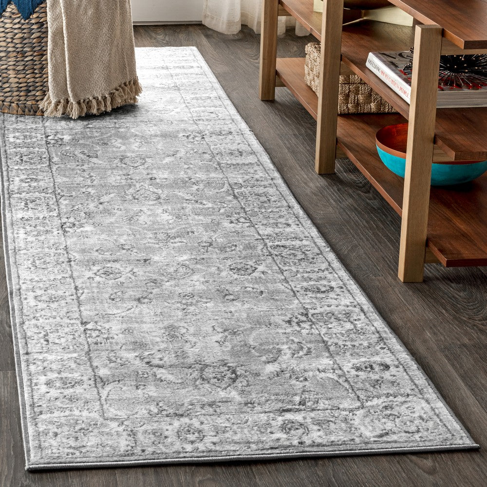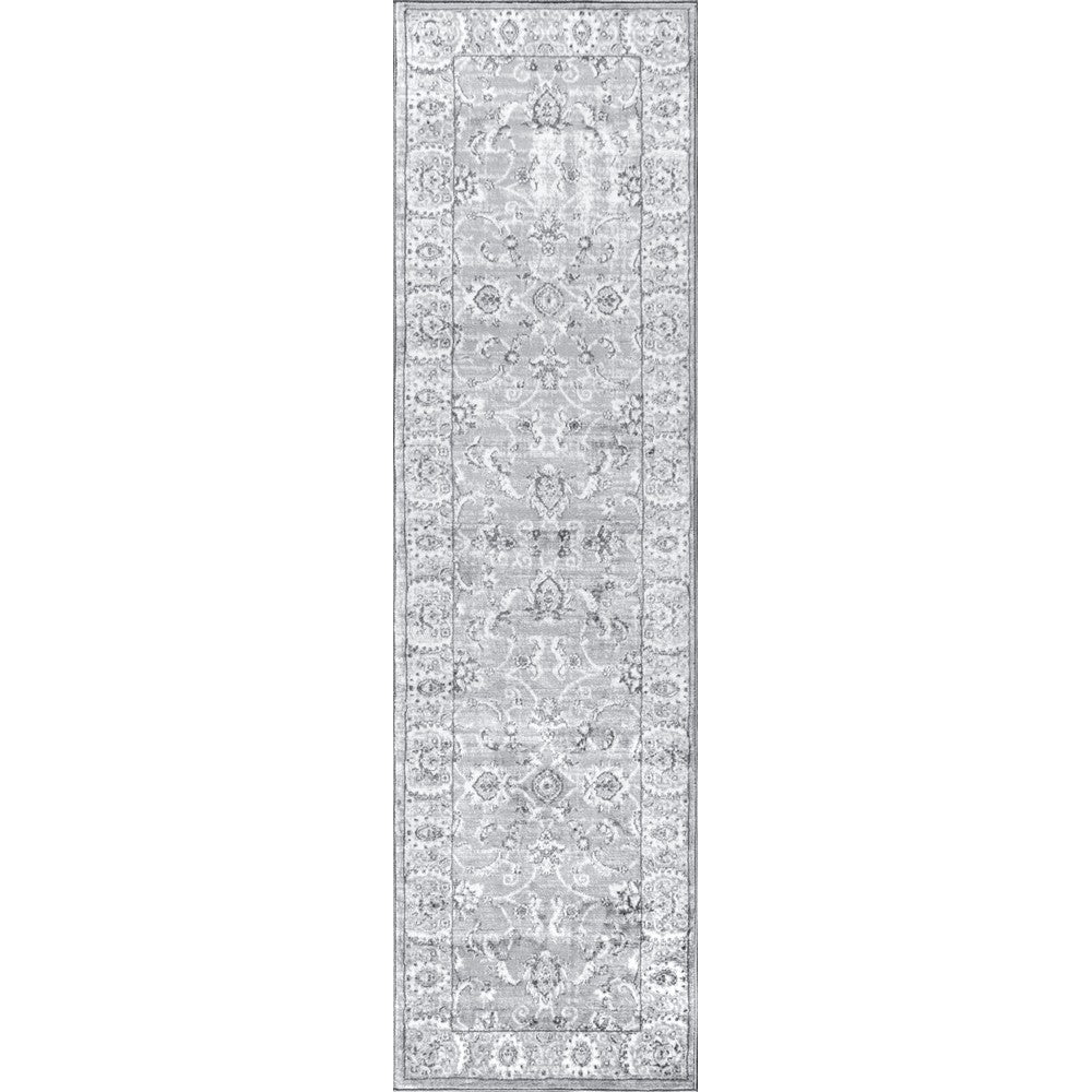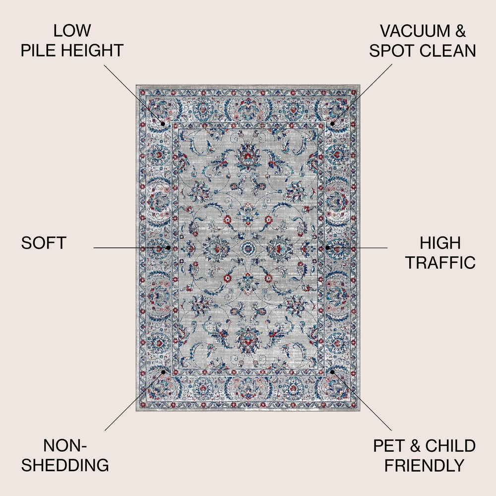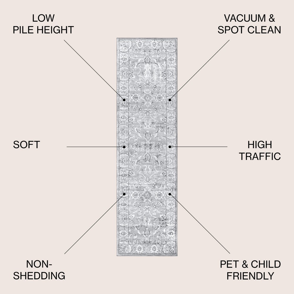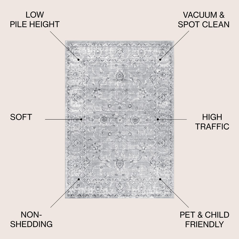 Add an elegant touch to any room with this traditional rug. In soft, tonal colors, this classic rug is crafted from a durable synthetic fiber and features a luxe, plush pile, creating a sophisticated look. With a broad border and subtle scattered floral interior design, it looks like an heirloom, but with the durability expected of modern rugs.