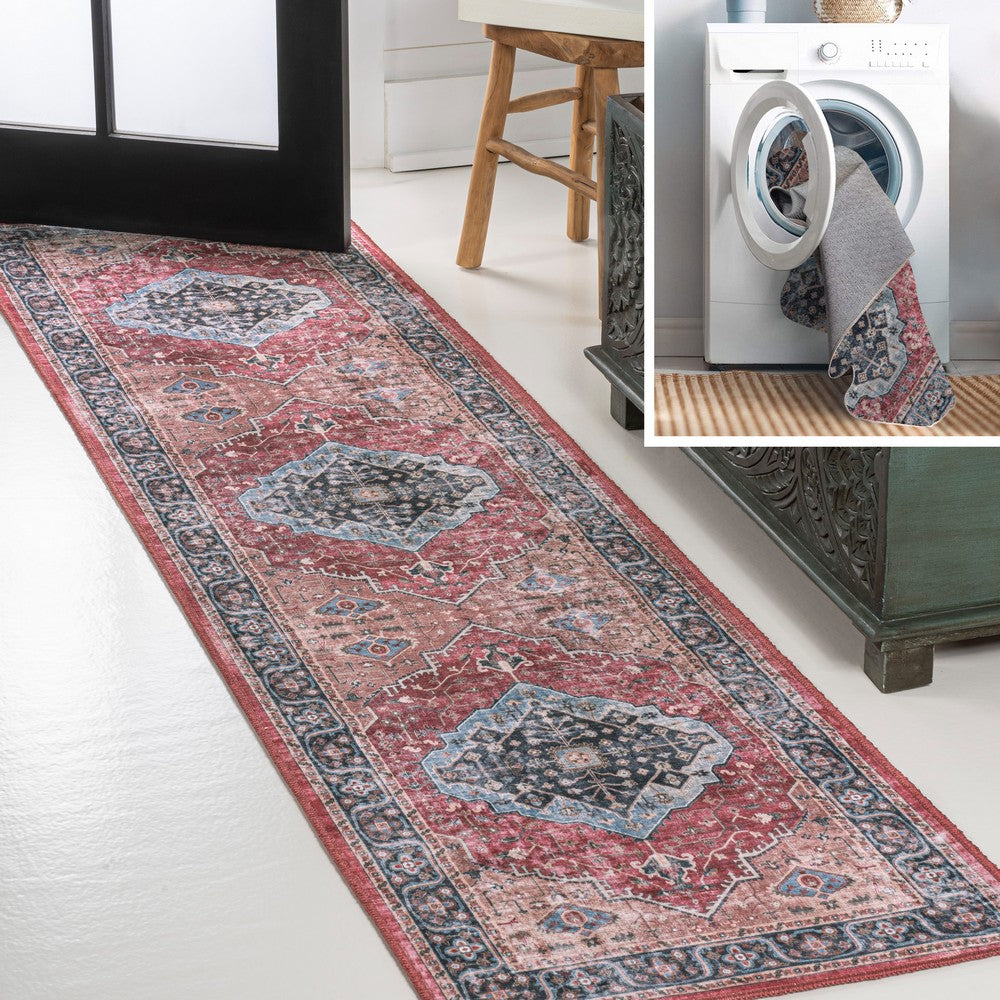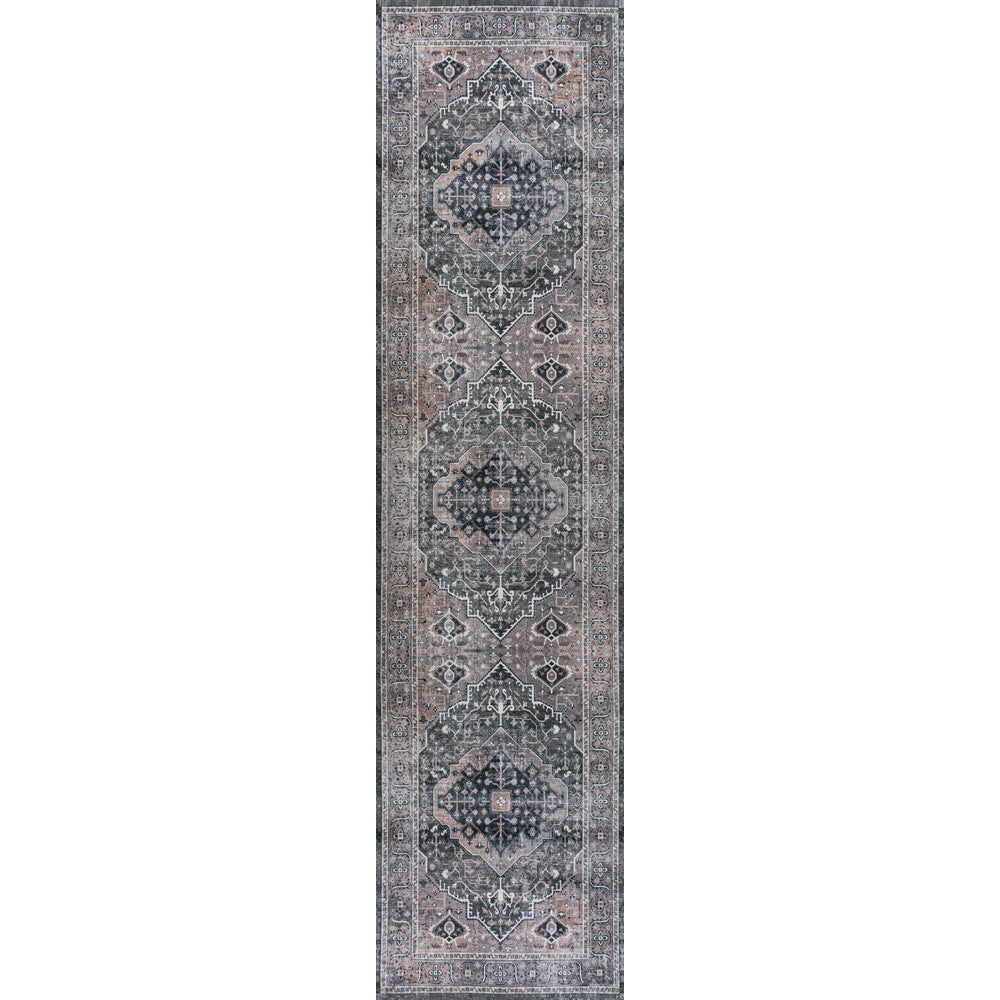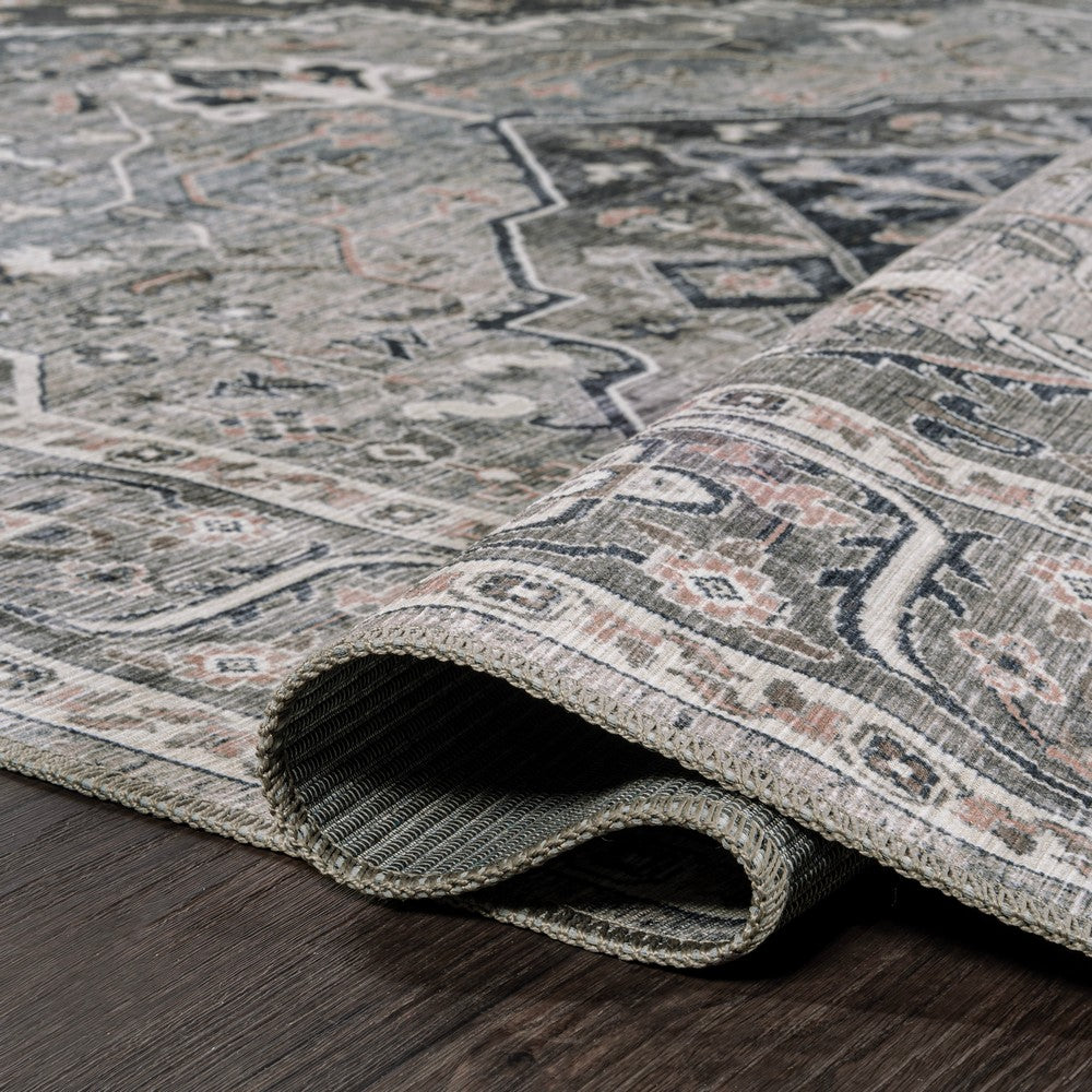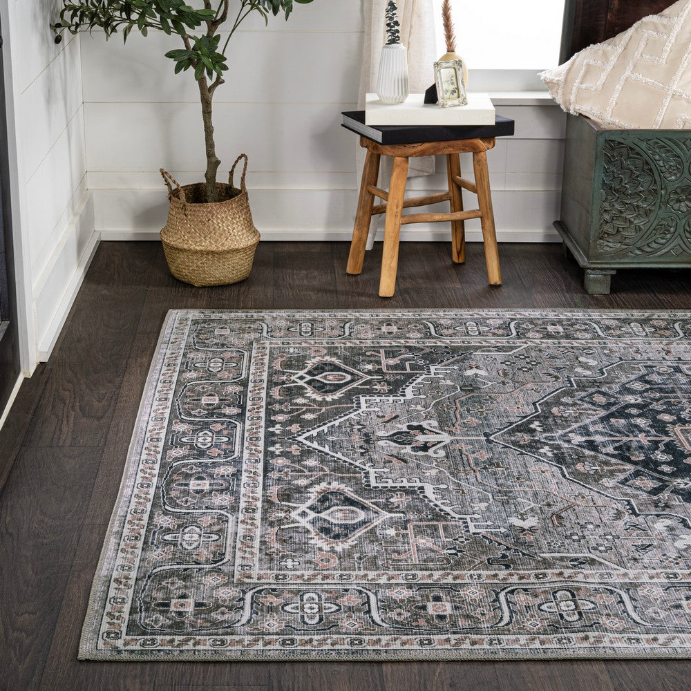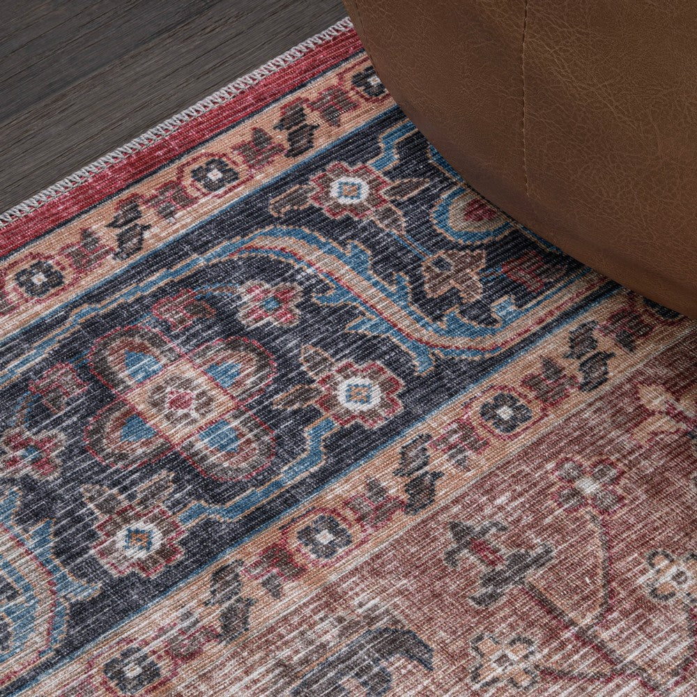 The ornate ogee medallion in the center of this rug recalls ancient Persian rug designs. Updated colors add a modern Bohemian-inspired twist to a classic design. With its pet-friendly pattern, this easy-care rug would be perfect for a dining room, living room, entry, bedroom or porch.