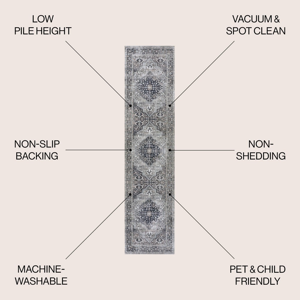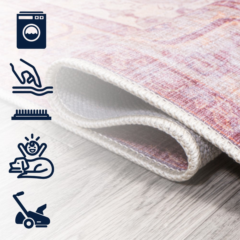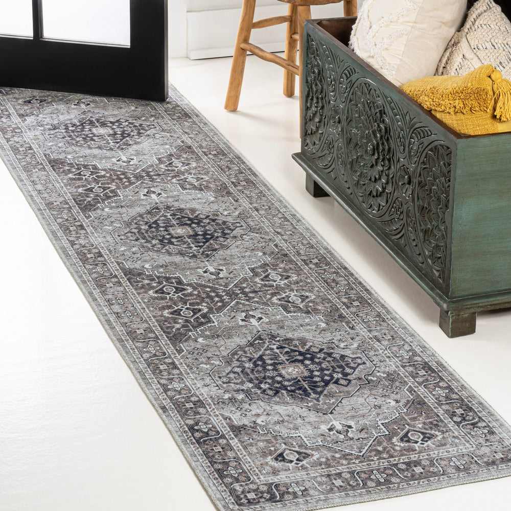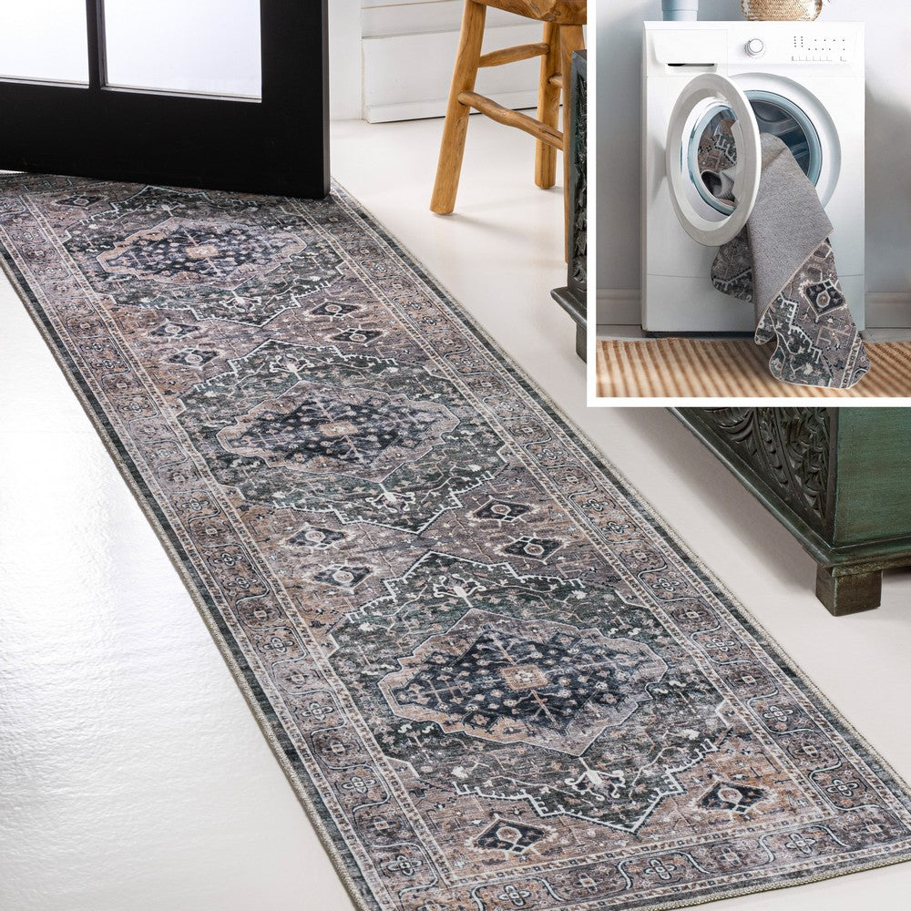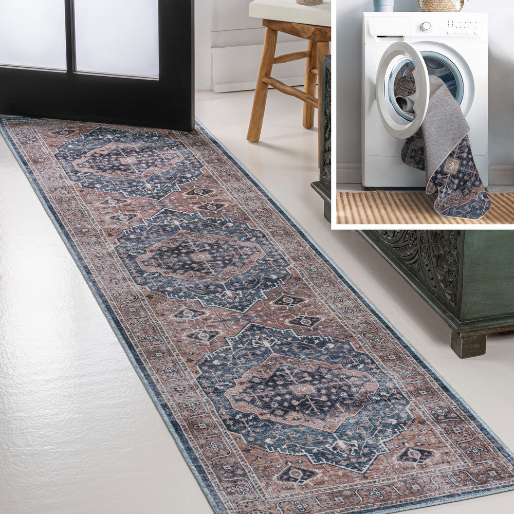 The ornate ogee medallion in the center of this rug recalls ancient Persian rug designs. Updated colors add a modern Bohemian-inspired twist to a classic design. With its pet-friendly pattern, this easy-care rug would be perfect for a dining room, living room, entry, bedroom or porch.