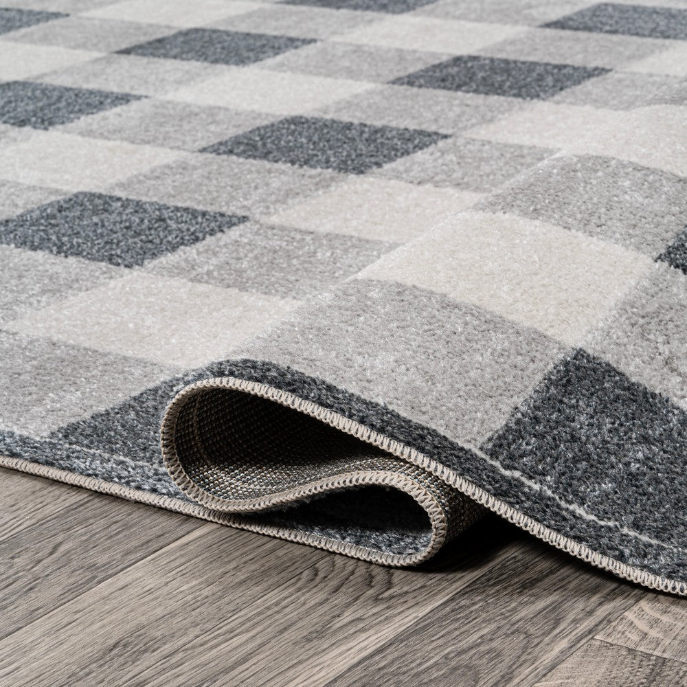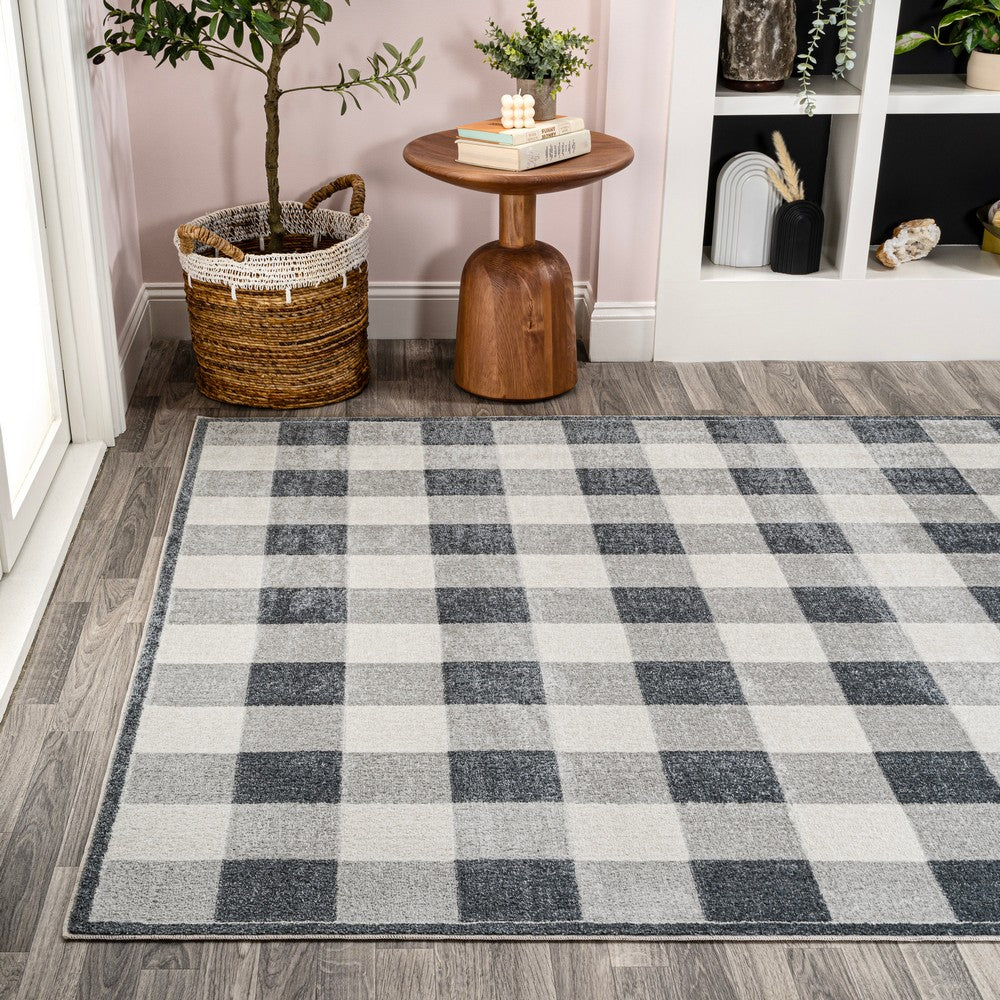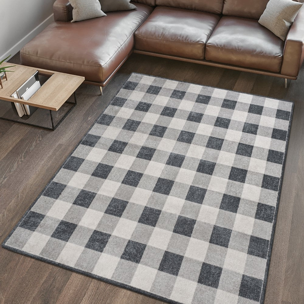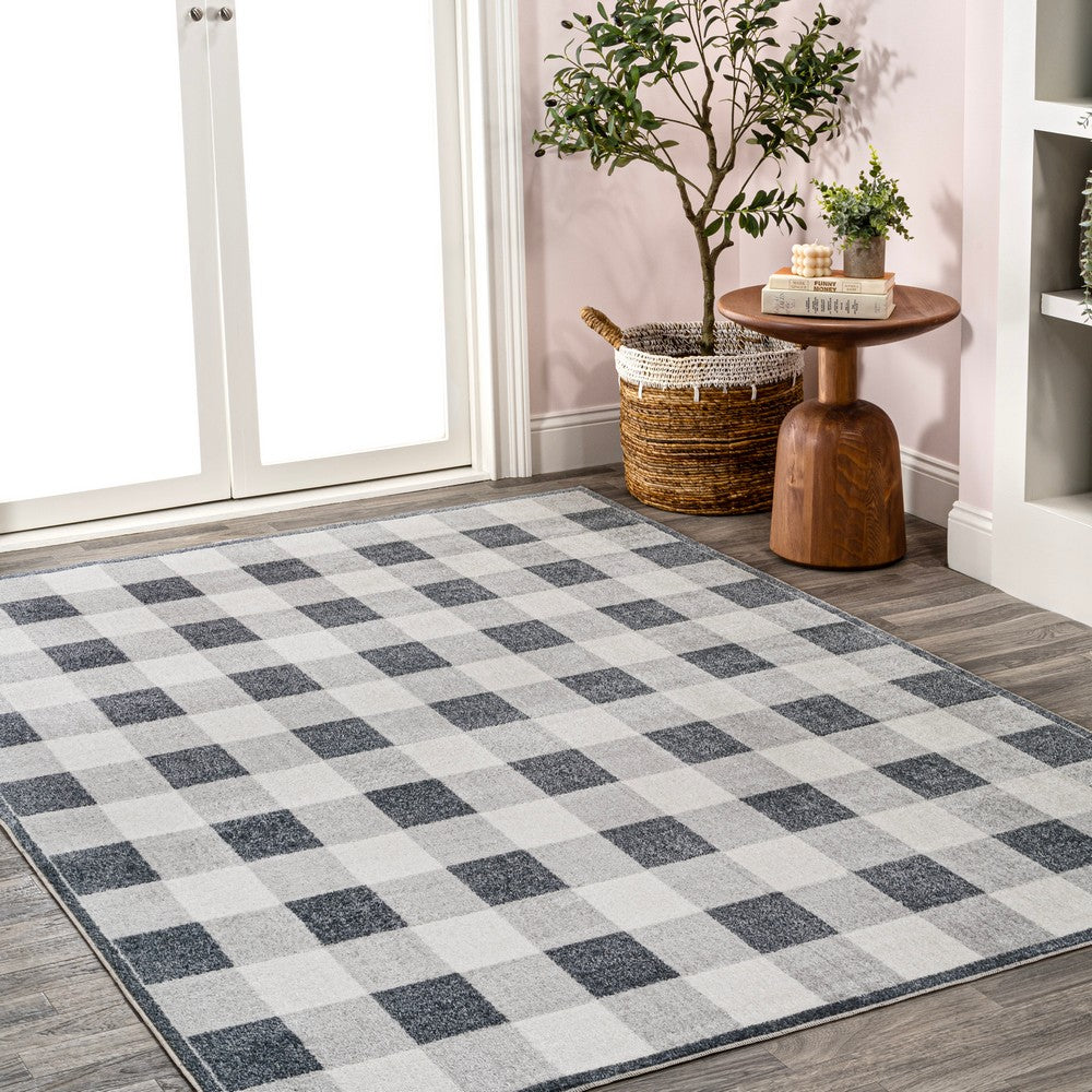 This washable rug features a classic plaid design. With its low pile and farmhouse style, our rug is ideal for any room in your home. Made of pet-friendly synthetic fibers, the rug is durable and easy to clean.