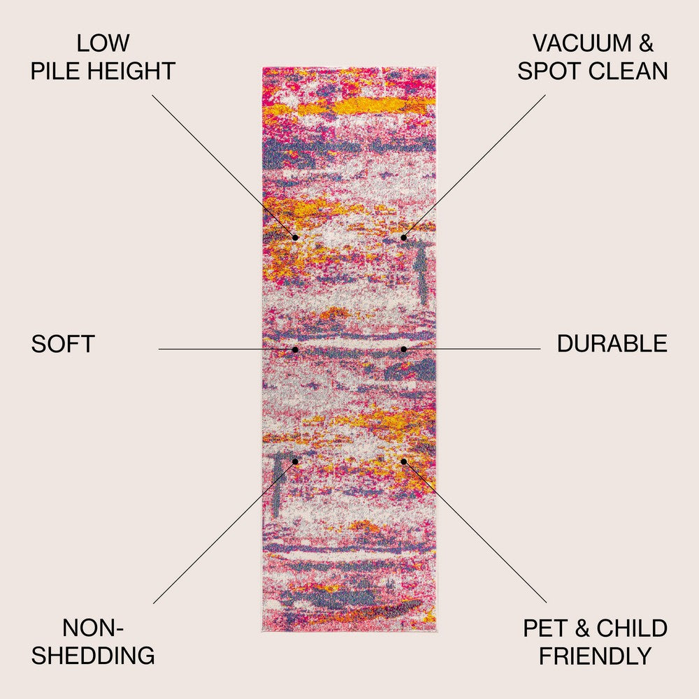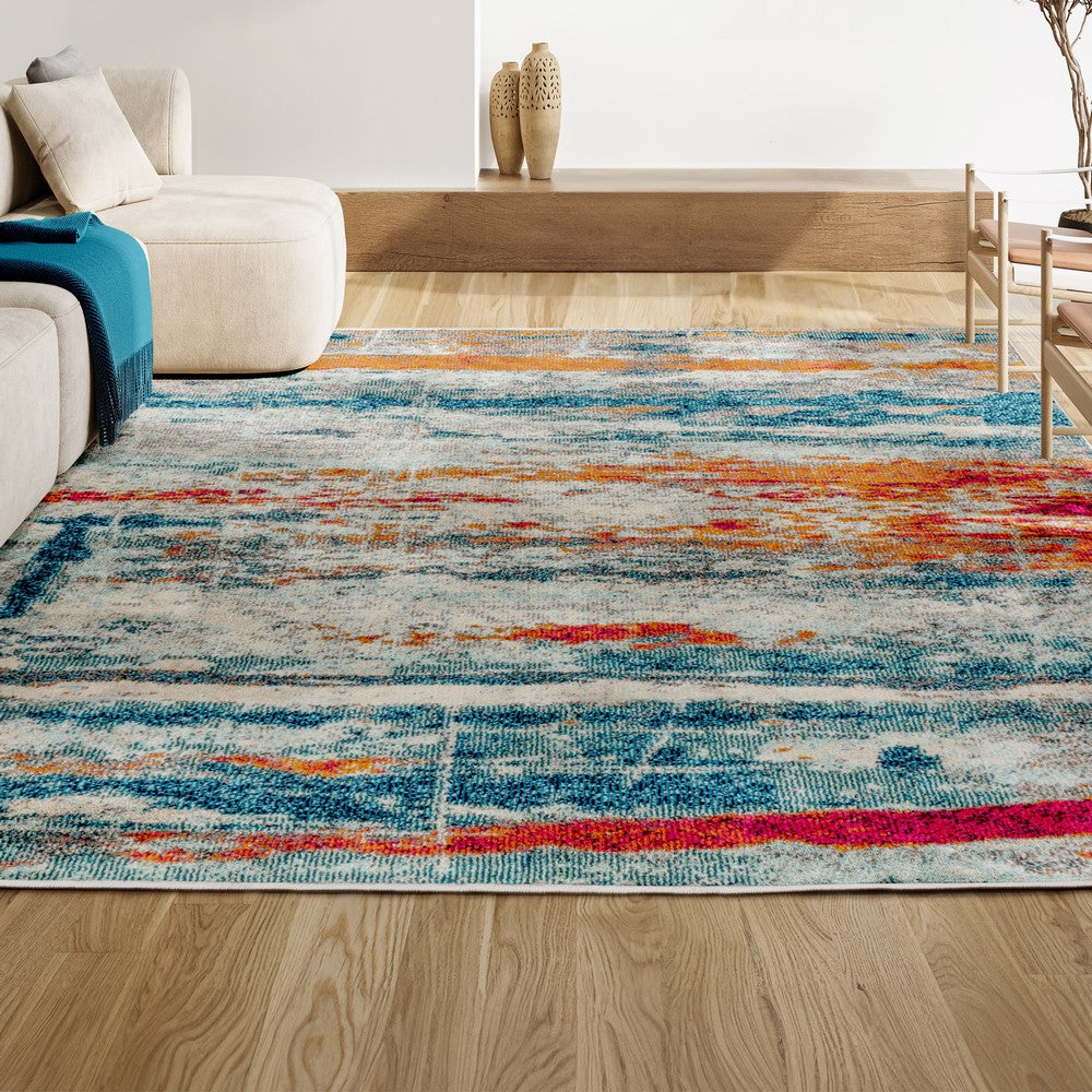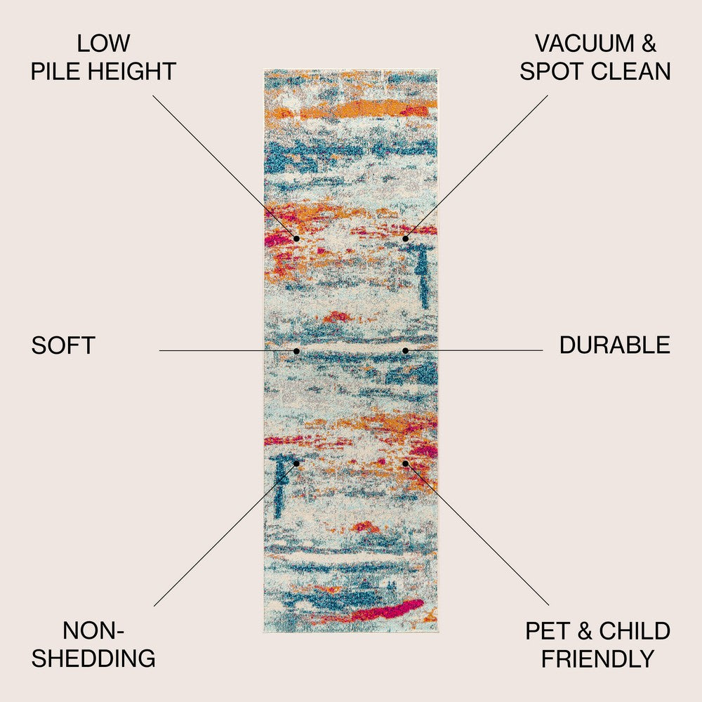 Striations of brushstrokes in stunning colors create an abstract work of art for your floors! Whether in a seaside bungalow, or modern urban home, this gorgeous rug will add a tasteful layer to any room. Power loomed from polypropylene, it is tightly woven for maximum design effect.