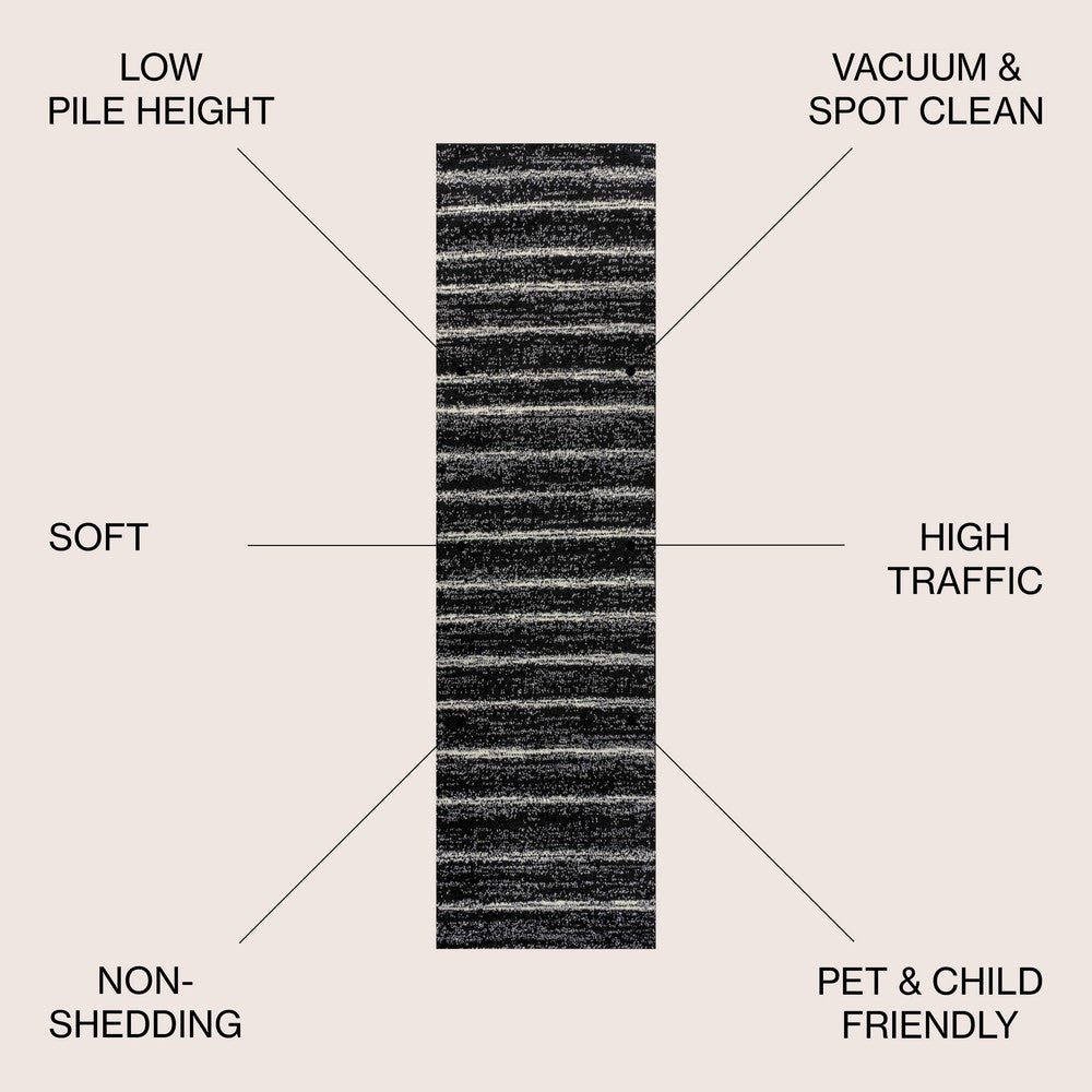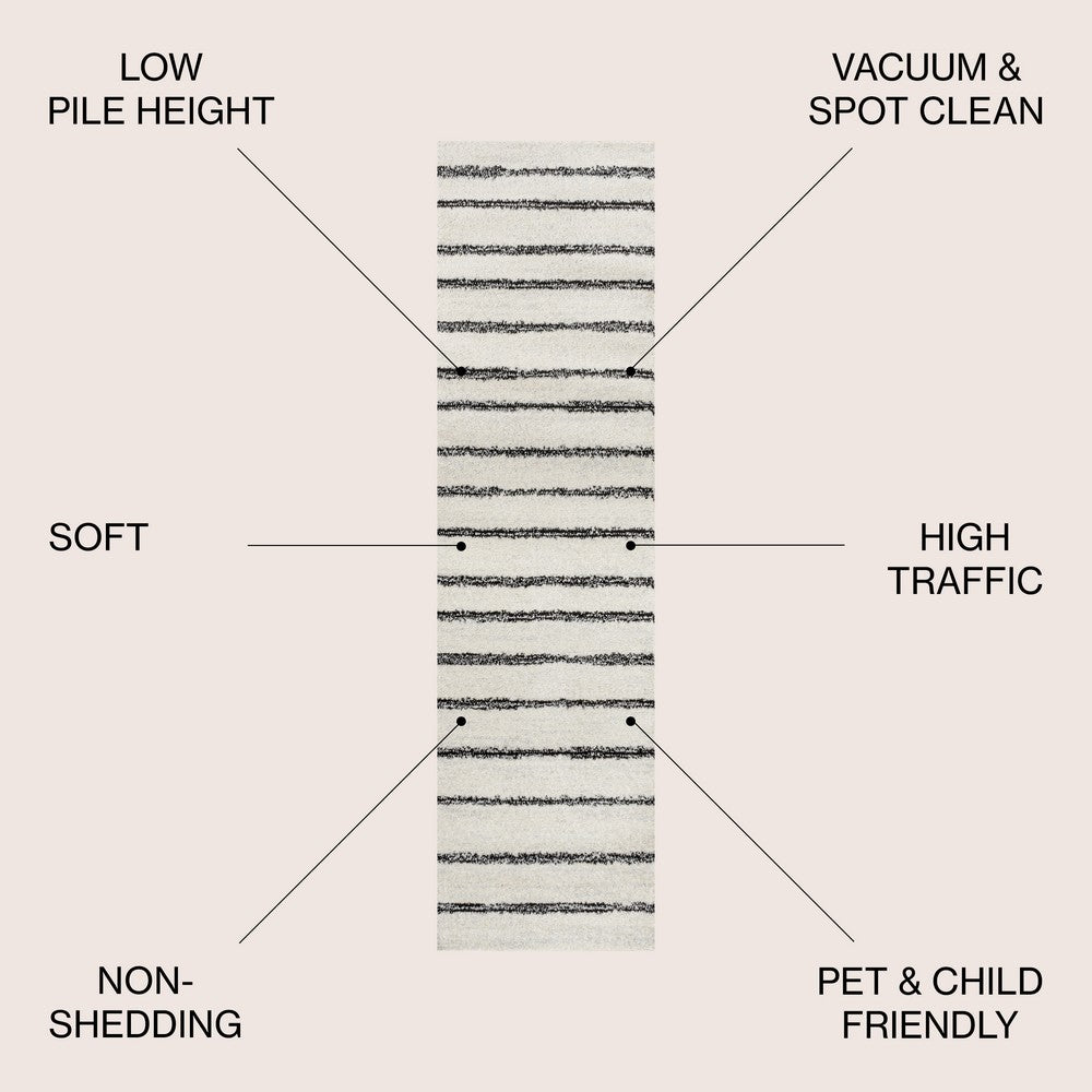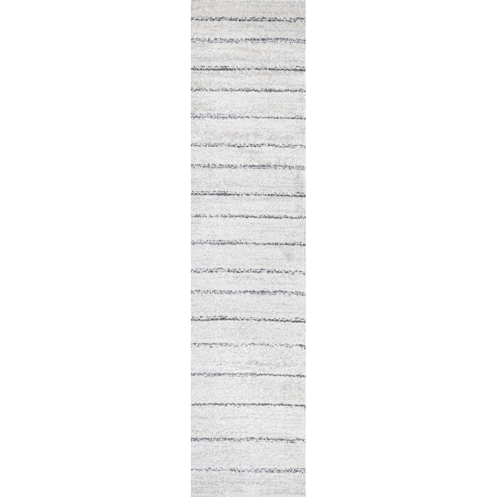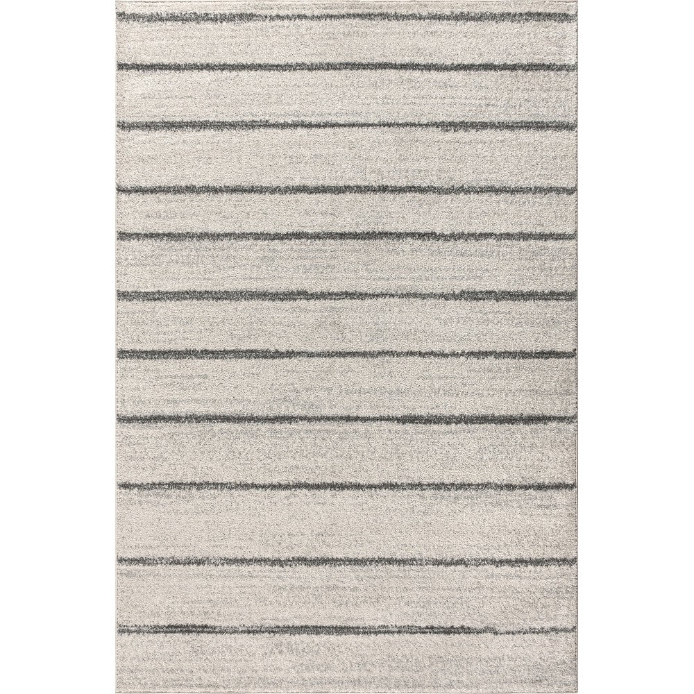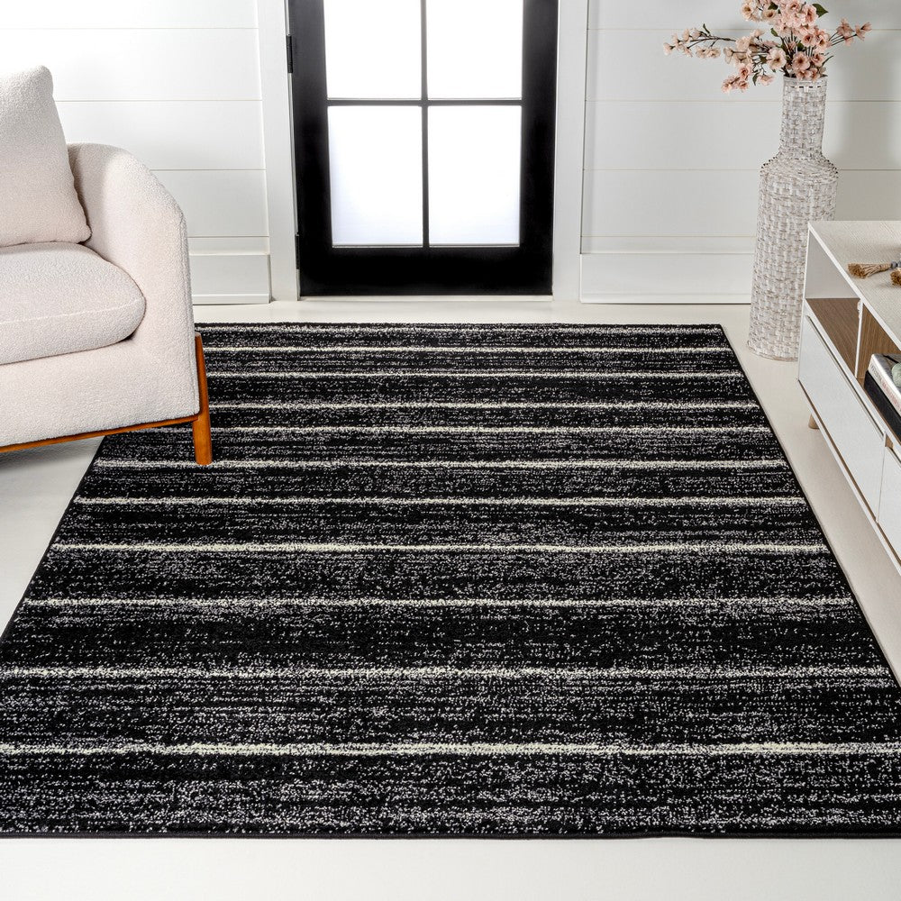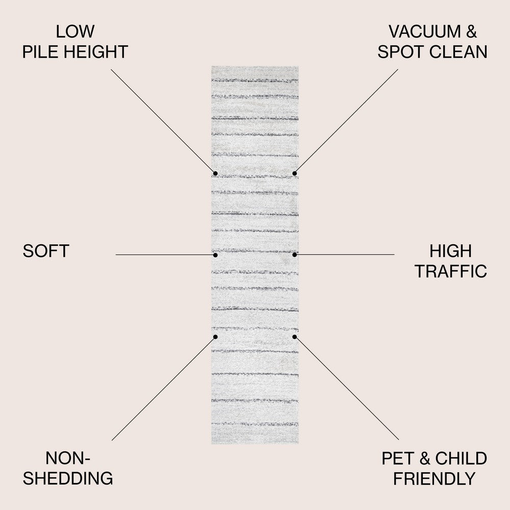 The neutral gray stripes in this rug are the perfect backdrop for modern furniture. Subtle tones of ivory and gray mingled throughout the background add a hand-woven effect. Simple and chic, this versatile rug is at home in a modern loft or classic farmhouse interior.