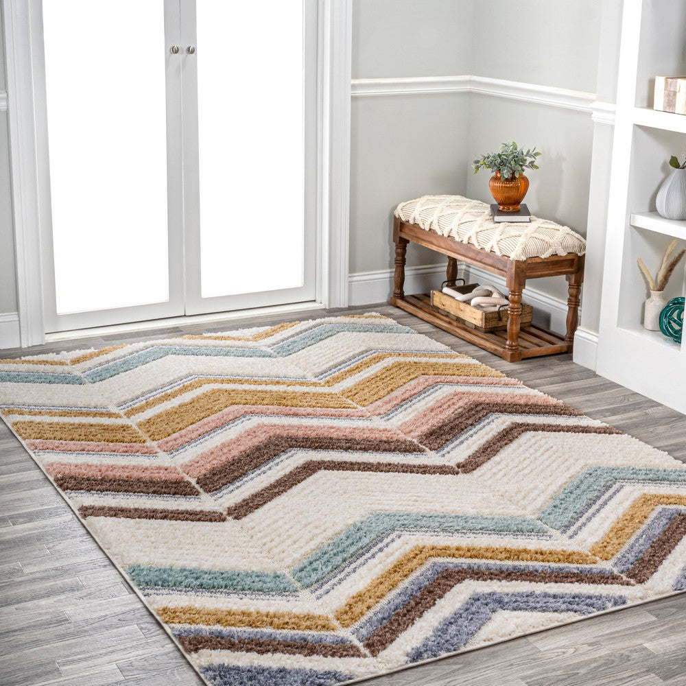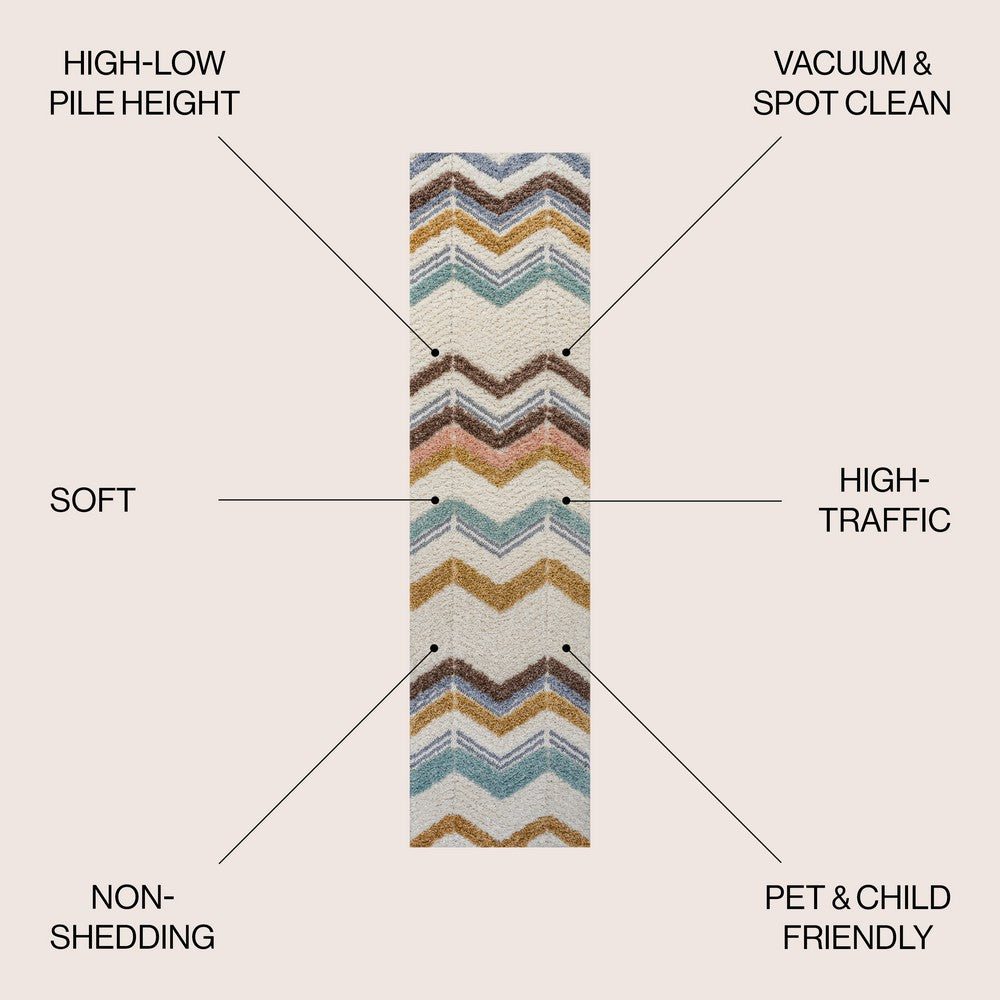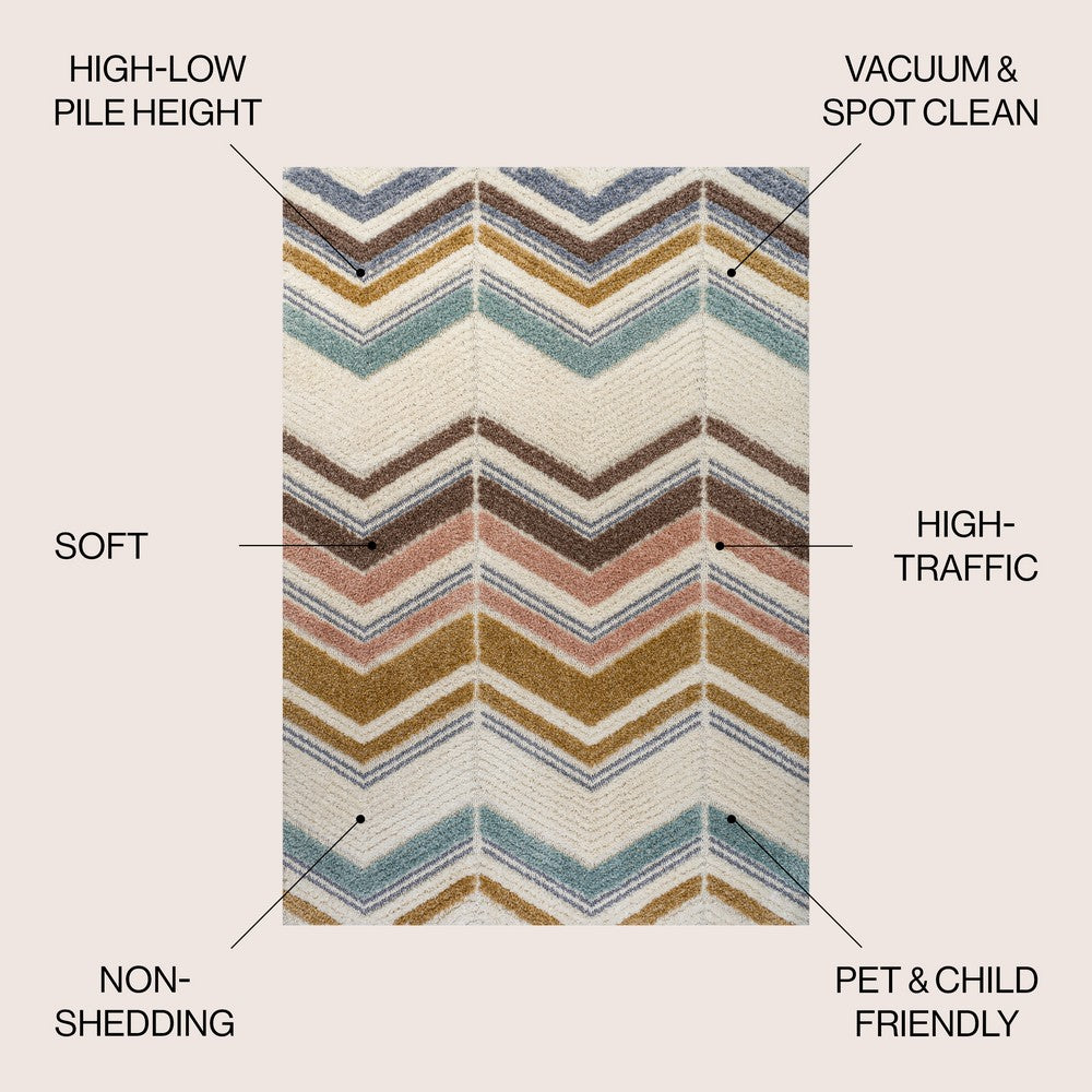 Inspired by mid-century design, this bold chevron rug adds stylish pattern and texture to the living room, bedroom, or home office. The busy geometric pattern is perfect for homes with kids and pets. Add modern style to your mid-century bungalow, Bohemian loft or farmhouse with our unique chevron rug.
