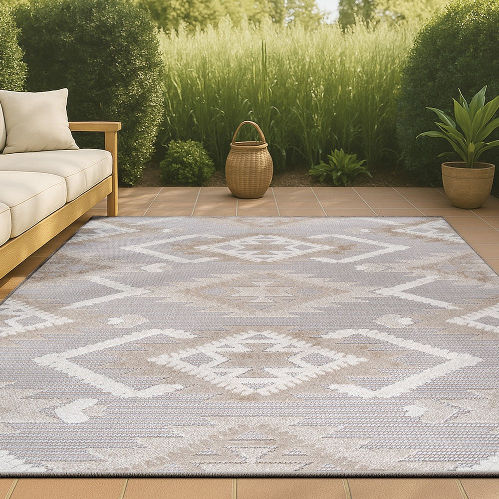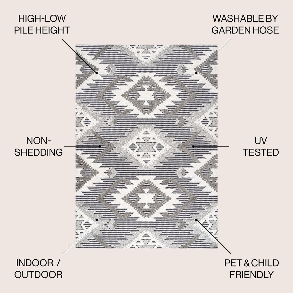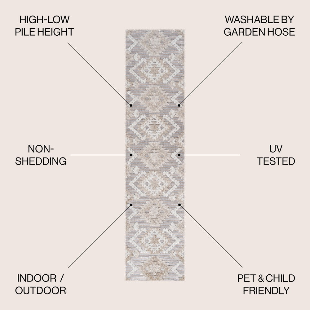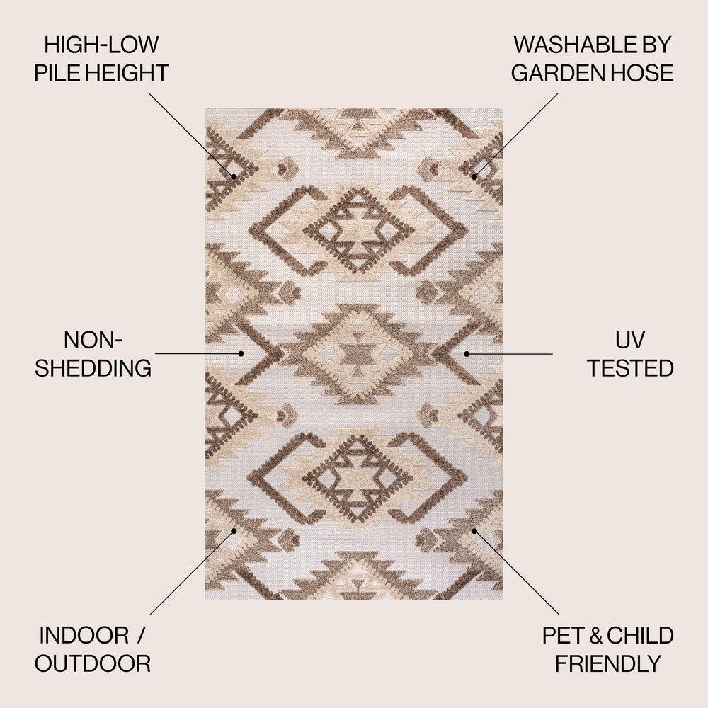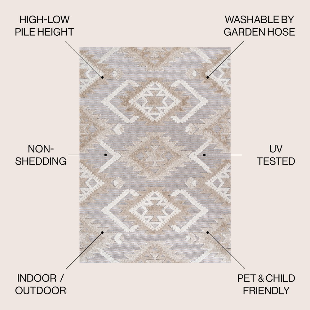 Sabugal Sumak High-Low Pile Neutral Indoor/Outdoor Area Rug