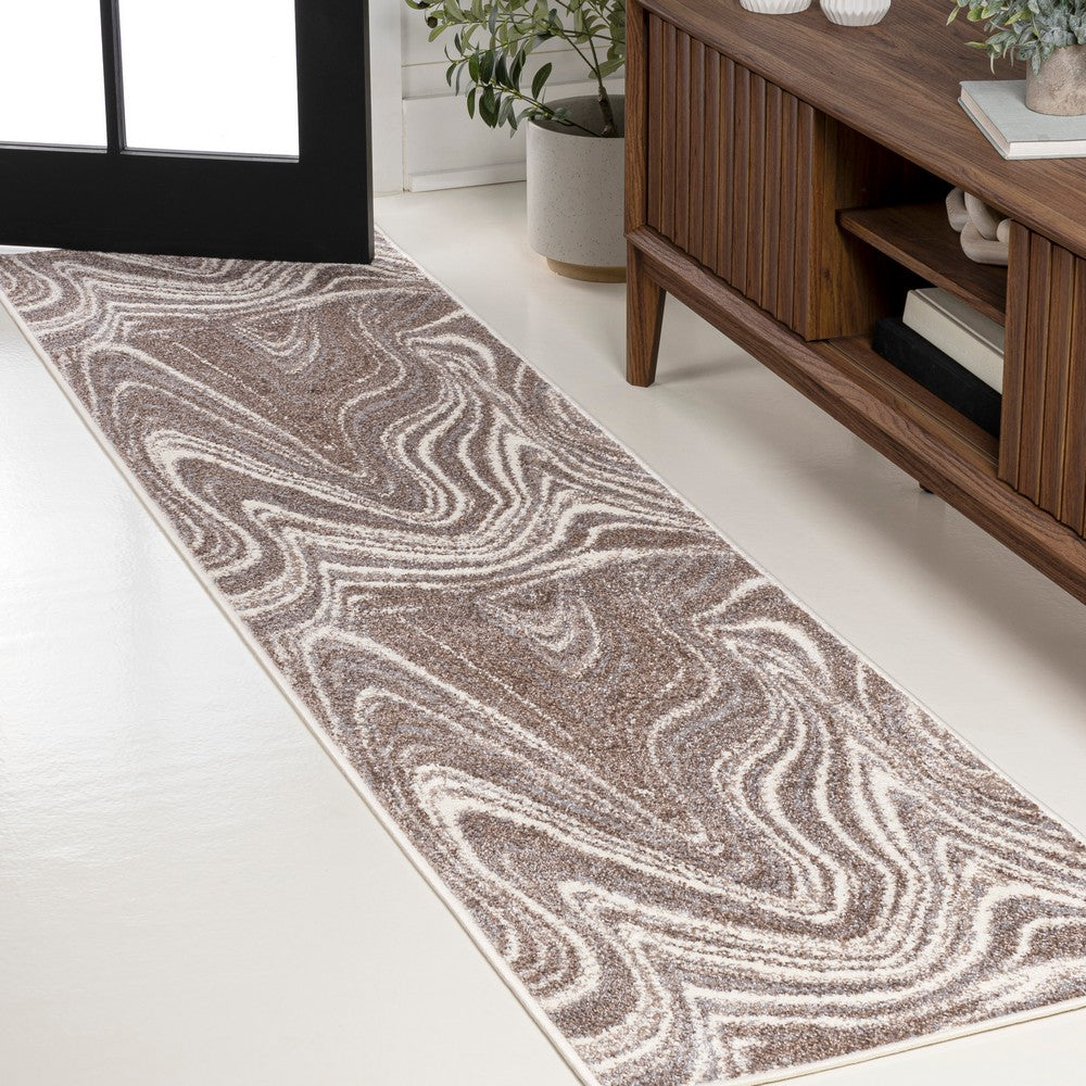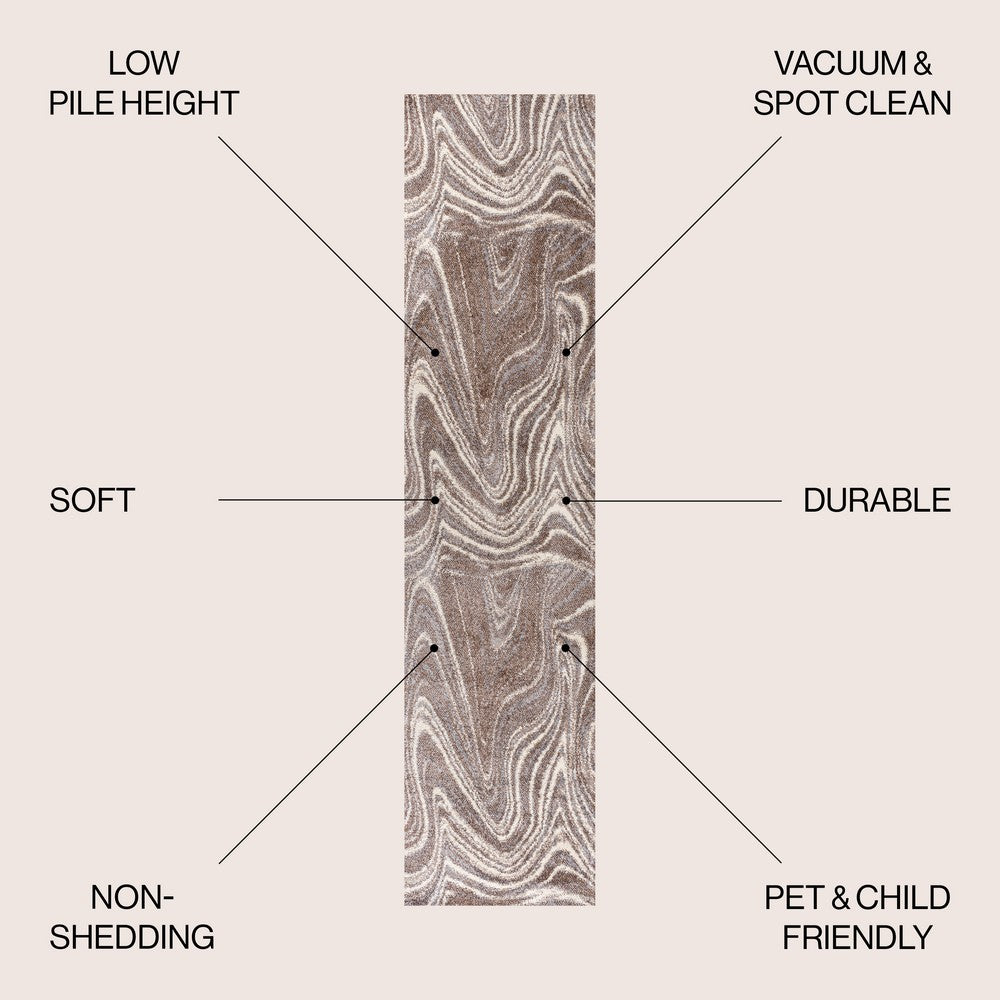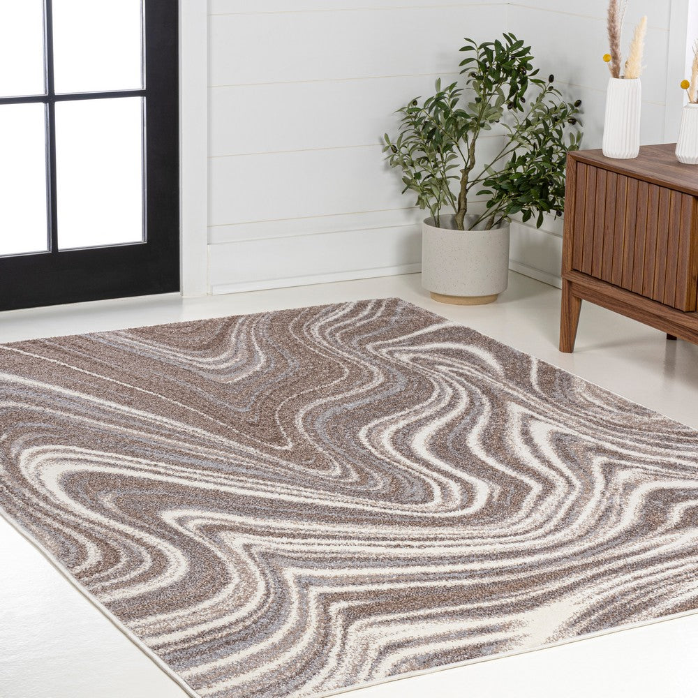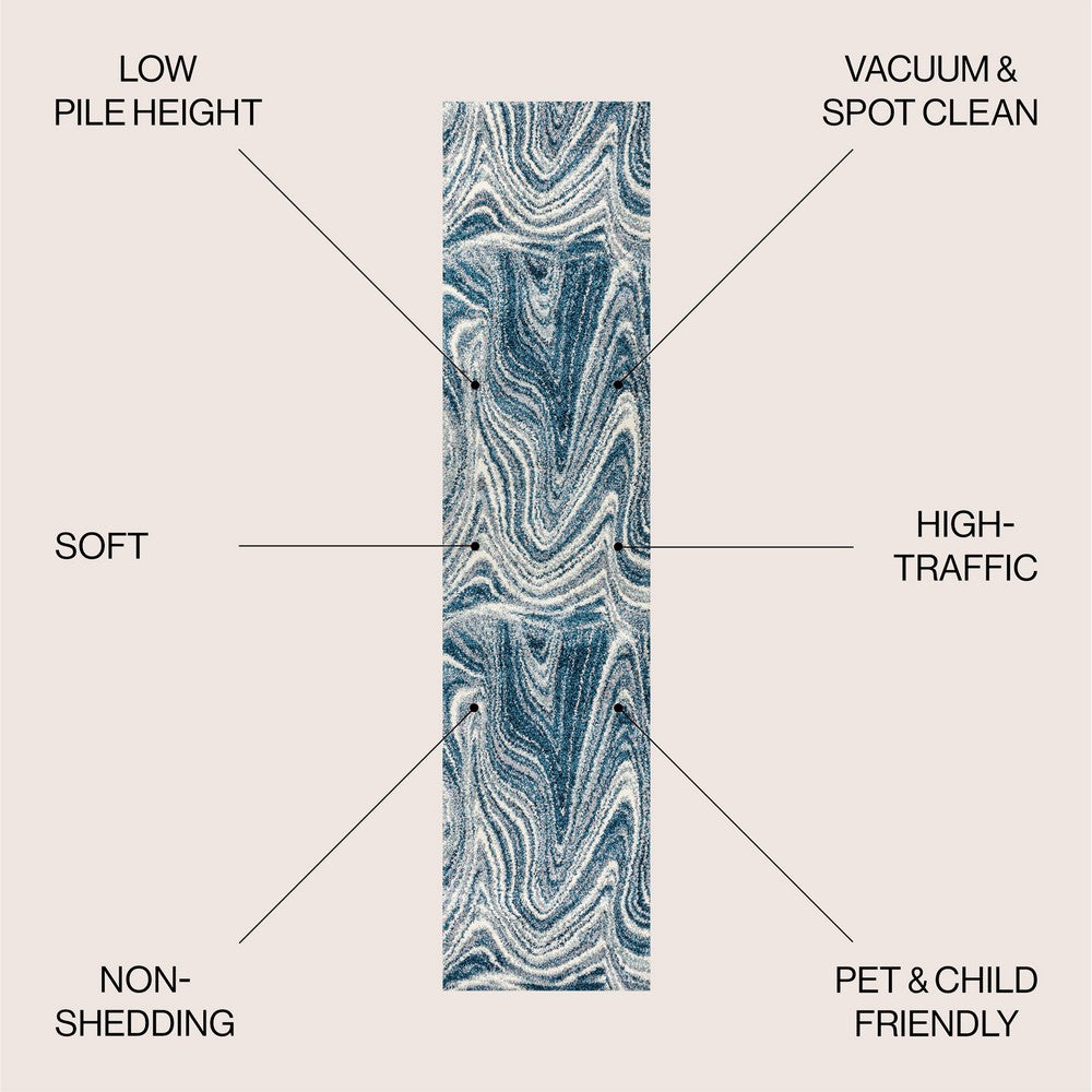 Inspired by natural marble, this modern, abstract rug makes a bold statement. With soft, durable synthetic fibers and a busy pattern, this rug is ideal for homes with kids and pets. It's also the perfect centerpiece for a contemporary or industrial interior.
