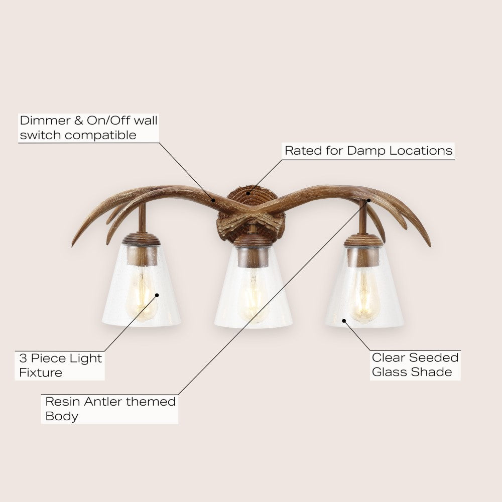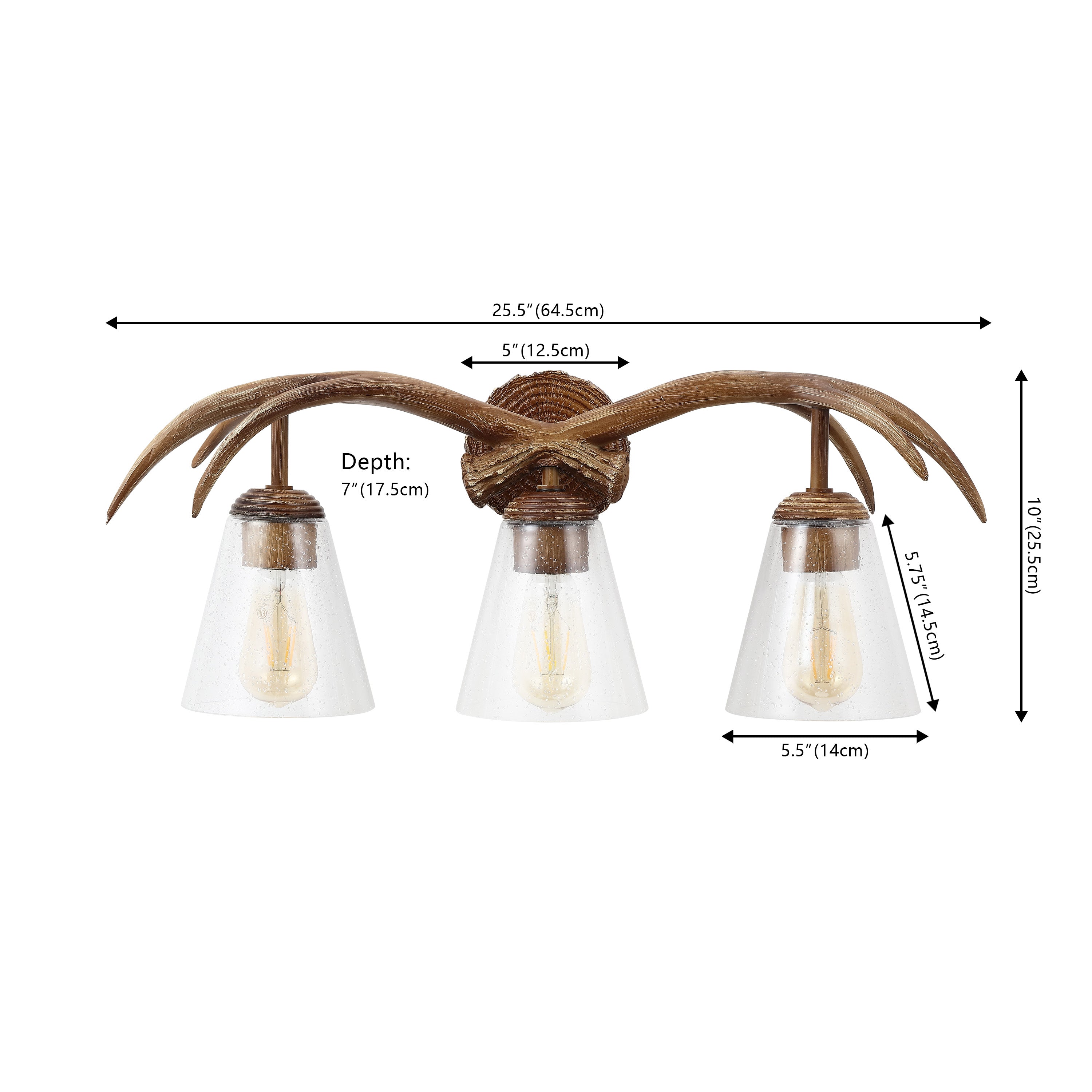 allen 25.5" 3-Light Southwestern Bohemian Resin/Seeded Glass Faux Antler LED Vanity Light